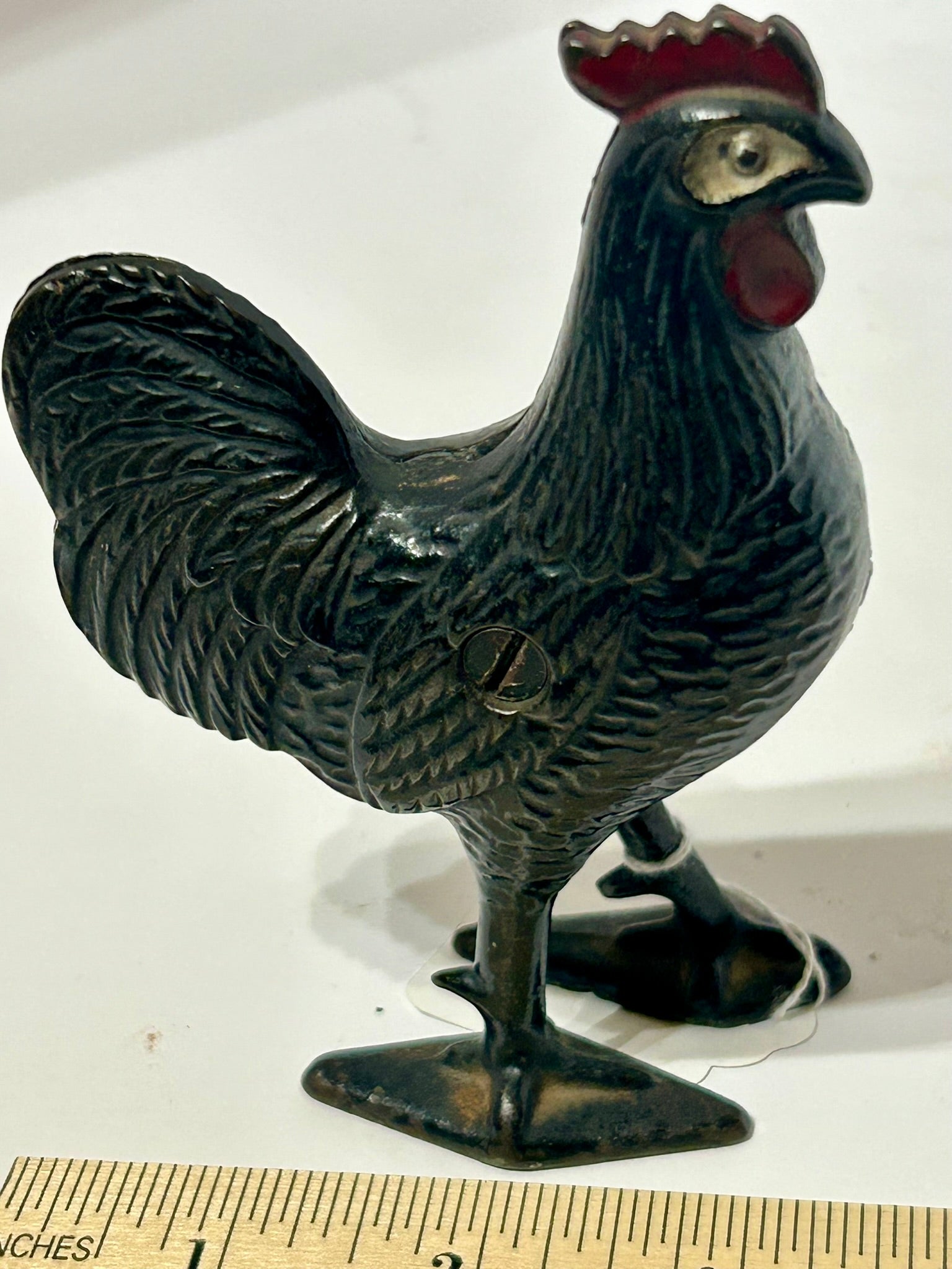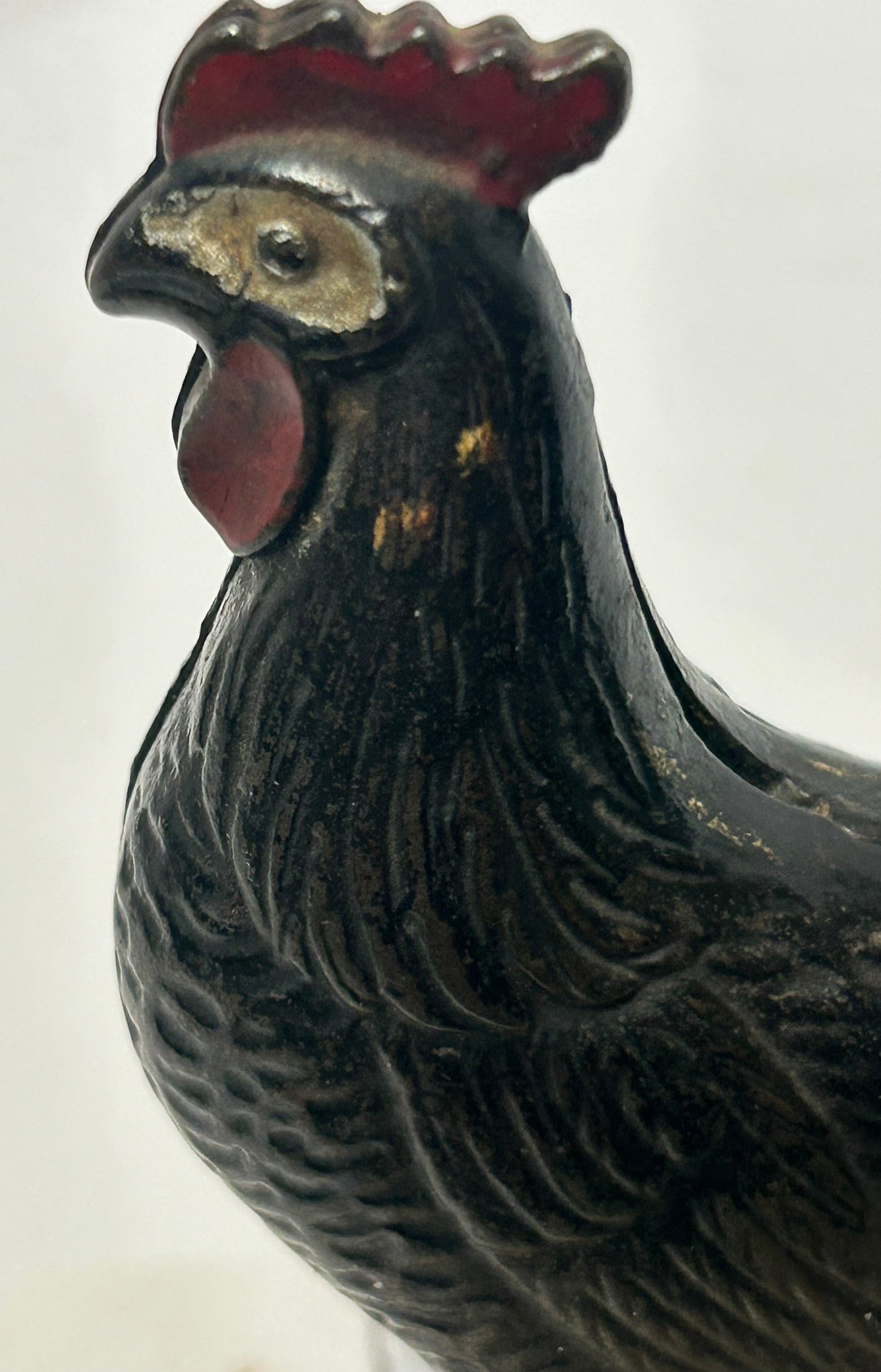 CAST IRON ROOSTER STILL BANK WITH GREAT PAINT 5" TALL. CALL OR TEXT FOR MORE INFORMATION