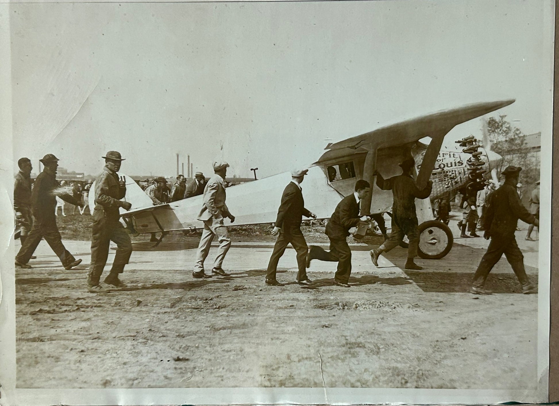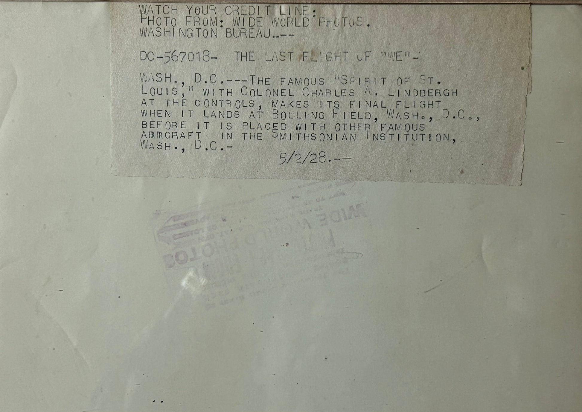 #L2 CHARLES LINDBERGH FINAL FLIGHT OF SPIRIT OF ST. LOUIS BEFORE THE PLANE IS PLACED IN THE SMITHSONIAN MUSEUM 1928 NEWS PHOTO 8" X 10". CALL OR TEXT FOR MORE INFORMATION