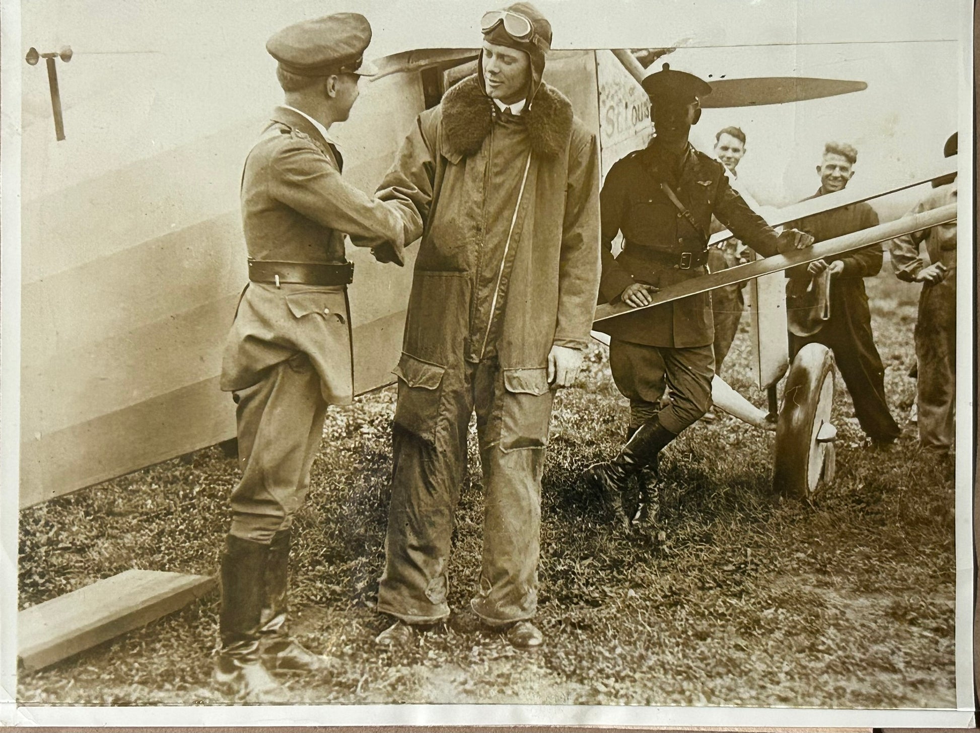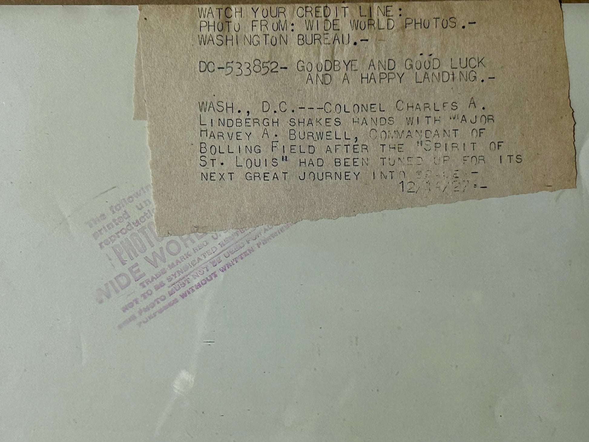 # L4 CHARLES LINDBERG AT BOLLING FIELD SHAKING HANDS NEWS PHOTO 8" X 10". CALL OR TEXT FOR MORE INFORMATION