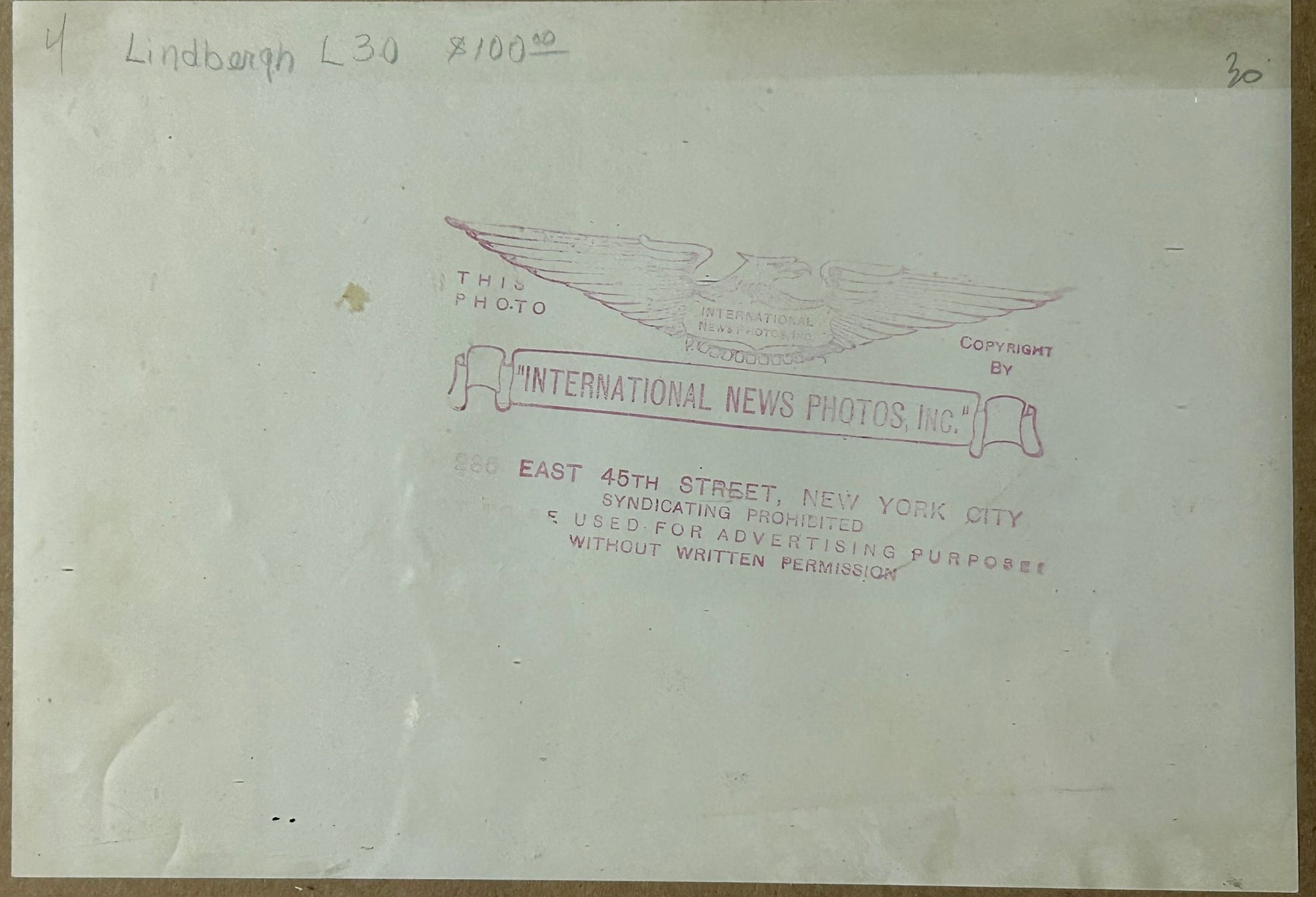 # L 17 CHARLES LINDBERGH IN COCKPIT OF AIRPLANE IN NEWS SERVICE PHOTOGRAPH 6 1/2" X 9 1/2". CALL OR TEXT FOR MORE INFORMATION