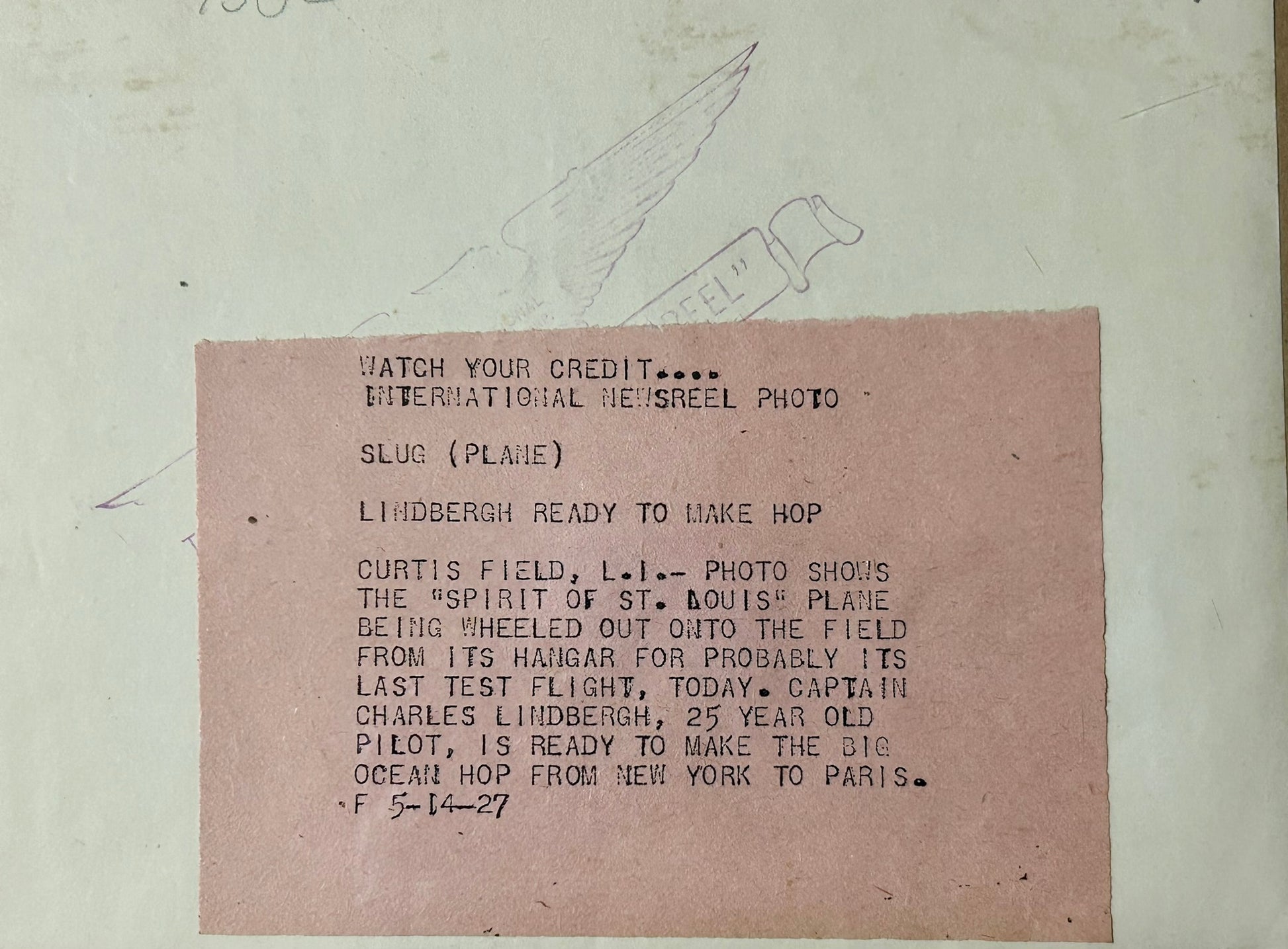 # L 9 CHARLES LINDBERGH SPIRIT OF ST. LOUIS IN 1927 BEING MADE READY FOR FIRST NEW YORK TO PARIS FLIGHT NEWS PHOTO 6" X 8". CALL OR TEXT FOR MORE INFORMATION