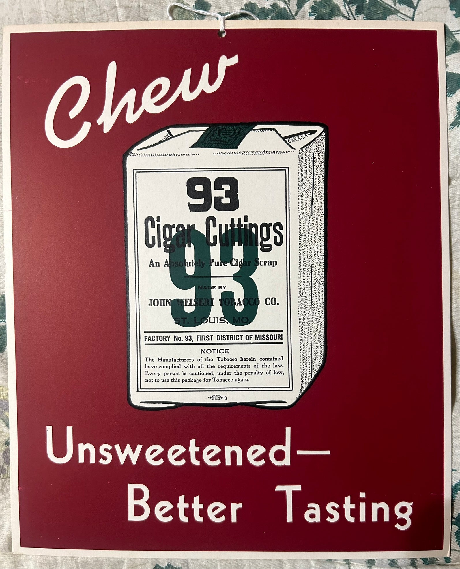 CHEW TOBACCO 93 CIGAR CUTTINGS CARDBOARD ADVERTISING SIGN