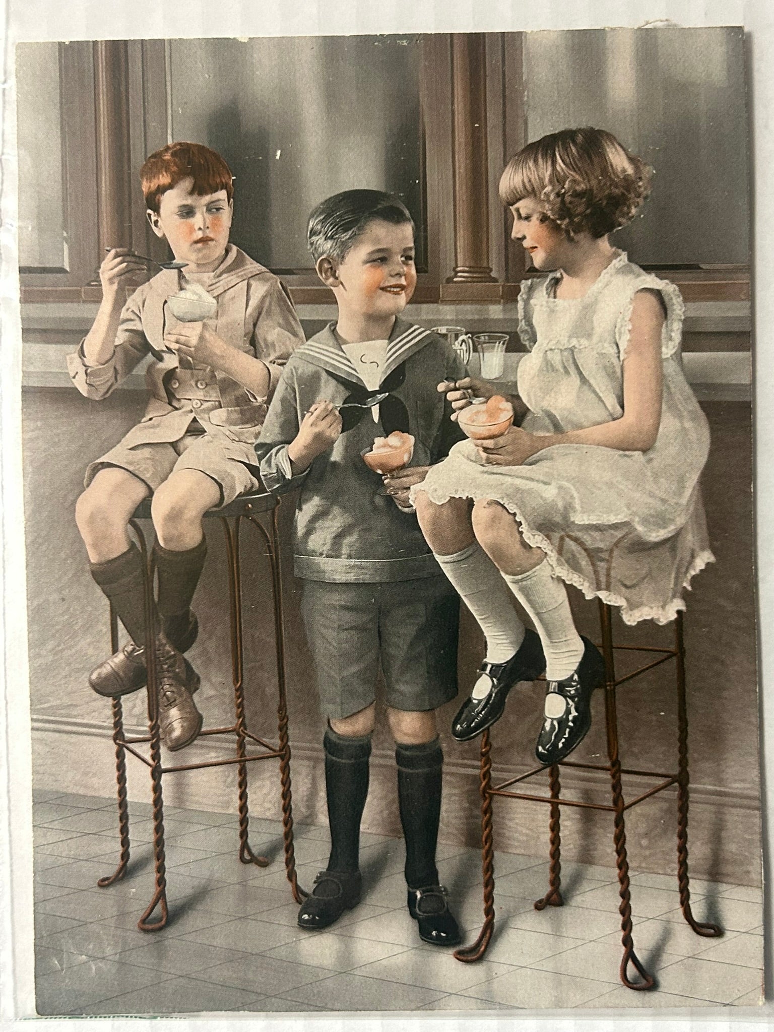 CHILDREN AT SODA FOUNTAIN ANTIQUE PRINT FOR ADVERTISING PURPOSES