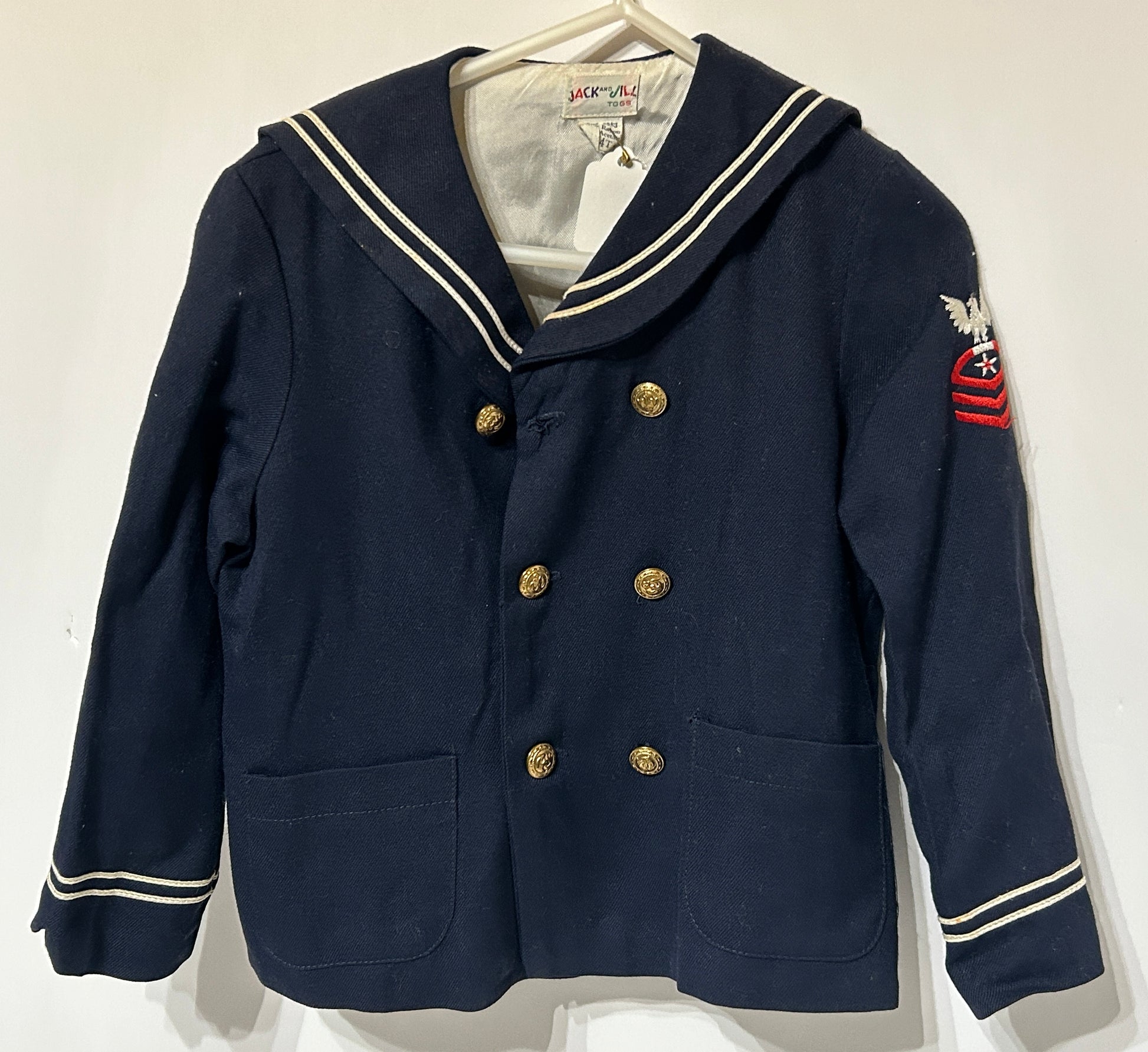 1950'S CHILDS SAILOR JACKET 15 1/2" LONG AND SIZE 4T. CALL OR TEXT FOR MORE INFORMATION