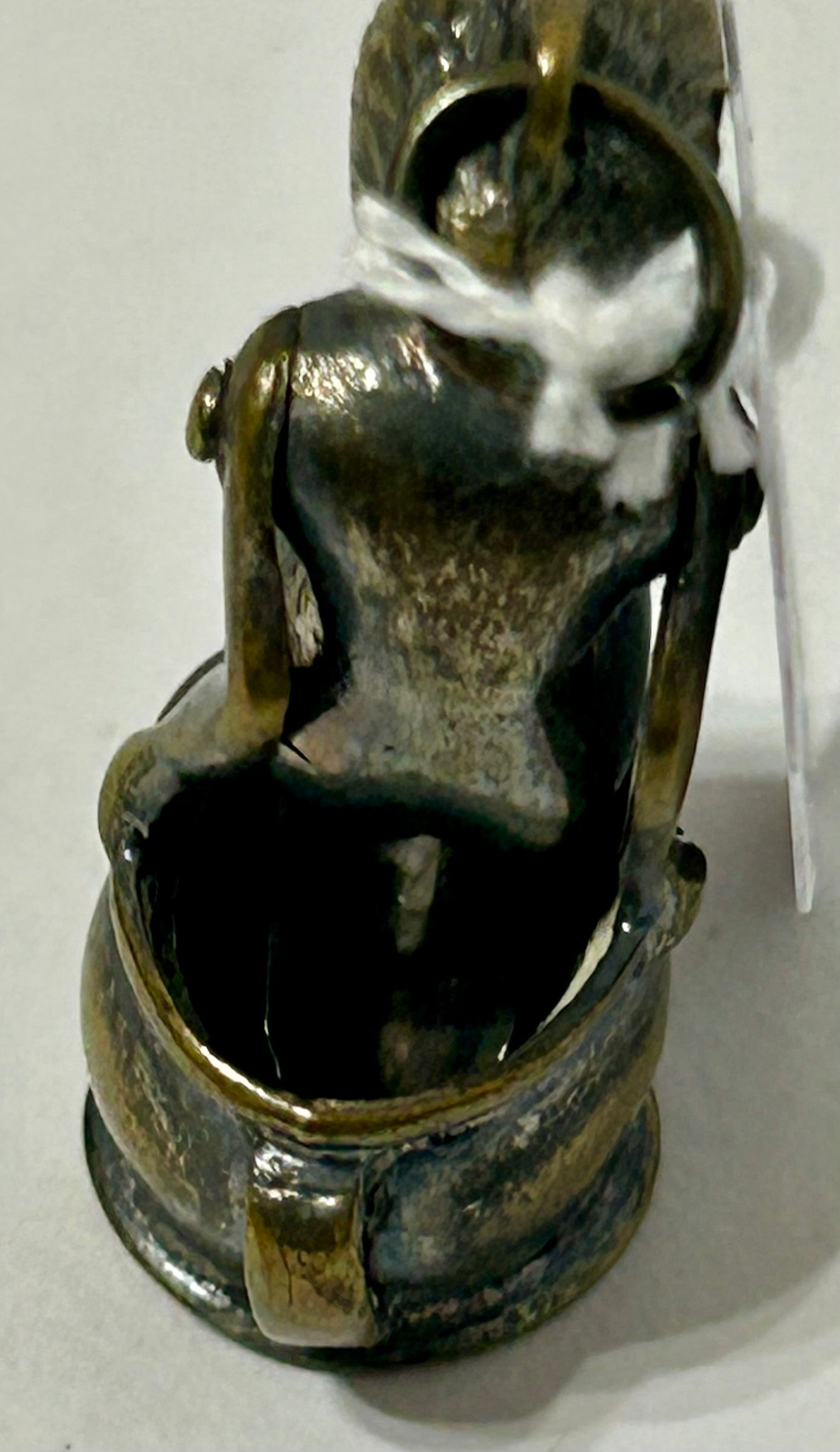RARE FIGURAL CIGAR NIPPER OF LADY SITTING ON CHAMBER POT. CALL OR TEXT FOR MORE INFORMATION