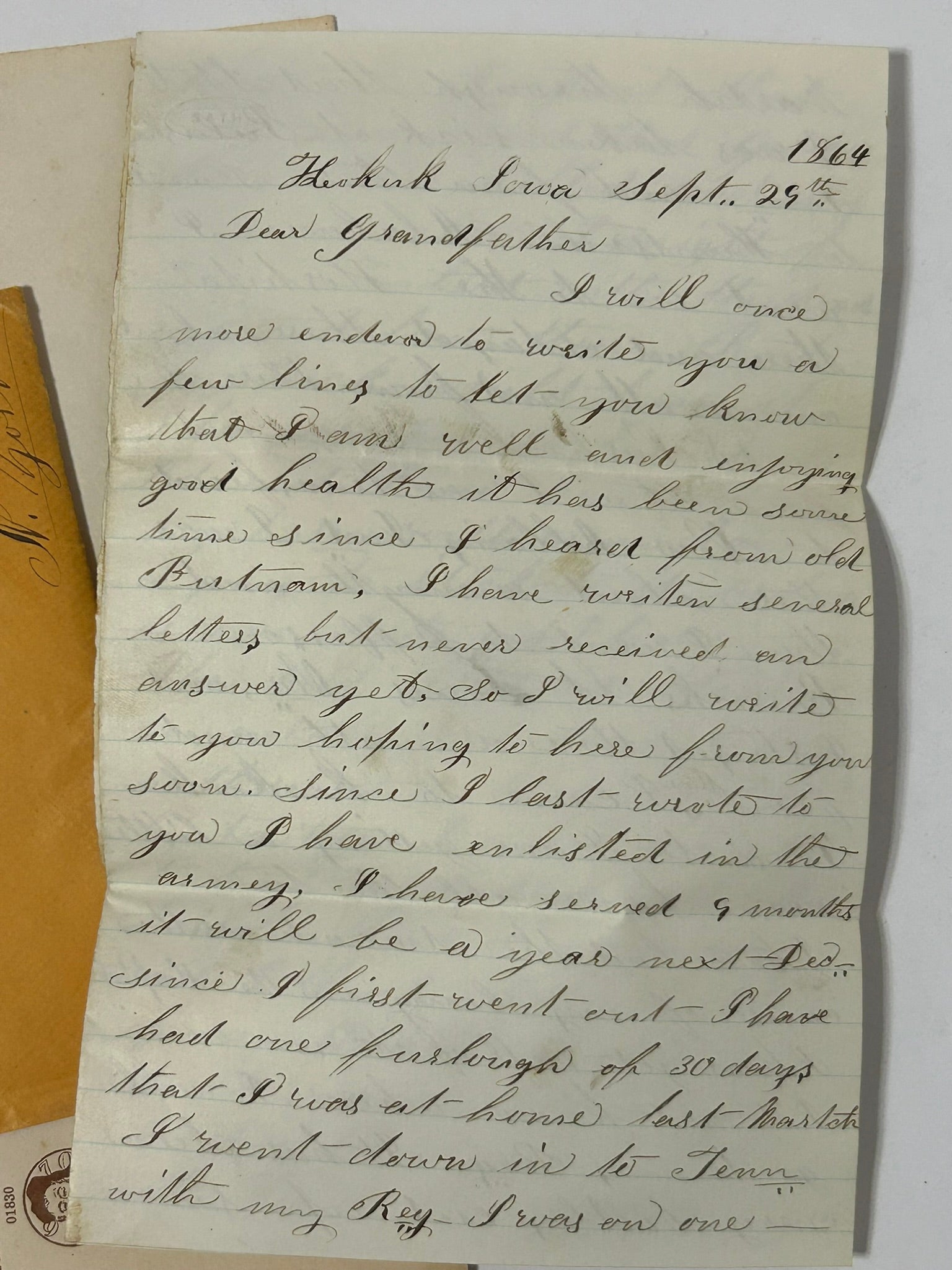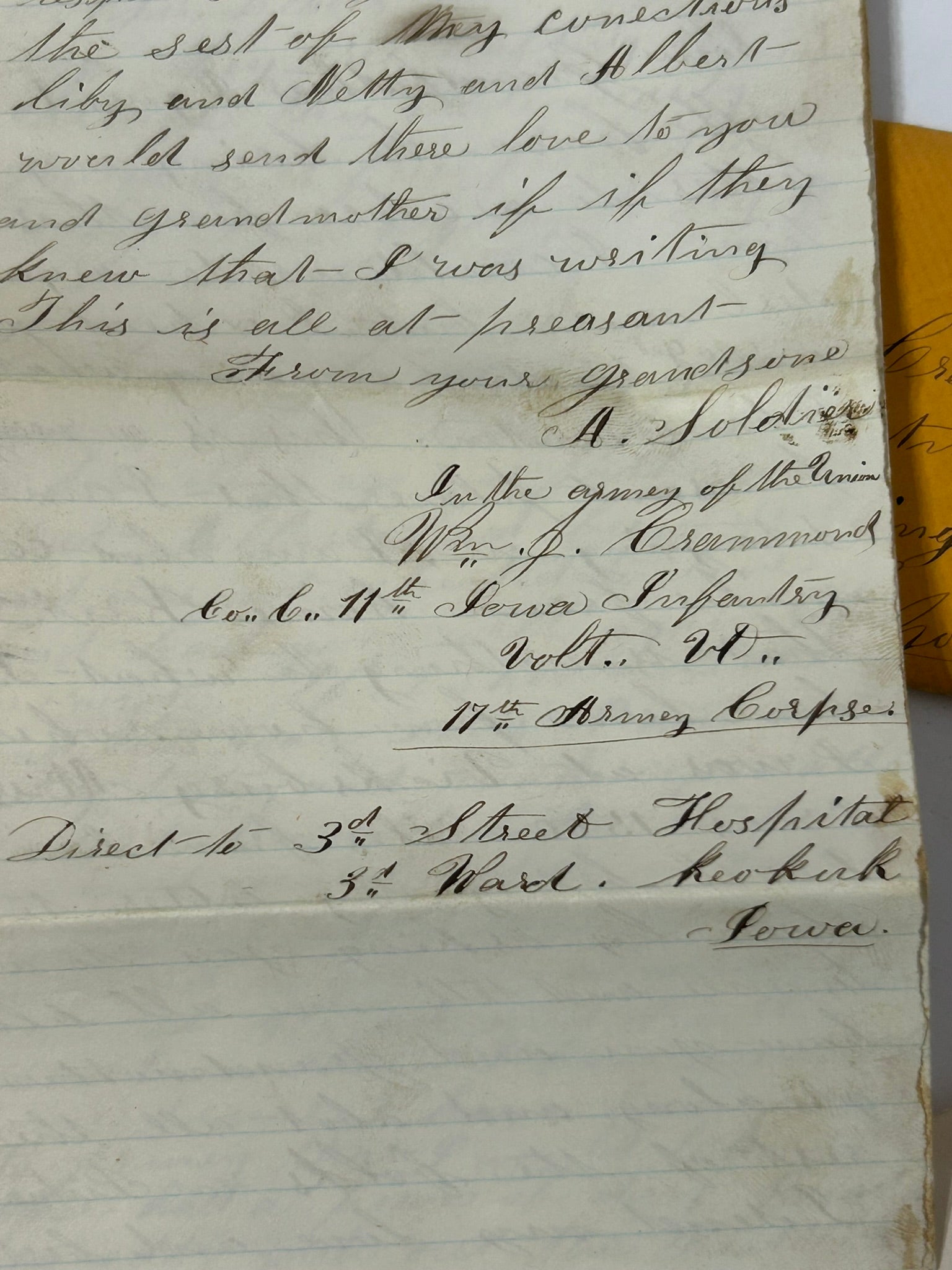 CIVIL WAR 1864 LETTER FROM 11TH IOWA INFANTRY SOLDIER MENTIONING VOTING FOR ABE LINCOLN