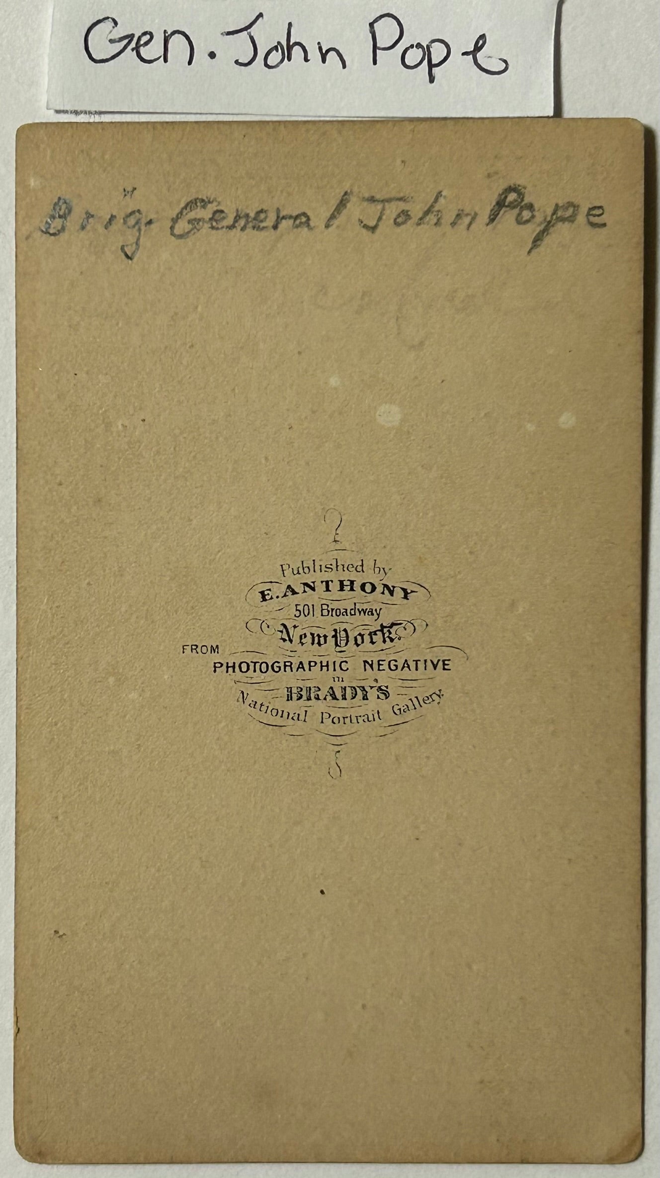 CIVIL WAR BRIGADIER GENERAL JOHN POPE CDV PHOTOGRAPH