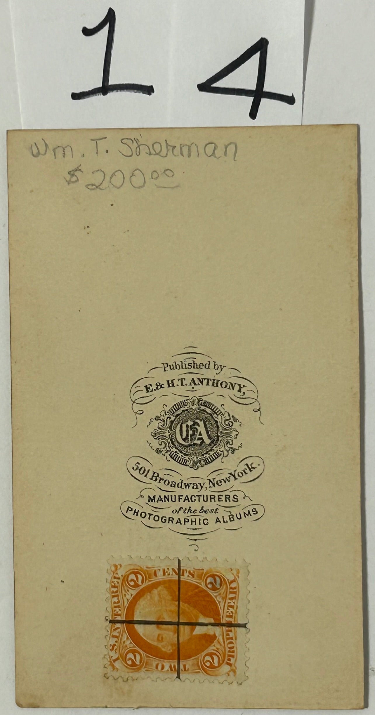 CIVIL WAR CDV PHOTOGRAPH OF GENERAL WM. SHERMAN BY PHOTOGRAPHER ANTHONY