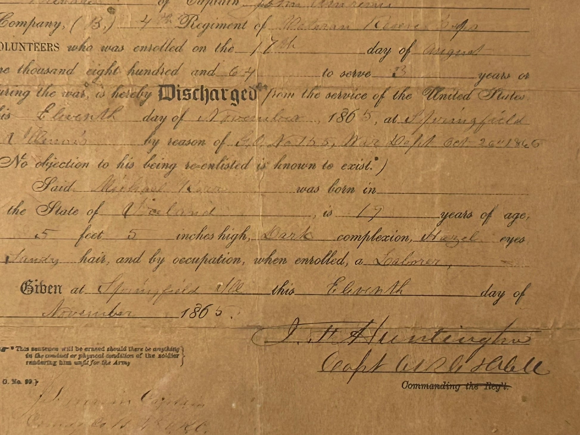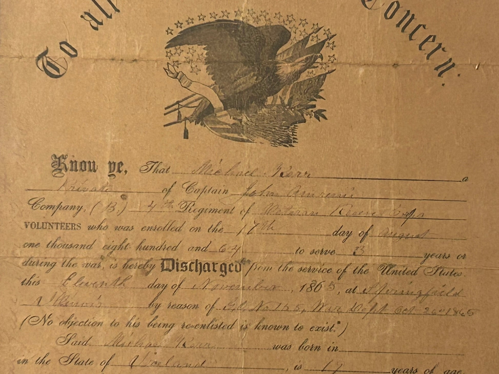 CIVIL WAR DISCHARGE SPRINGFIELD ILLINOIS