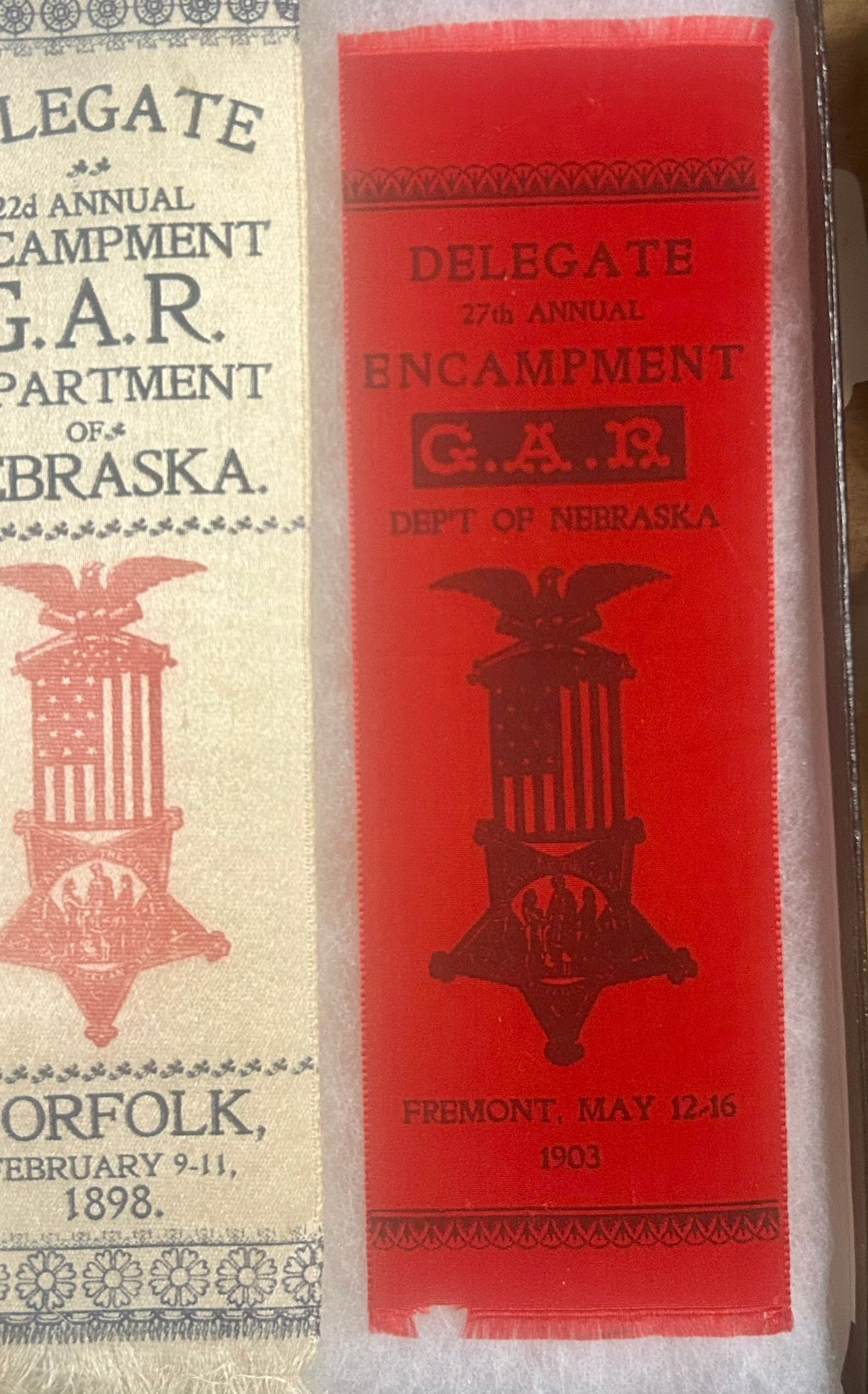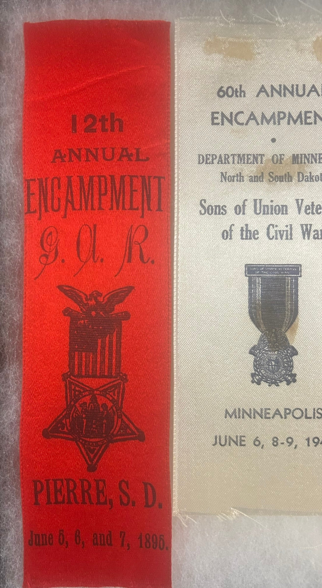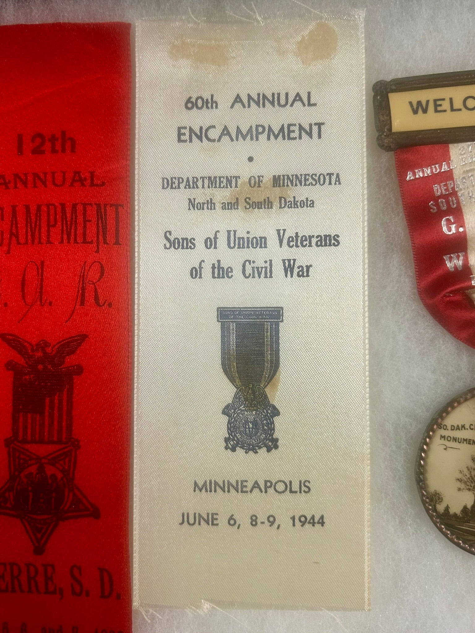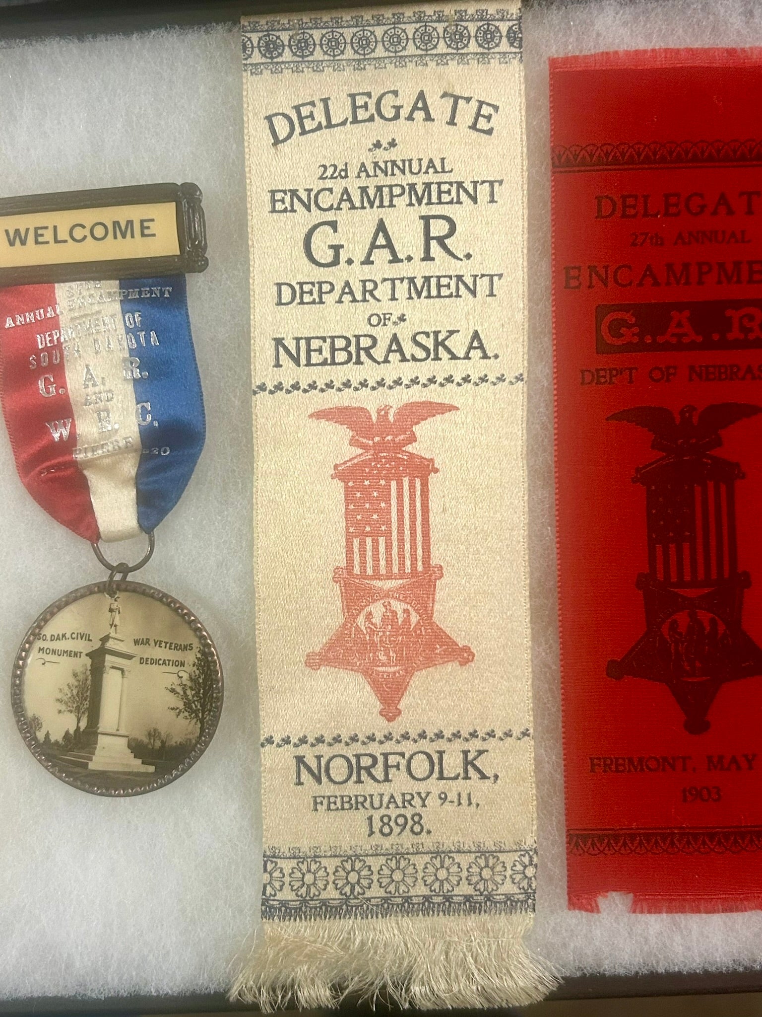 CIVIL WAR GROUP OF FIVE G.A.R. RIBBON MEDALS SOUTH DAKOTA, NEBR., MINN.