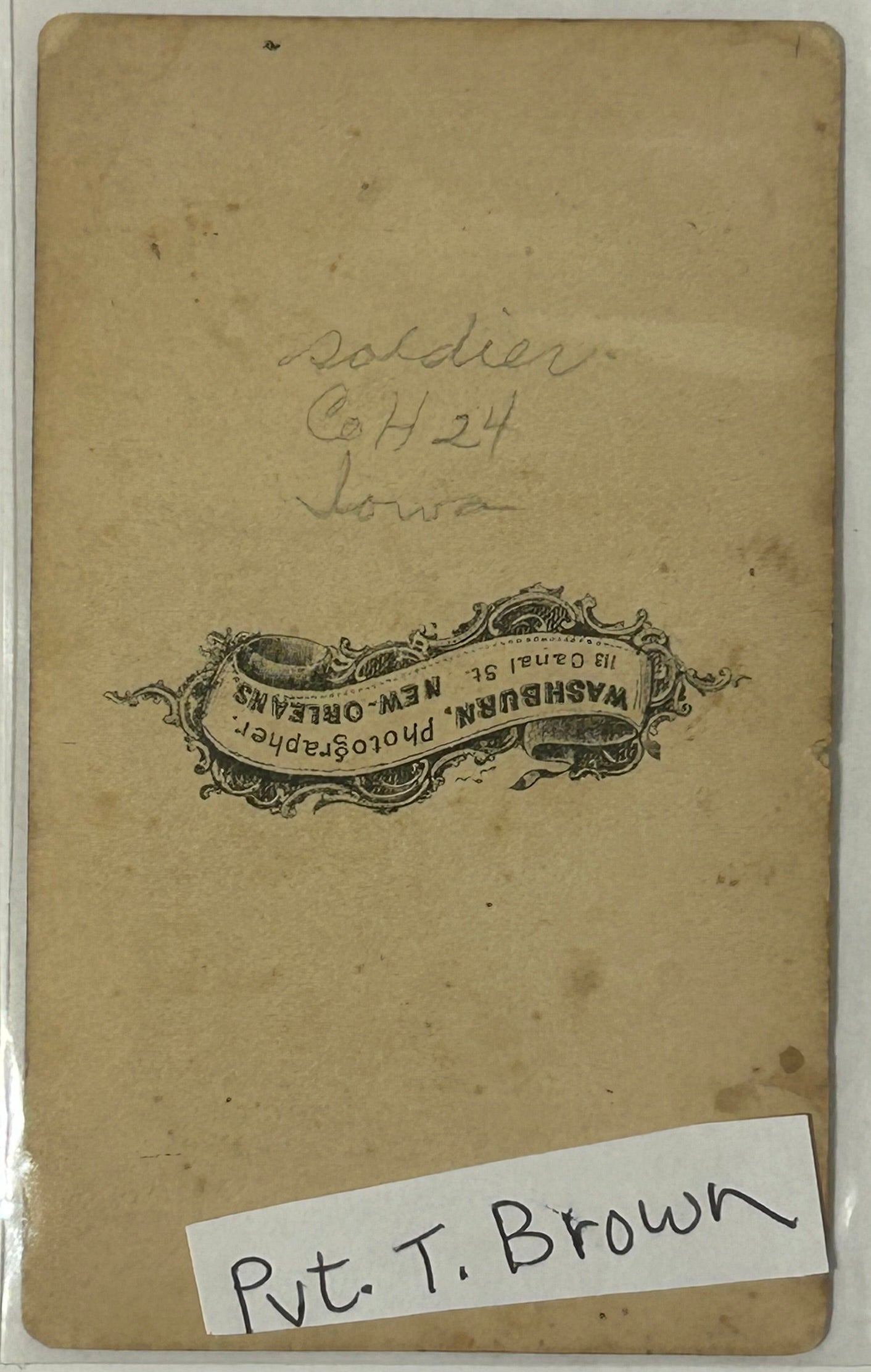 CIVIL WAR IOWA SOLDIER PVT. THOMAS C. BROWN CO. H 24TH IOWA CDV PHOTO