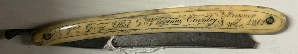 LT. GEORGE ELLIOT 5TH VIRGINIA CAVALRY PRISONER OF WAR 1862 ENGRAVED RAZOR. CALL OR TEXT FOR MORE INFORMATION