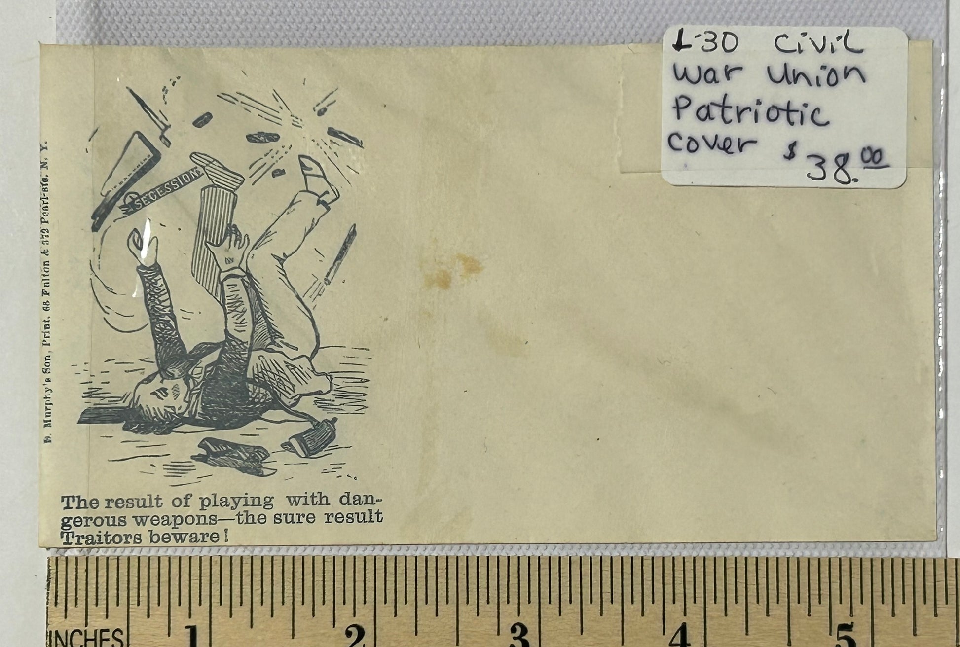 CIVIL WAR UNION PATRITIC ANTI SECESSION COVER 3" X 5 1/2". CALL OR TEXT FOR MORE INFORMATION