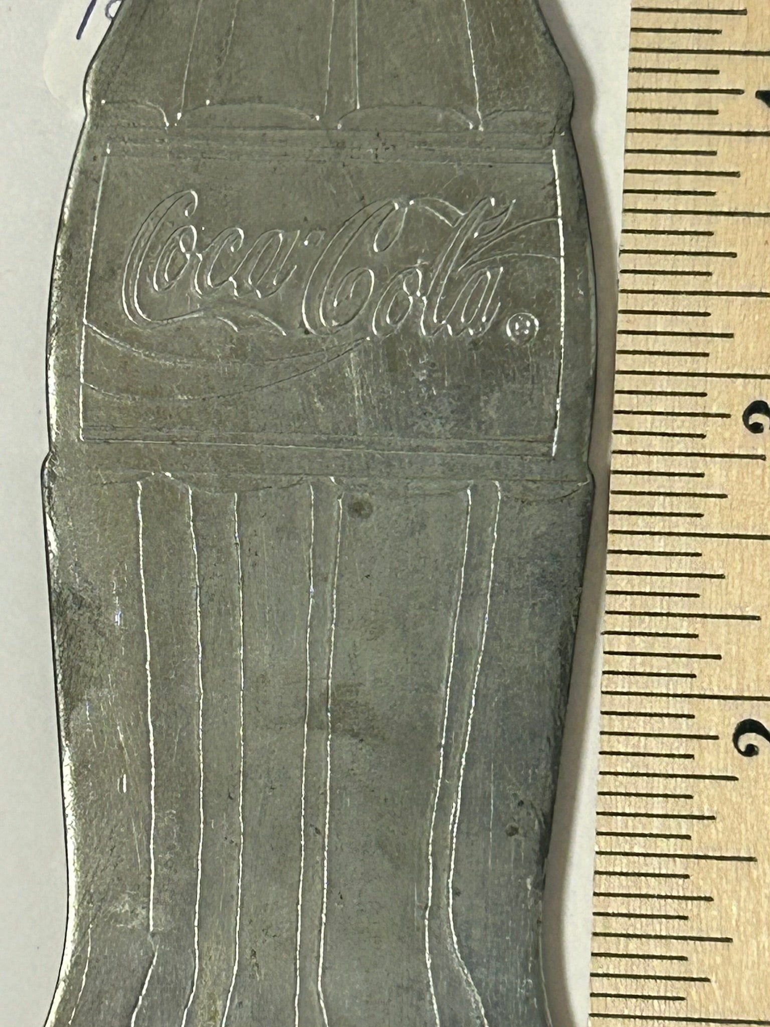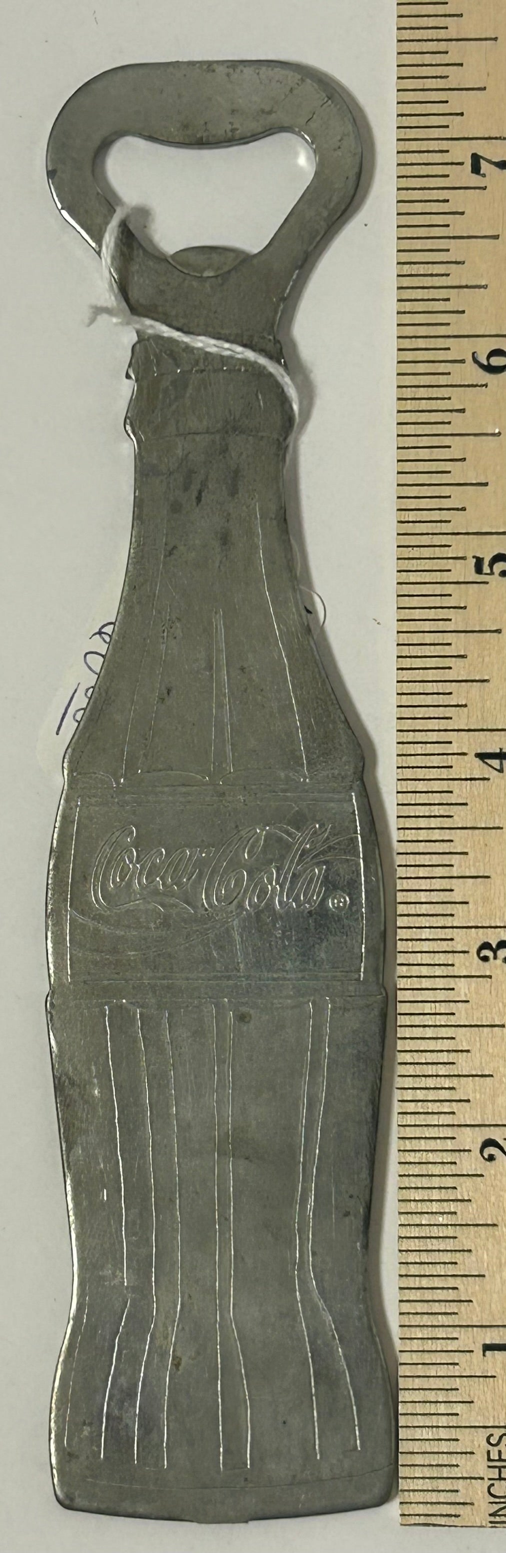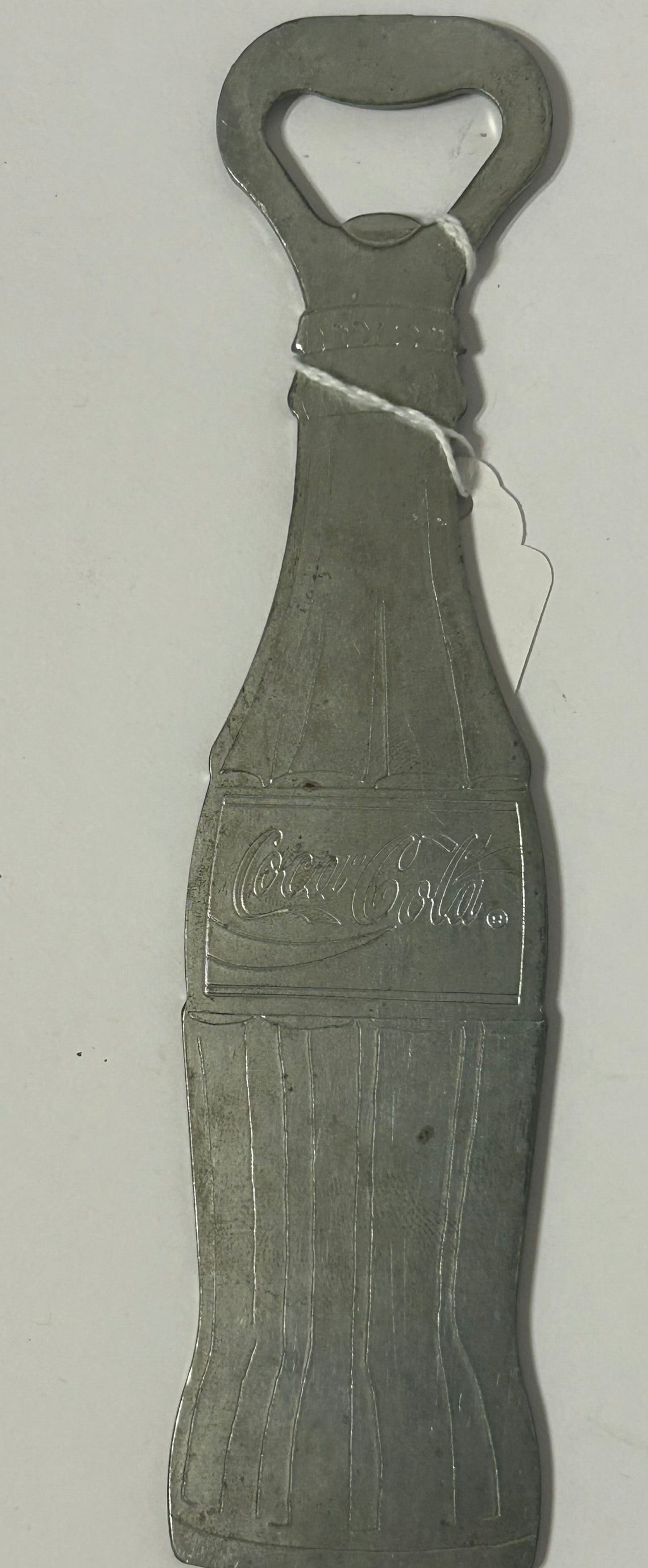 COCA COLA ADVERTISING FIGURAL METAL BOTTLE OPENER 7 1/2" LONG. CALL OR TEXT FOR MORE INFORMATION