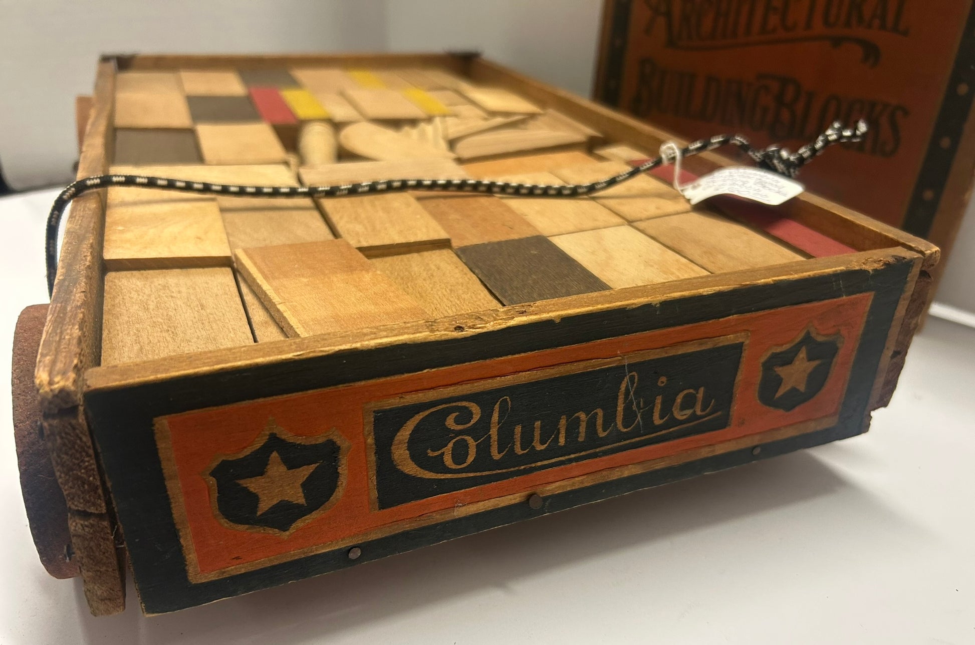 COLUMBIA ARCHITECTURAL BUILDING BLOCKS BY CONVERSE IN ORIGINAL PATRIOTIC WOOD WAGON
