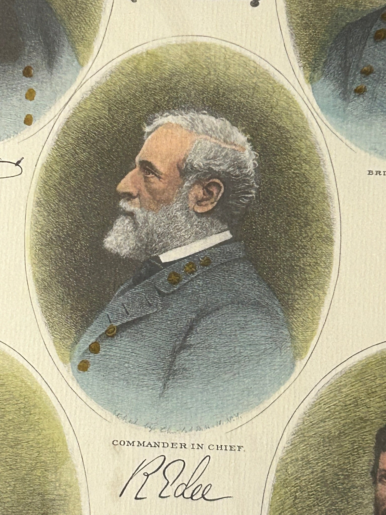 CONFEDERATE CIVIL WAR LITHOGRAPH OF "THE LEES OF VIRGINIA" HAND TINTED IMAGES OF CONFEDERATES NAMED LEE 27" X 24" OVERALL SIZE. CALL OR TEXT FOR MORE INFORMATION