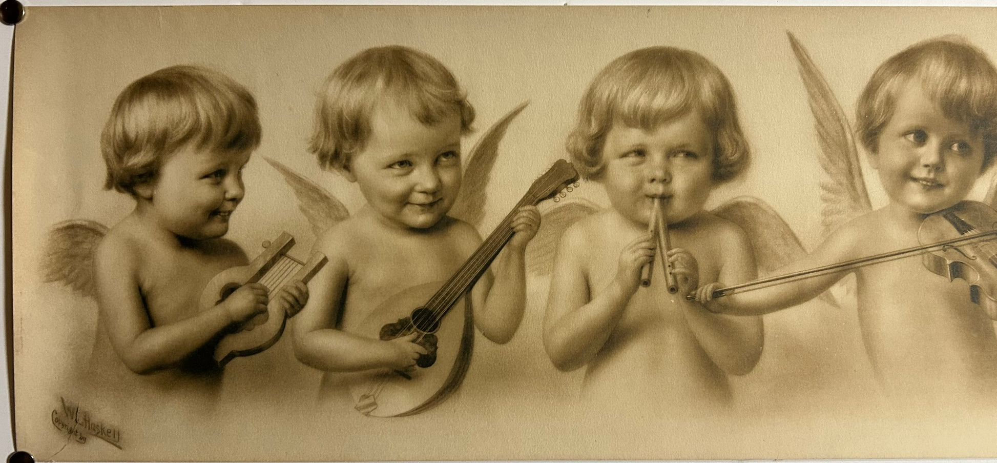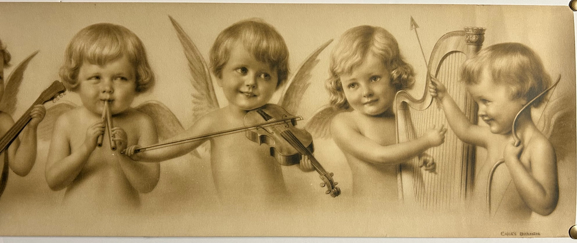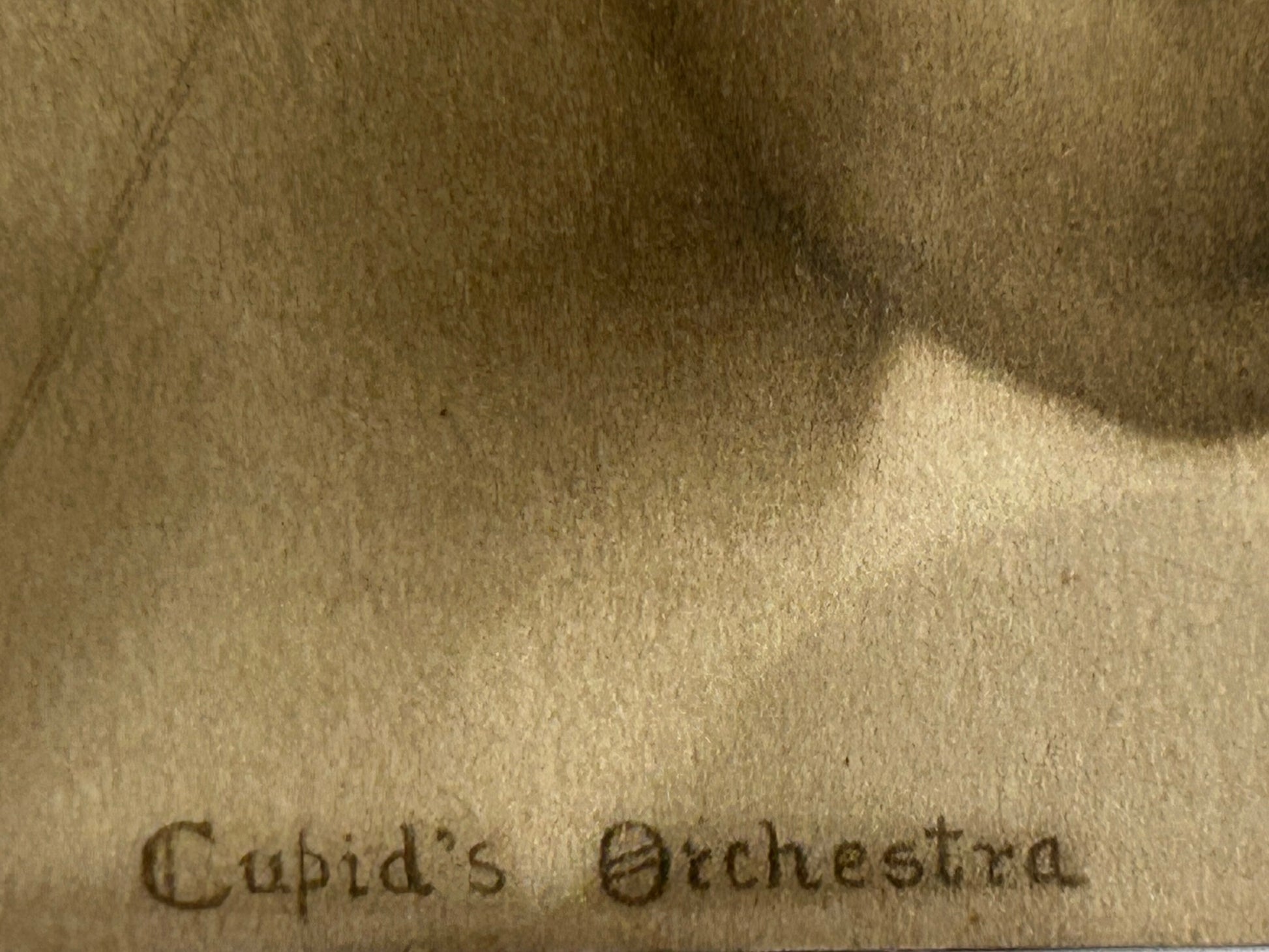 CUPIDS ORCHESTRA ANTIQUE PRINT OF CUPIDS PLAYING INSTRUMENTS 7" X 24" WIDE. CALL OR TEXT FOR MORE INFORMATION
