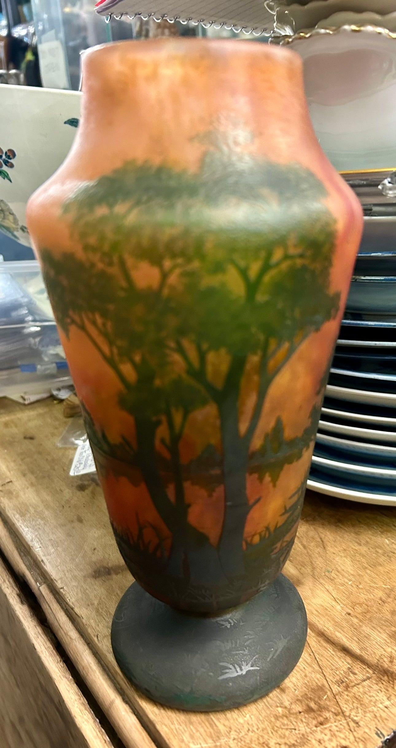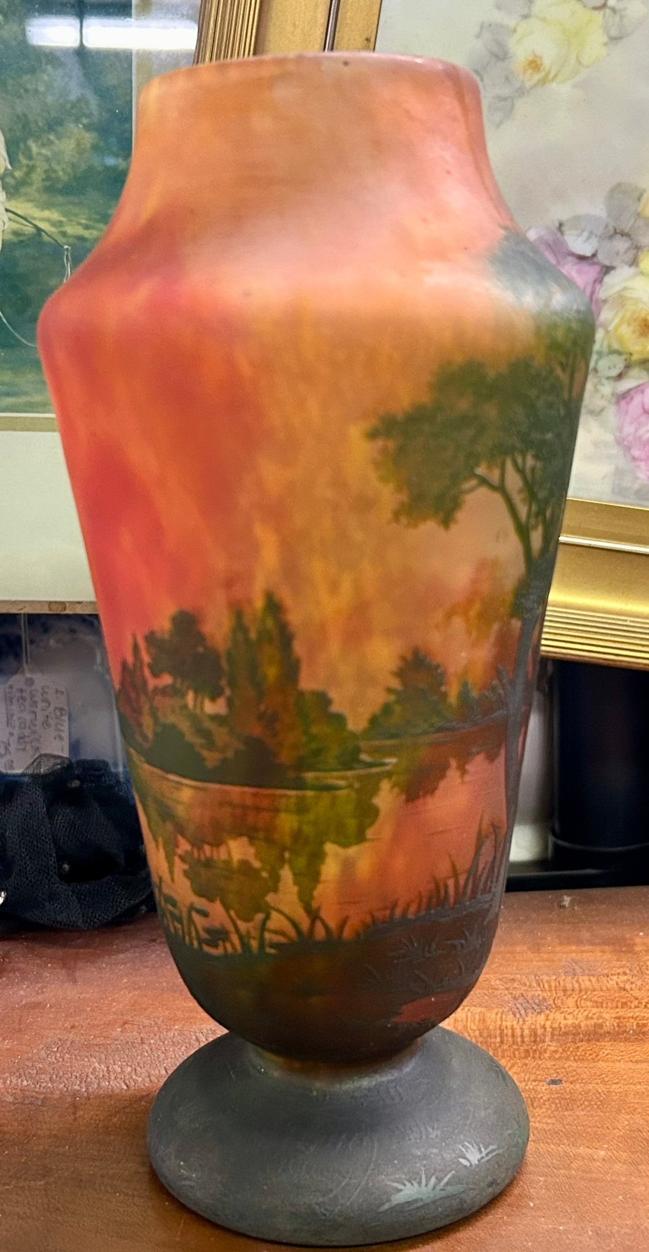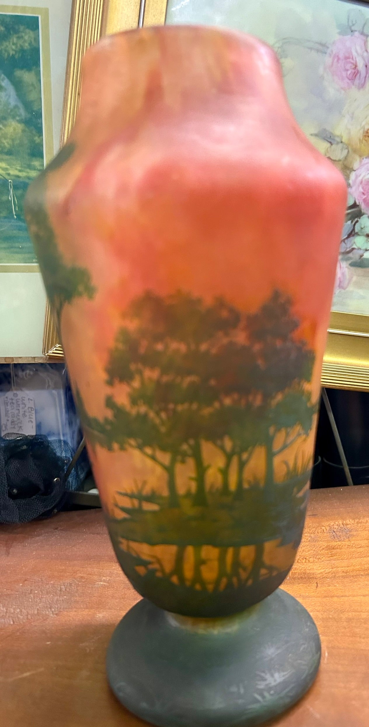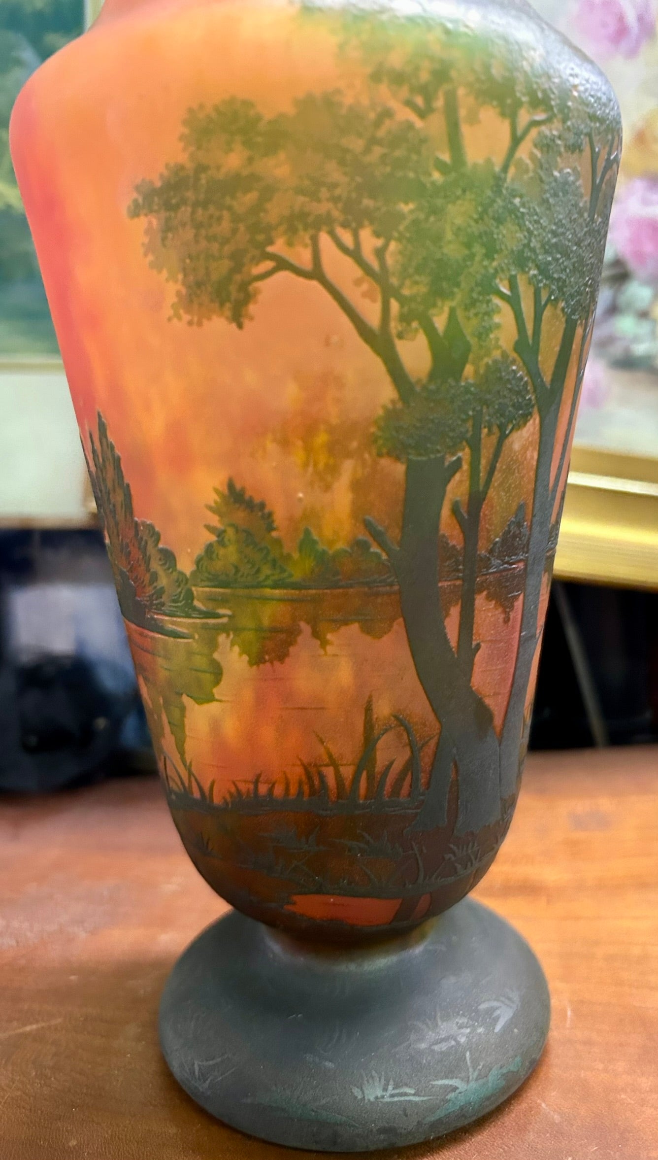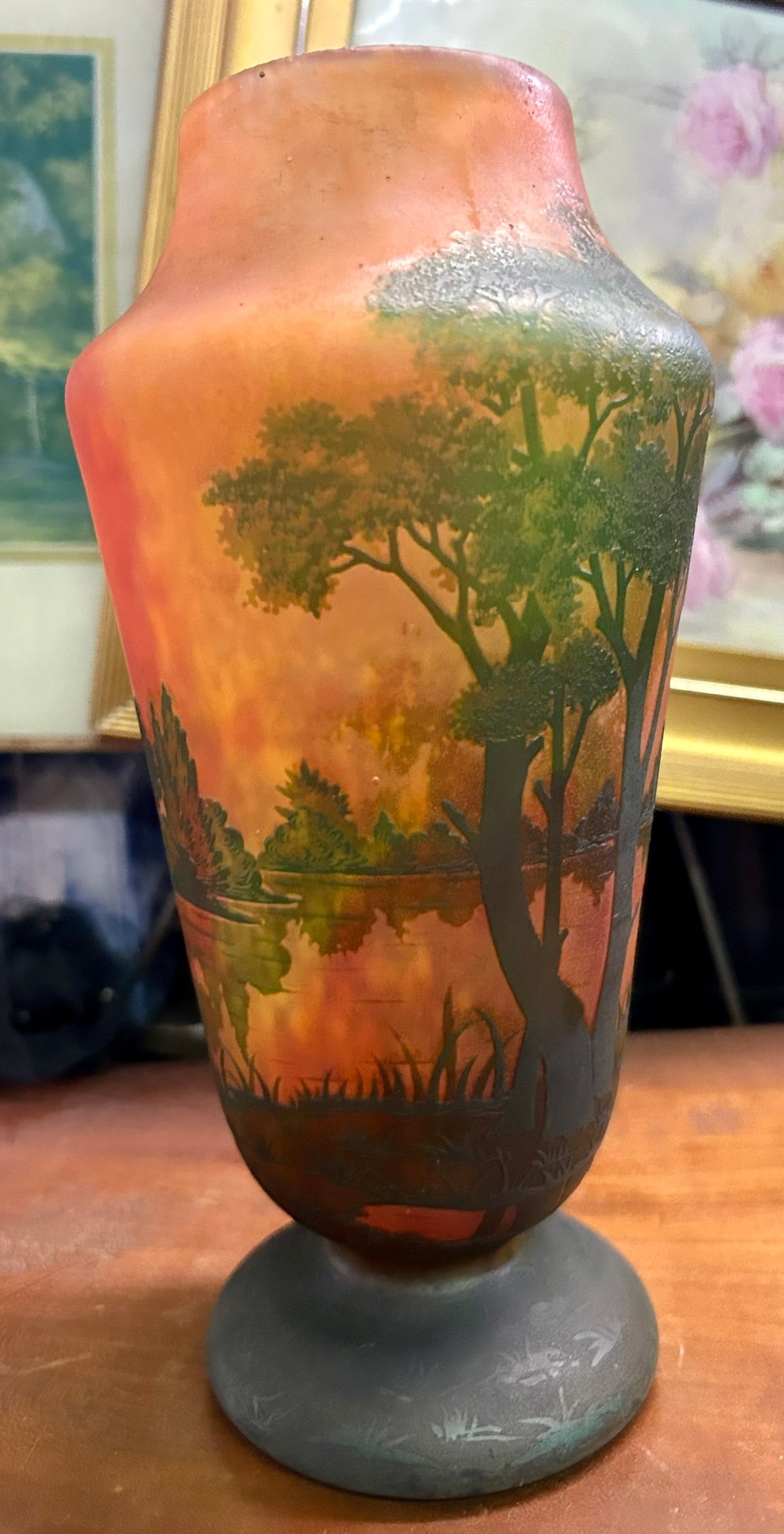 DAUM NANCY SCENIC CAMEO VASE 9" TALL. CALL, TEXT, OR E-MAIL FOR MORE INFORMATION