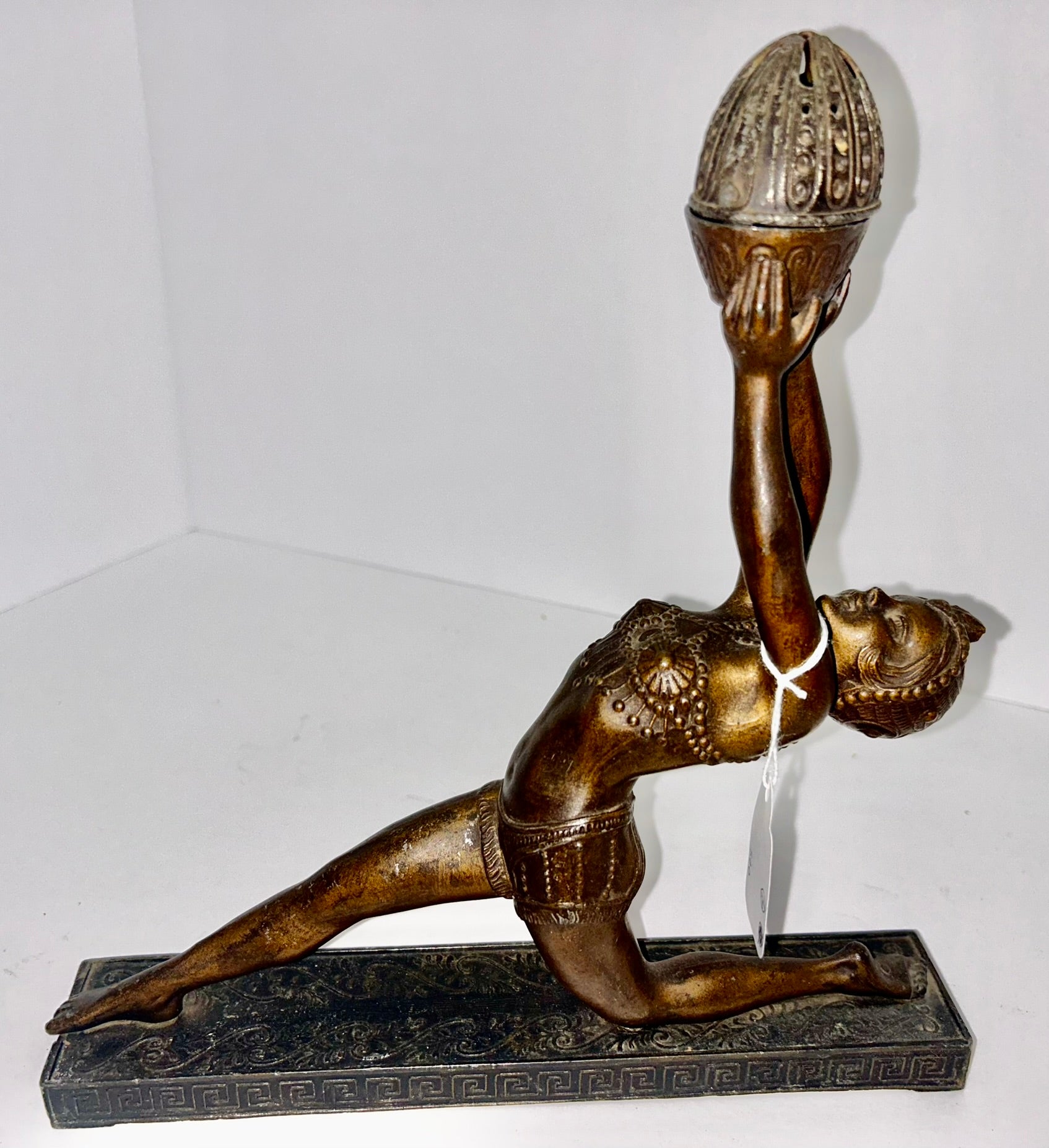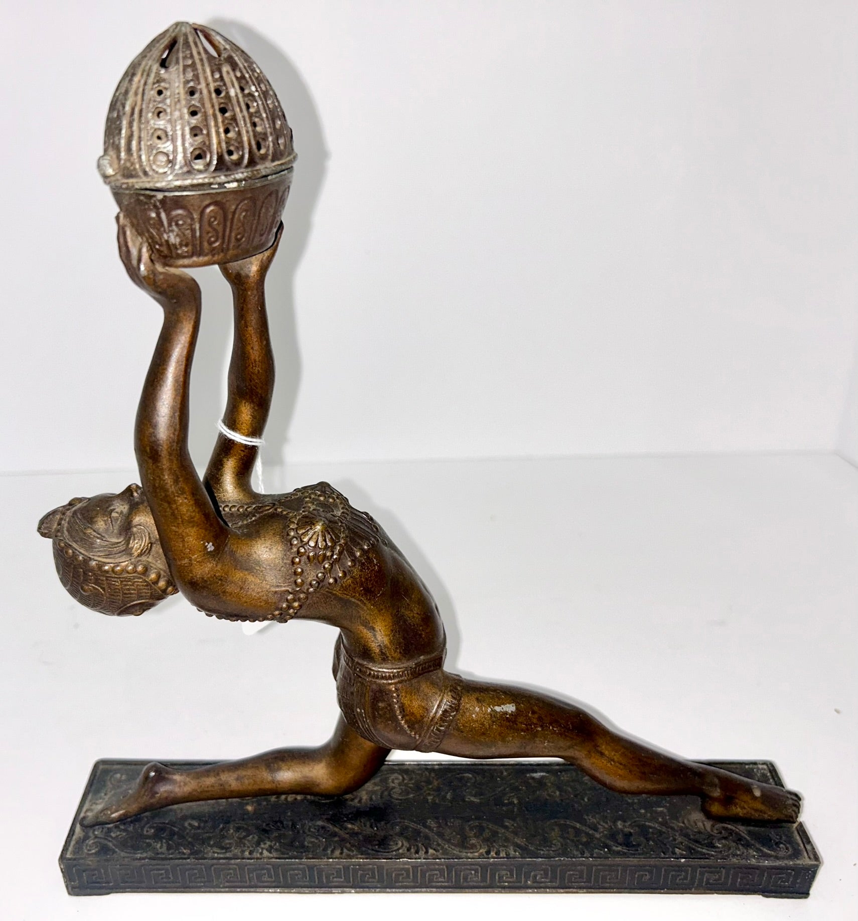 DECO LADY EGYPTIAN REVIVAL INCENSE BURNER IN BRONZE FINISH METAL 11" TALL X 10" WIDE. CALL OR TEXT FOR MORE INFORMATION