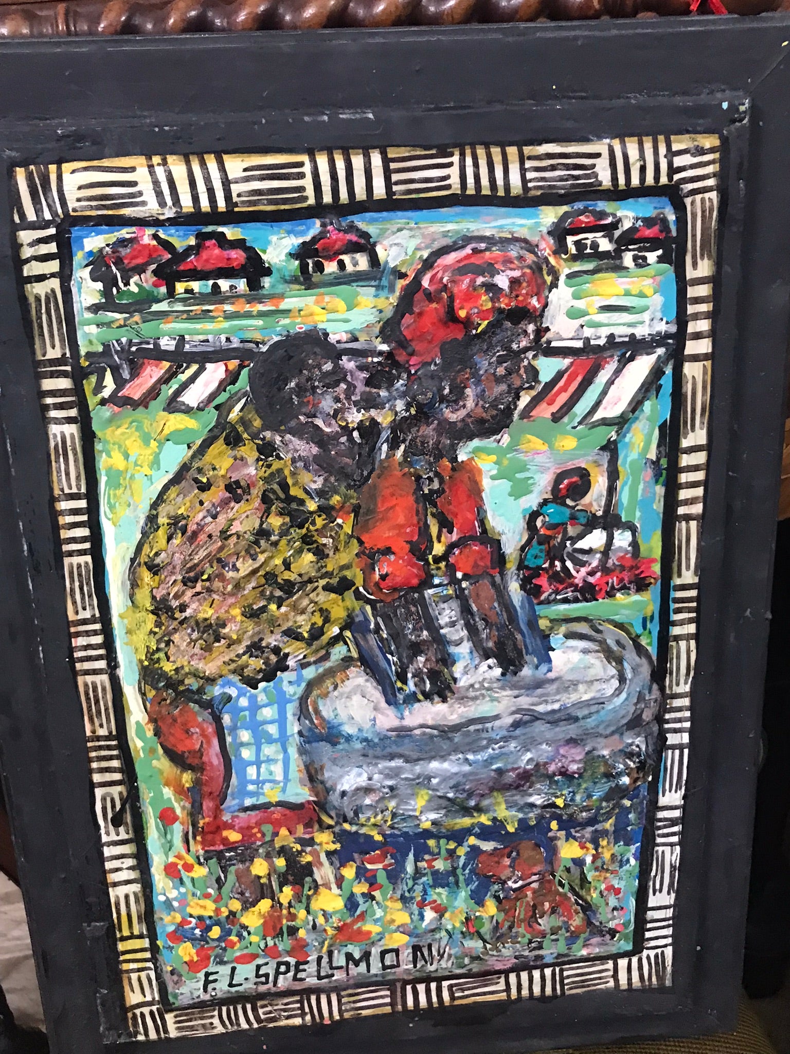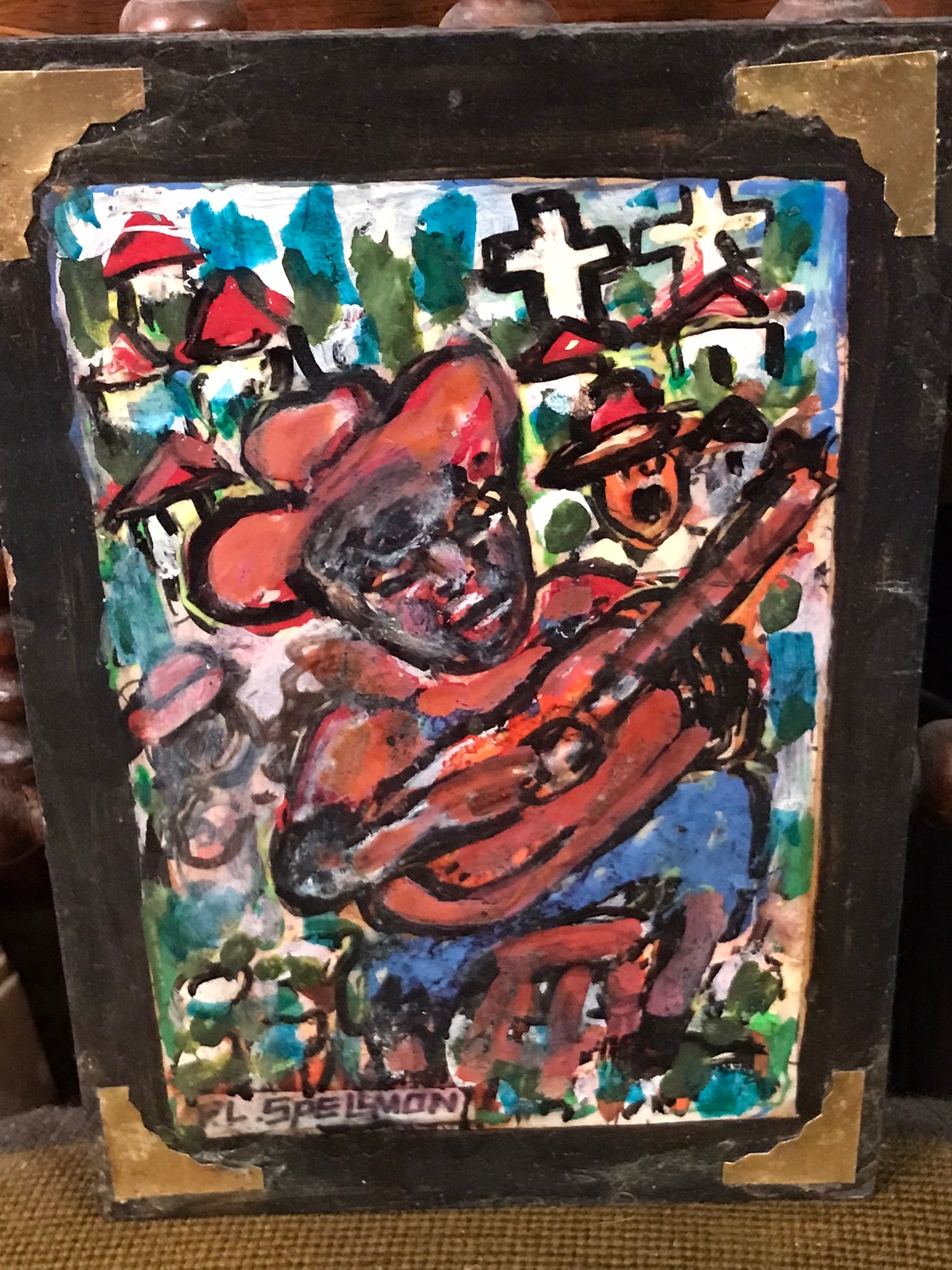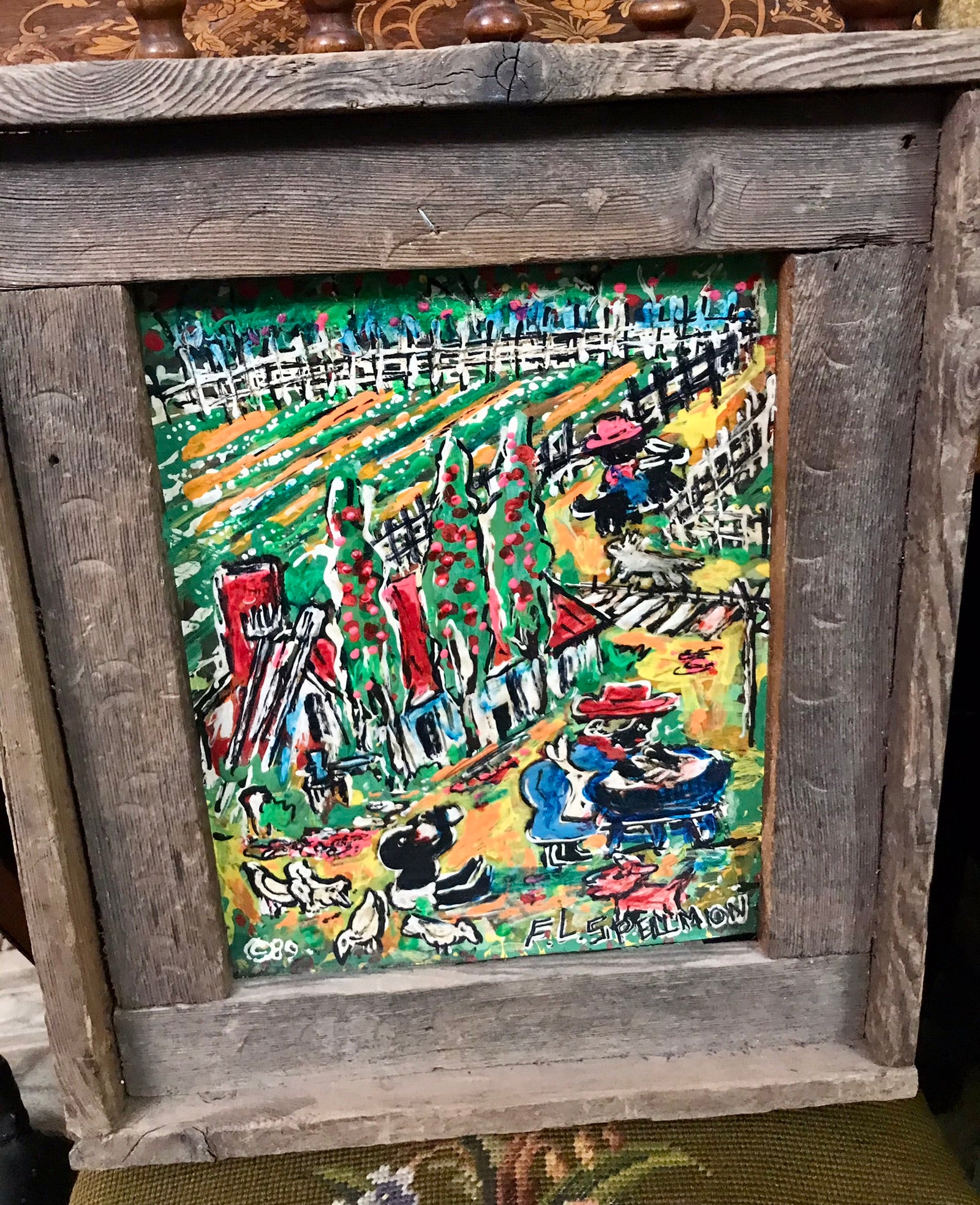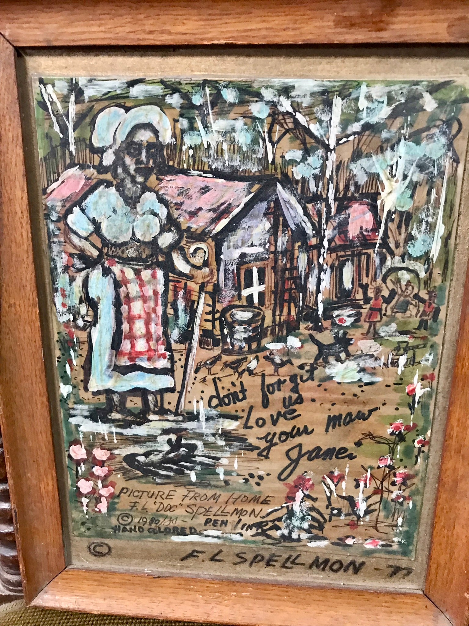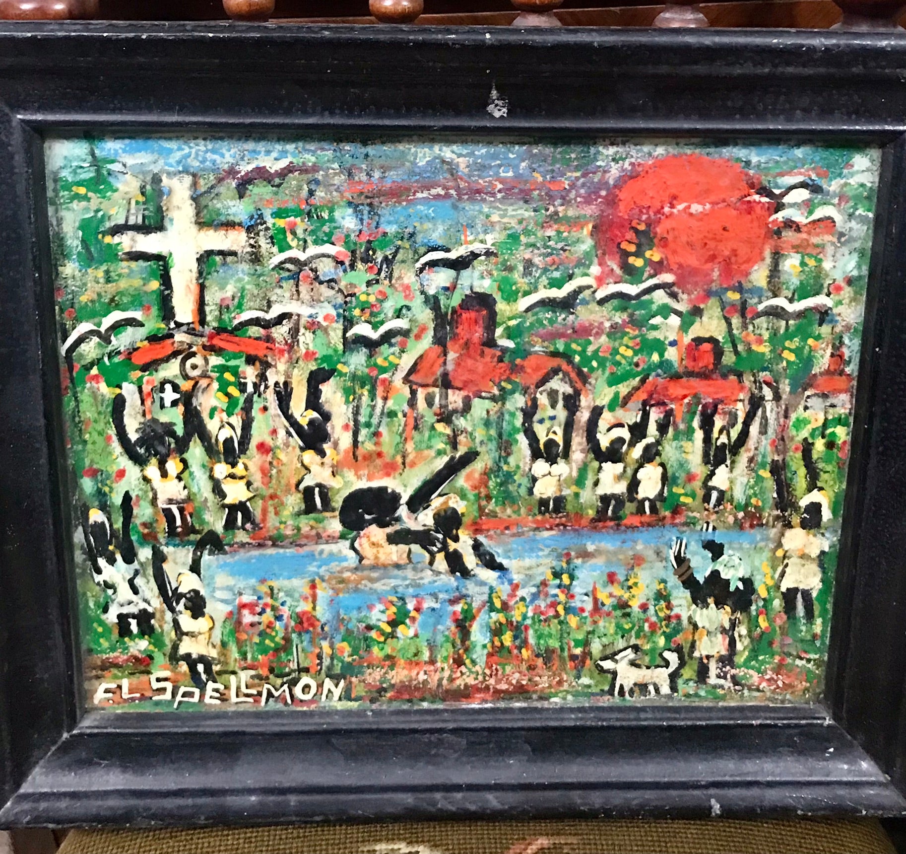 LARGE COLLECTION OF FAMOUS OUTSIDER ARTIST DOC SPELLMON PAINTINGS. SPELLMON WAS A BLACK TEXAS ARTIST KNOWN FOR HIS PAINTINGS OF THE OLD SOUTH. HE WAS BORN IN 1925 AND DIED IN 2008. THERE ARE OVER FIFTY PAINTINGS OF VARIOUS SIZES AND TECHNIQUES AND MOST HAVE HIS UNIQUE DISCRIPTIONS AND LABELS ON THEIR BACKS. SOLD INDIVIDUALLY OR IN GROUPS. PLEASE CALL 402 239 2799 OR TEXT OR E-MAIL dustyattic@charter.net FOR ADDITIONAL INFORMATION