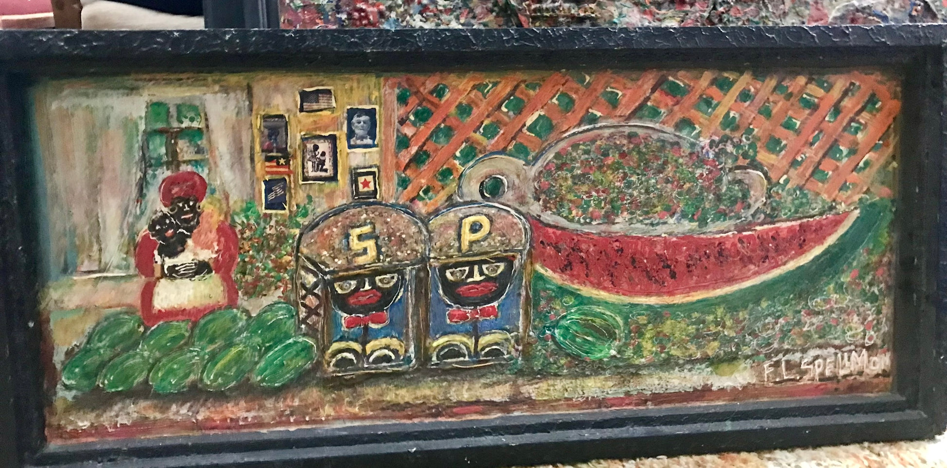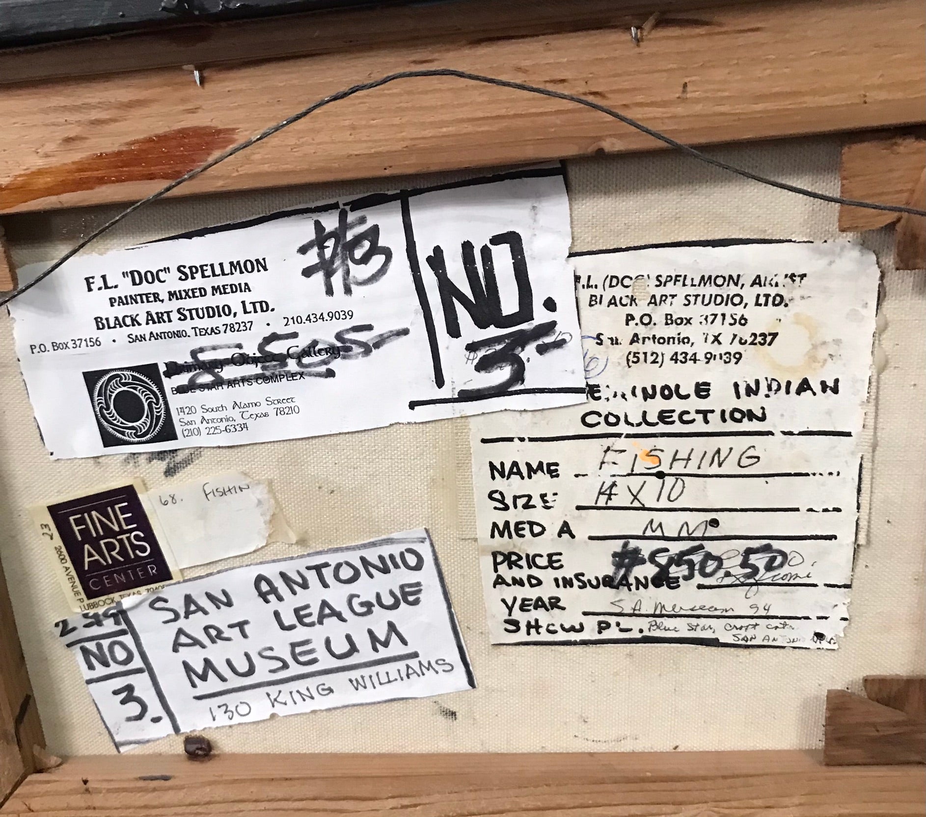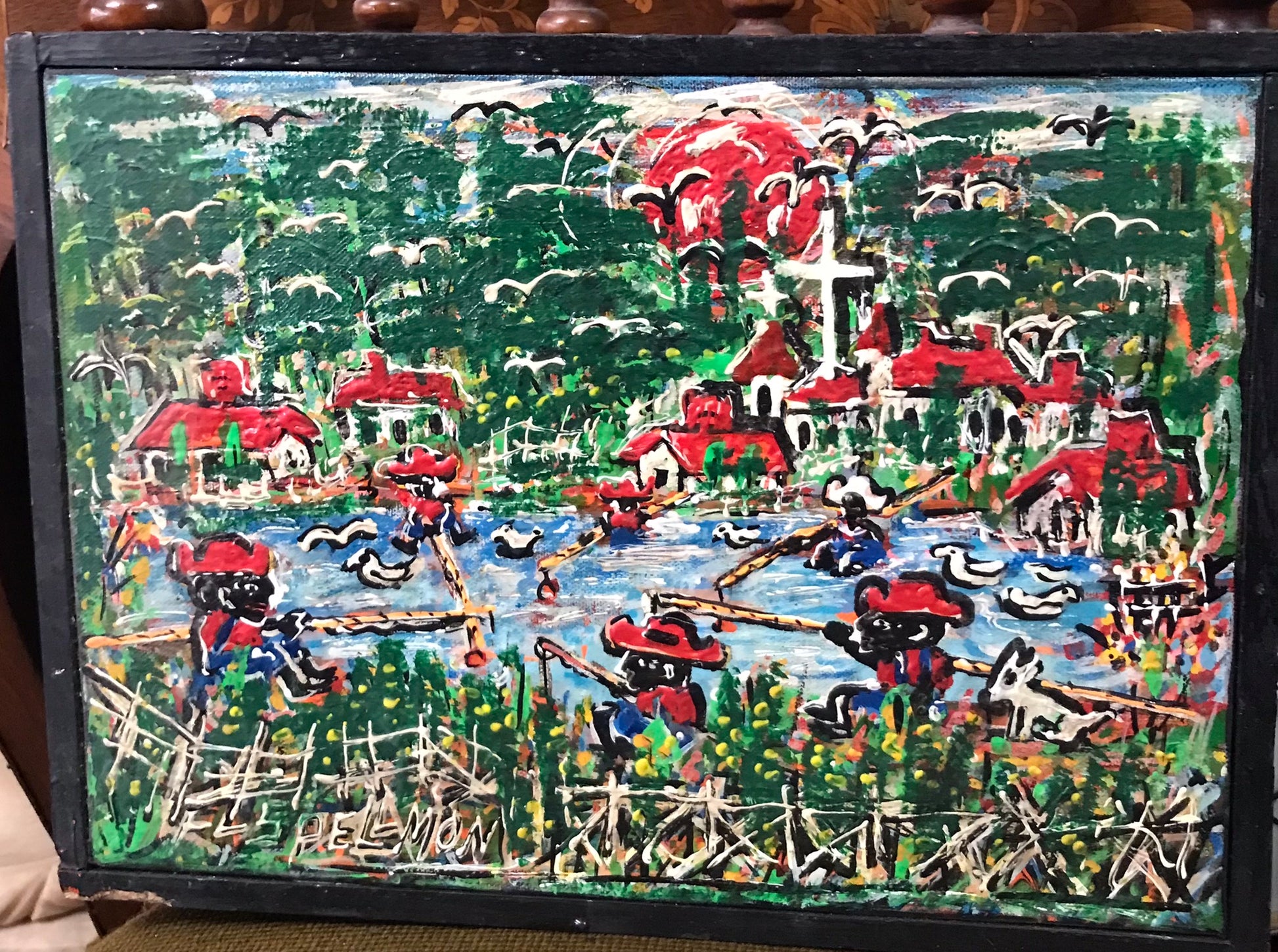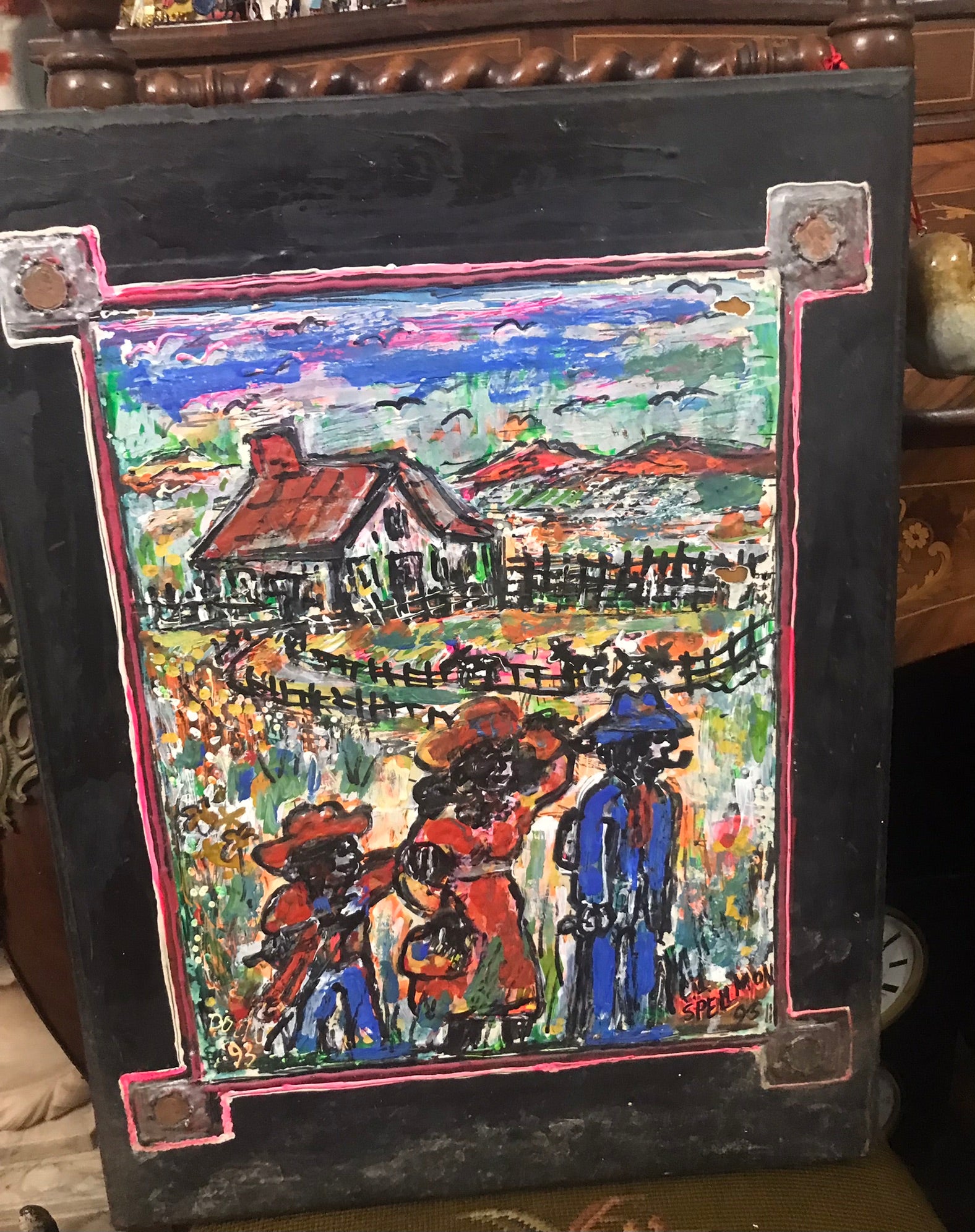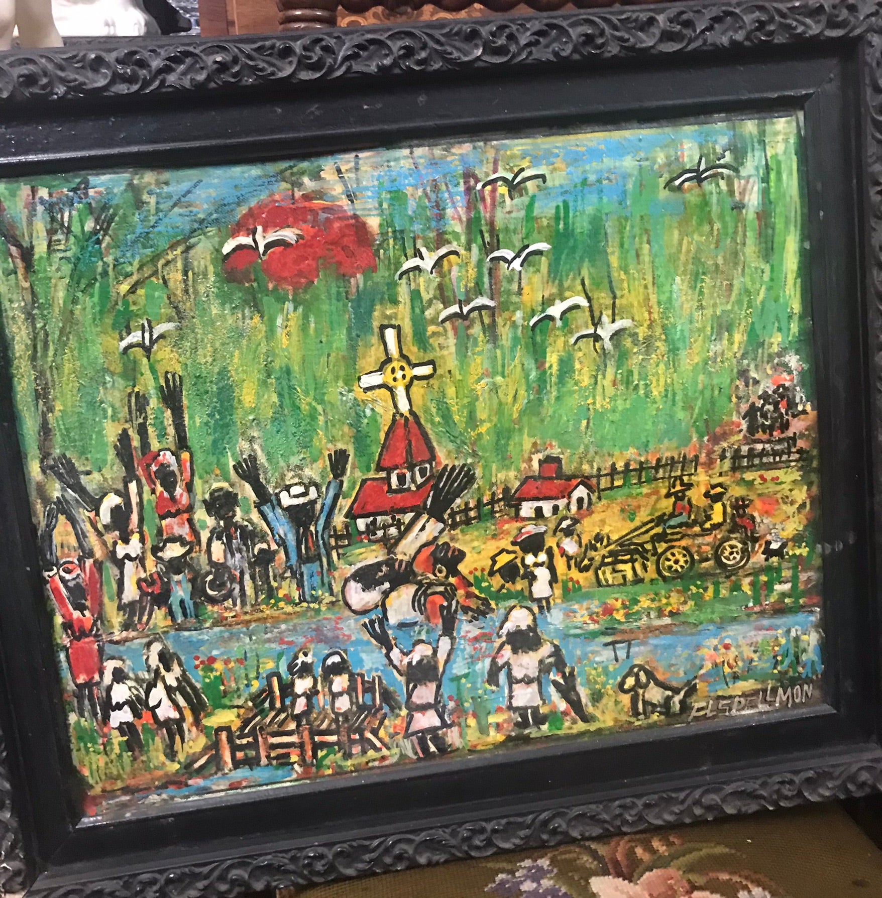 LARGE COLLECTION OF FAMOUS OUTSIDER ARTIST DOC SPELLMON PAINTINGS. SPELLMON WAS A BLACK TEXAS ARTIST KNOWN FOR HIS PAINTINGS OF THE OLD SOUTH. HE WAS BORN IN 1925 AND DIED IN 2008. THERE ARE OVER FIFTY PAINTINGS OF VARIOUS SIZES AND TECHNIQUES AND MOST HAVE HIS UNIQUE DISCRIPTIONS AND LABELS ON THEIR BACKS. SOLD INDIVIDUALLY OR IN GROUPS. PLEASE CALL 402 239 2799 OR TEXT OR E-MAIL dustyattic@charter.net FOR ADDITIONAL INFORMATION