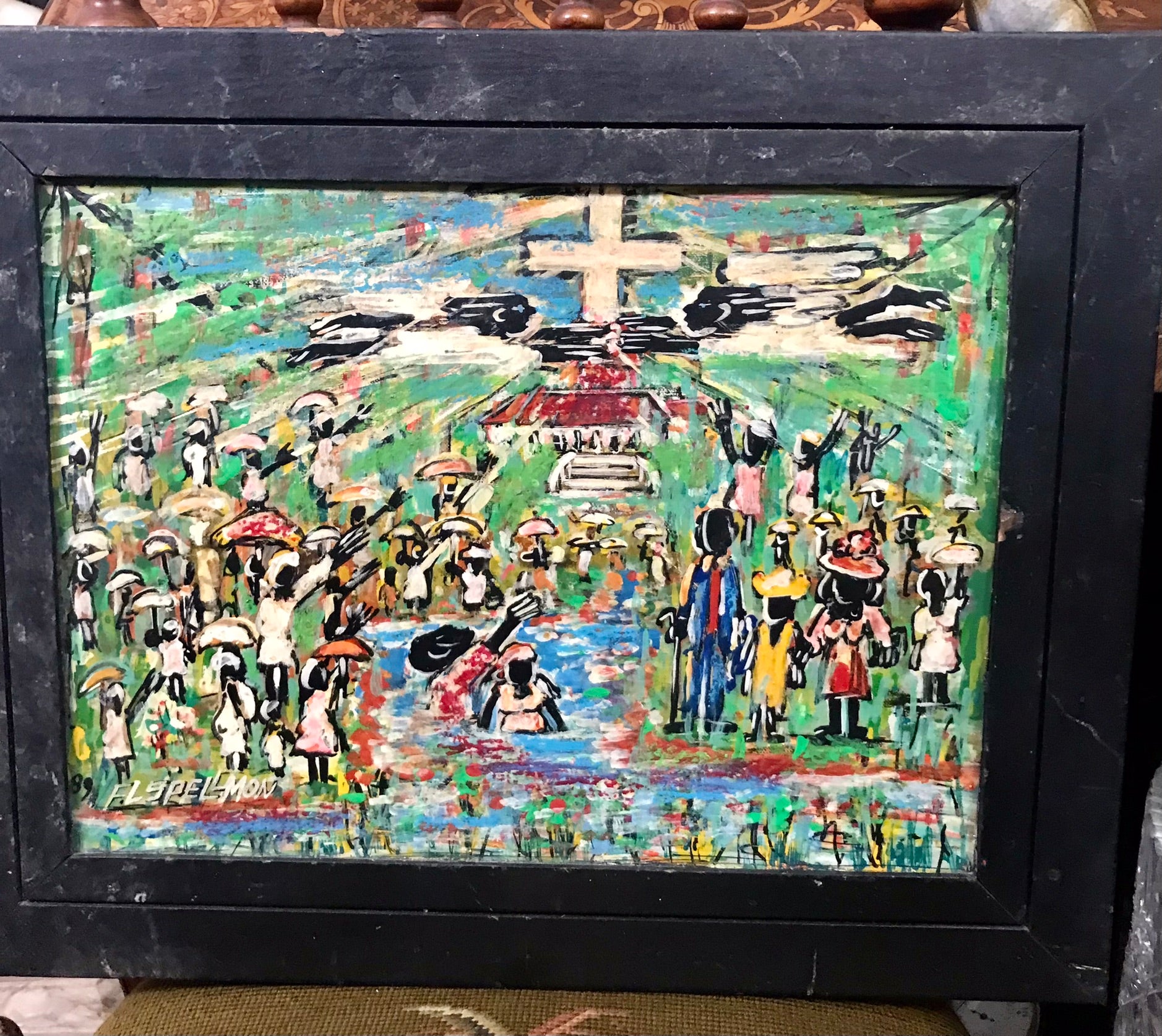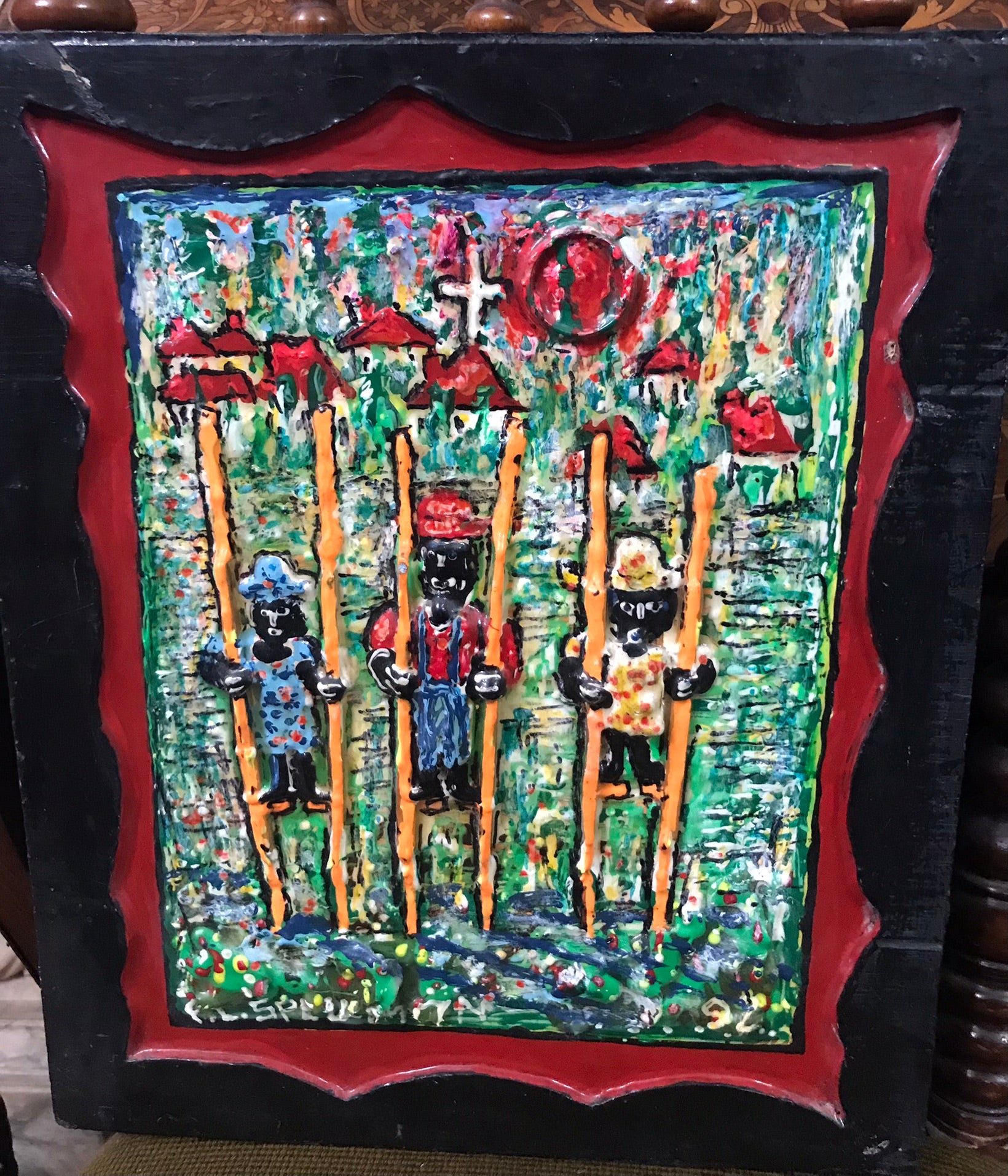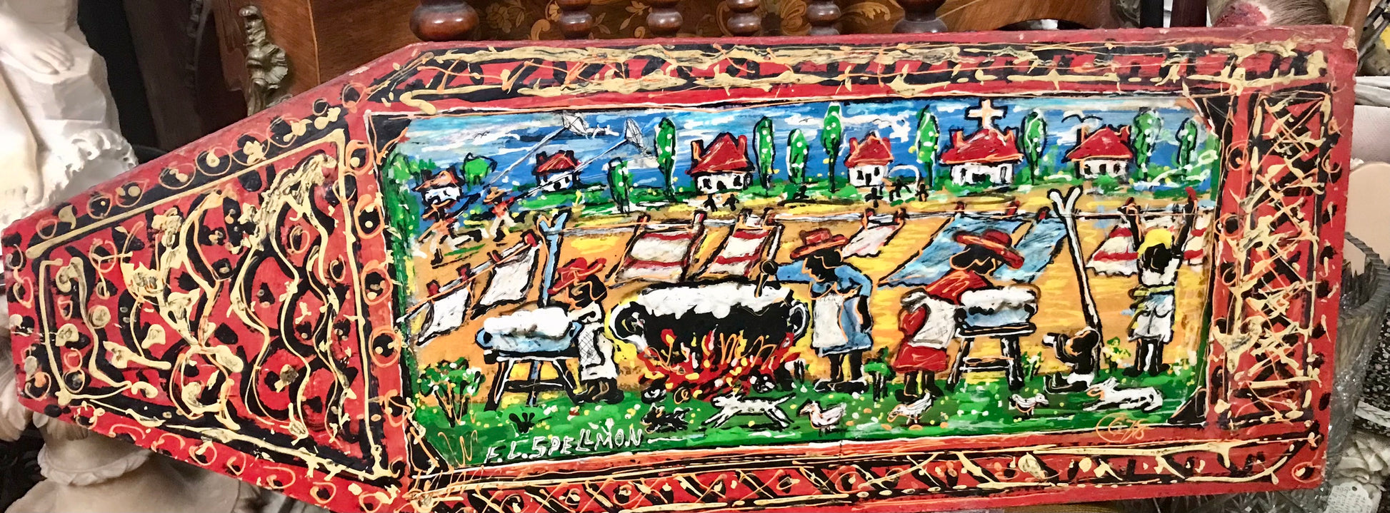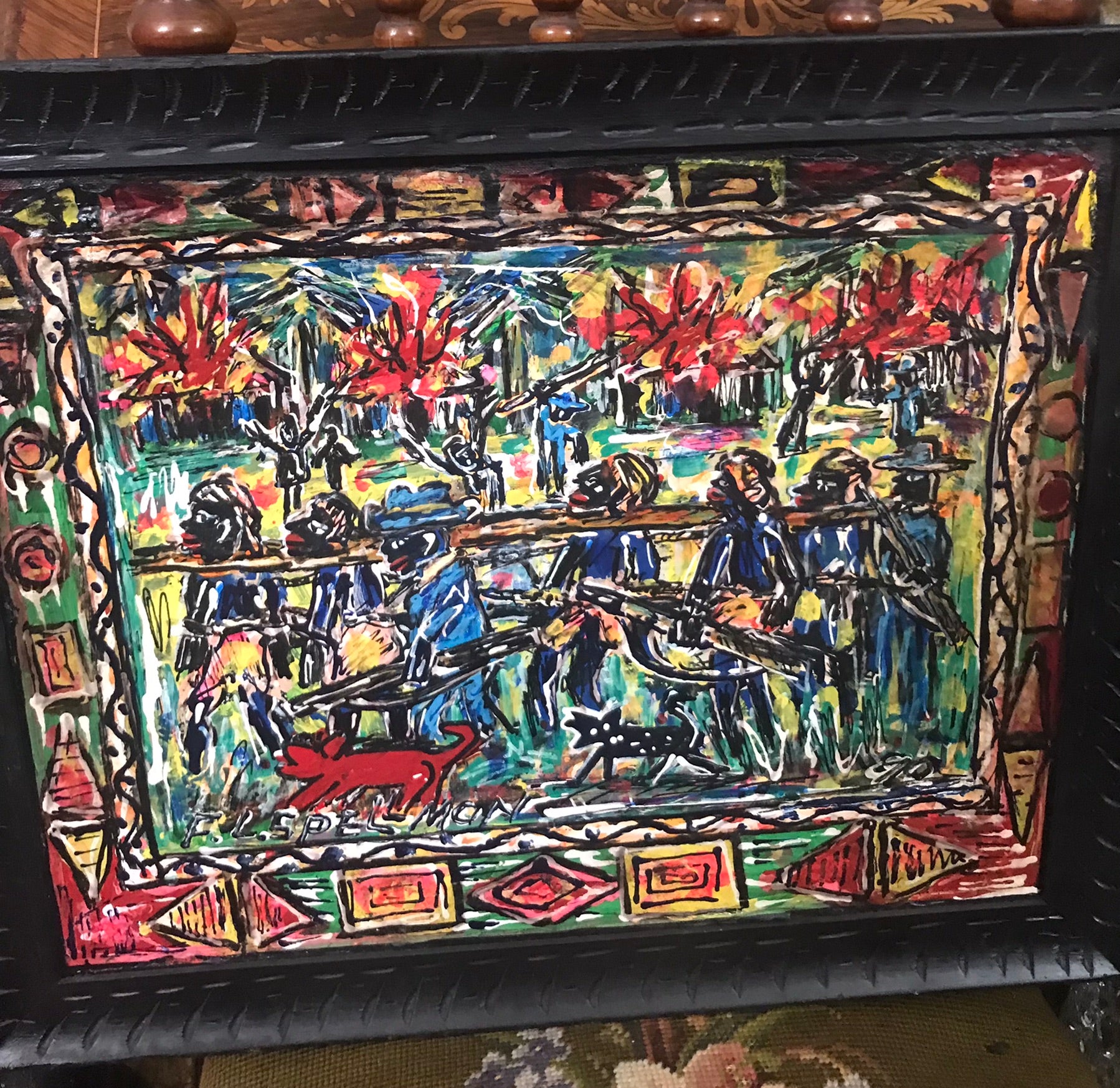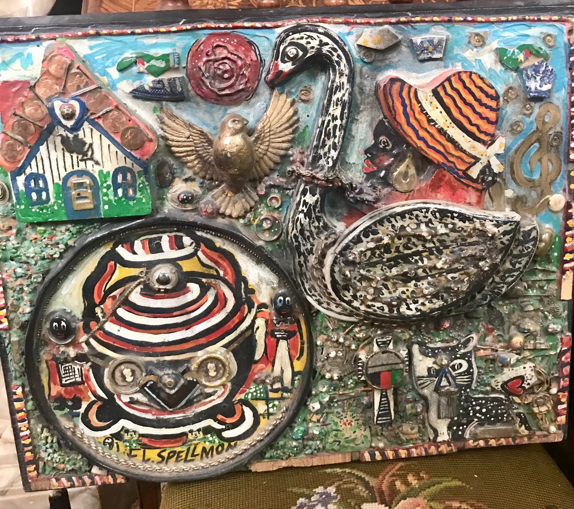 LARGE COLLECTION OF FAMOUS OUTSIDER ARTIST DOC SPELLMON PAINTINGS. SPELLMON WAS A BLACK TEXAS ARTIST KNOWN FOR HIS PAINTINGS OF THE OLD SOUTH. HE WAS BORN IN 1925 AND DIED IN 2008. THERE ARE OVER FIFTY PAINTINGS OF VARIOUS SIZES AND TECHNIQUES AND MOST HAVE HIS UNIQUE DISCRIPTIONS AND LABELS ON THEIR BACKS. SOLD INDIVIDUALLY OR IN GROUPS. PLEASE CALL 402 239 2799 OR TEXT OR E-MAIL dustyattic@charter.net FOR ADDITIONAL INFORMATION