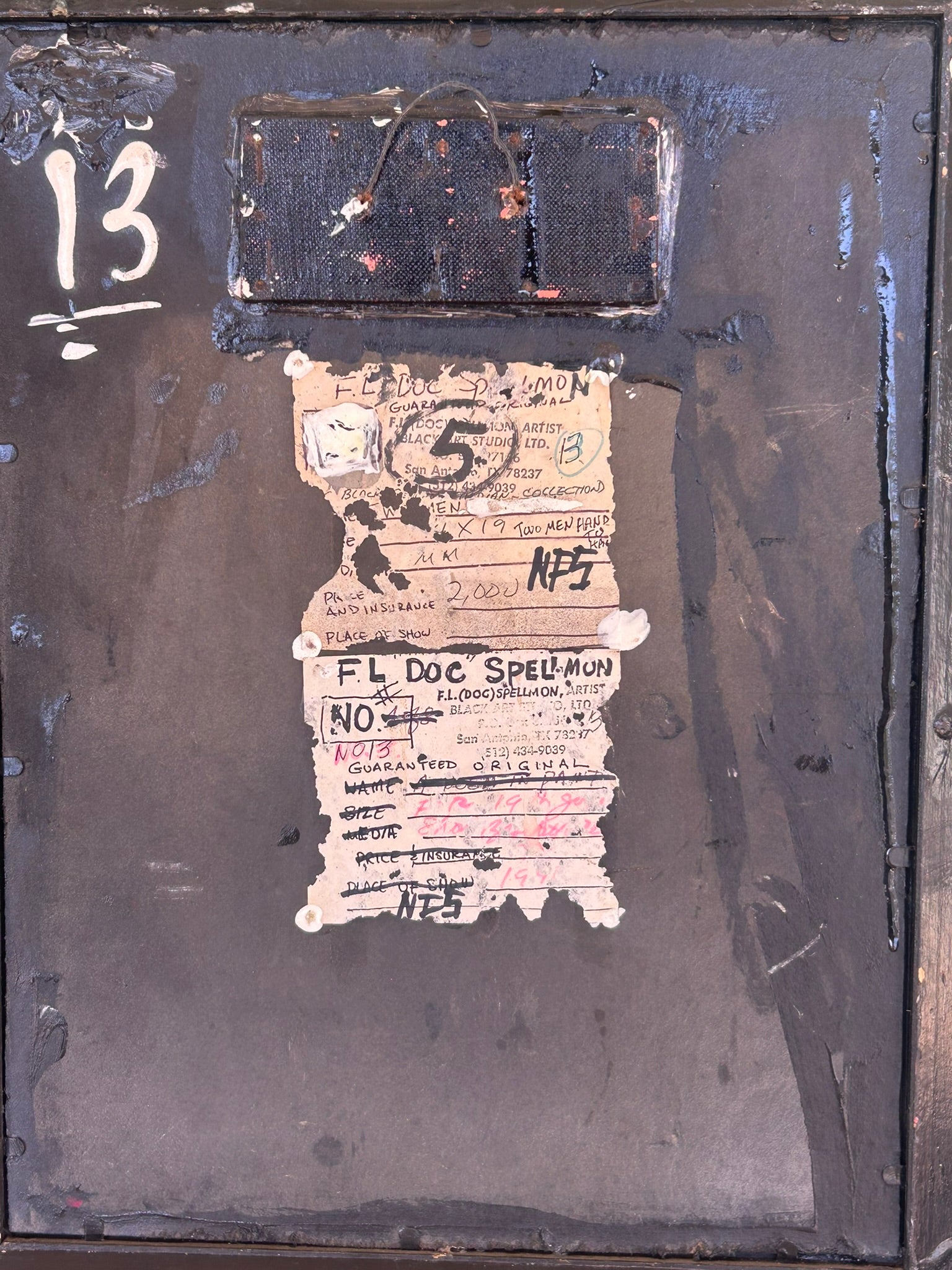 OUTSIDER ARTIST DOC SPELLMAN PAINTING OF "TWO MEN HAND TO HAND" 18" X 14" OVERALL SIZE. NOTE DOC SPELLMAN WAS A IMPORTANT OUTSIDER ARTIST FROM TEXAS AND WE HAVE A COLLECTION OF OVER 50 EXAMPLES OF HIS WORK. CALL OR TEXT FOR MORE INFORMATION
