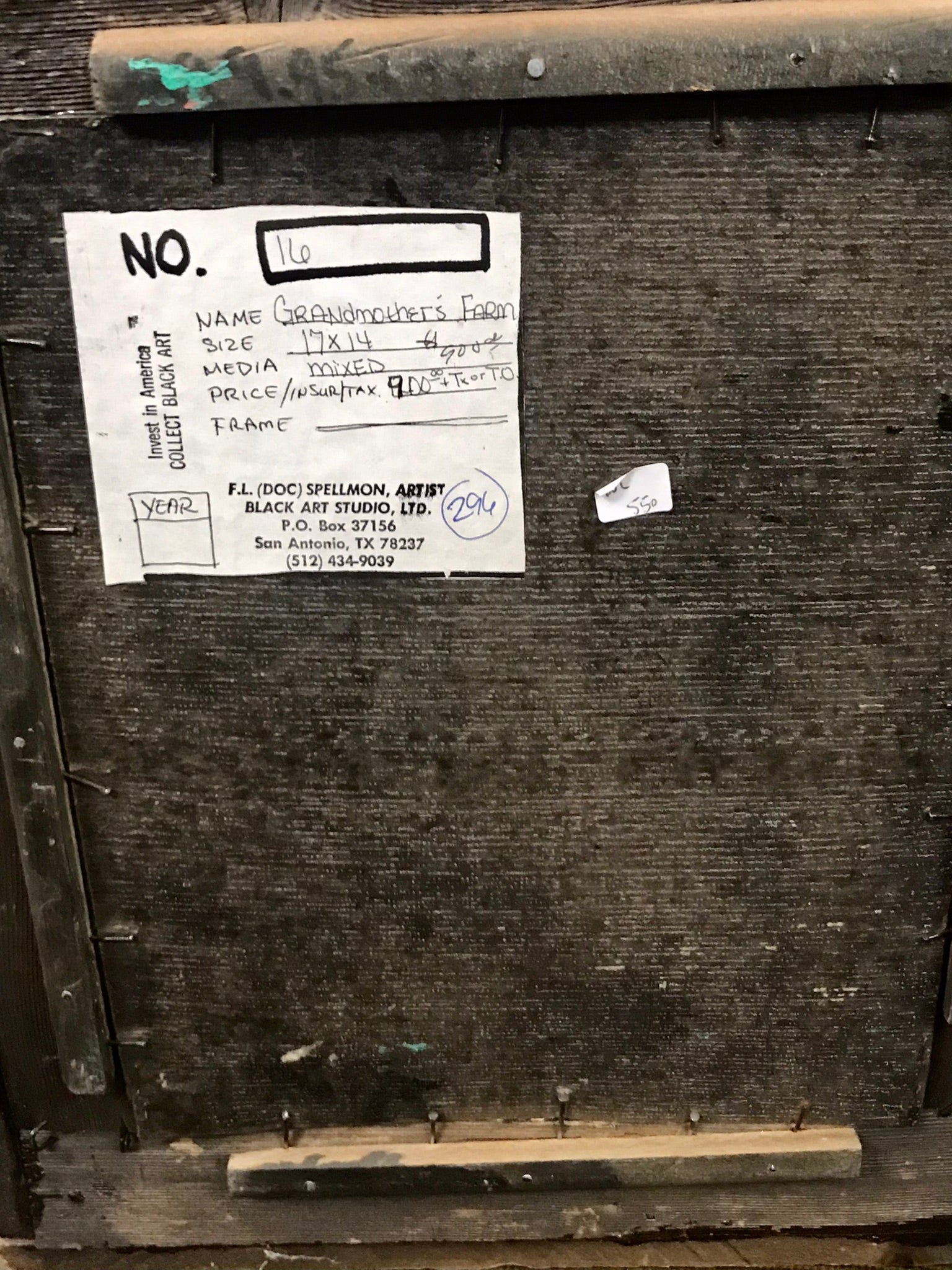 DOC SPELLMON OUTSIDER ARTIST ORIGINAL PAINTING "GRANDMOTHERS FARM" 17" X 14". SHIPPING IS EXTRA SO CALL OR TEXT FOR PRICE INFORMATION ON SHIPPING TO YOUR ADDRESS