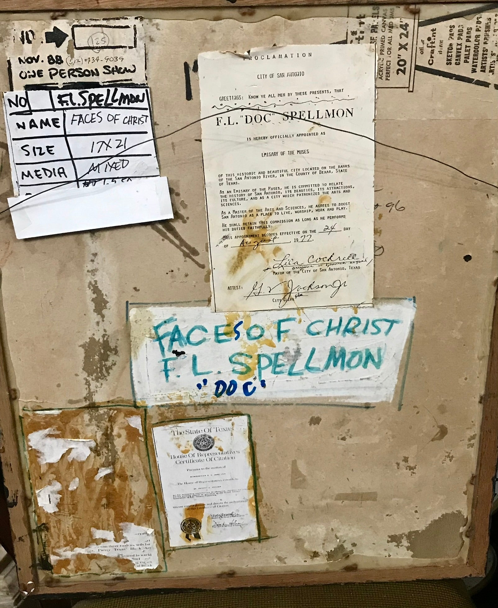 DOC SPELLMON OUTSIDER ARTIST ORIGINAL PAINTING "FACES OF CHRIST" 21" X 17". SHIPPING COSTS ARE EXTRA SO CALL OR TEXT FOR PRICE OF SHIPPING TO YOUR ADDRESS