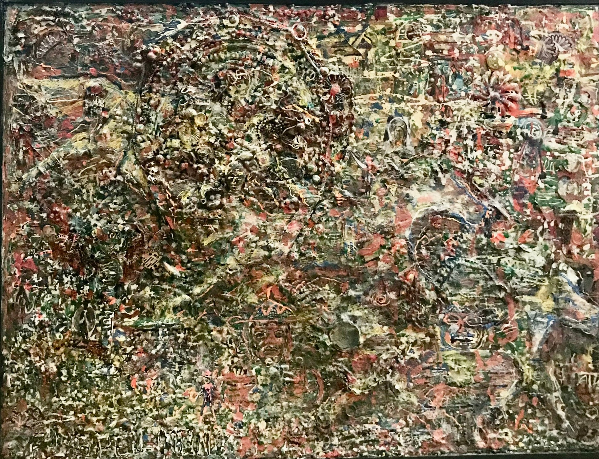DOC SPELLMON OUTSIDER ARTIST PAINTING "MEMORIAL TO BLACK SEMINOLES" 36" X 46". SHIPPING COST IS EXTRA SO BE SURE TO TEXT OR CALL TO FIND OUT SHIPPING COST TO YOUR LOCATION