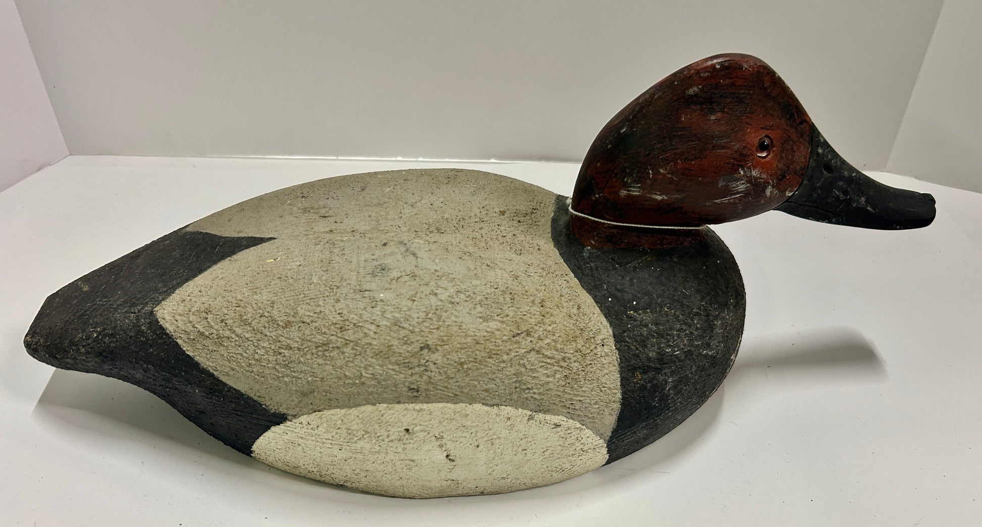ANTIQUE CARCED RED HEAD DUCK DECOY 17 1/2" LONG. CALL OR TEXT FOR MORE INFORMATION
