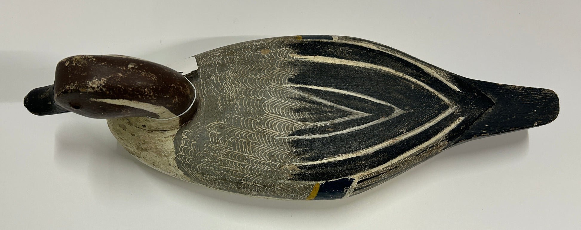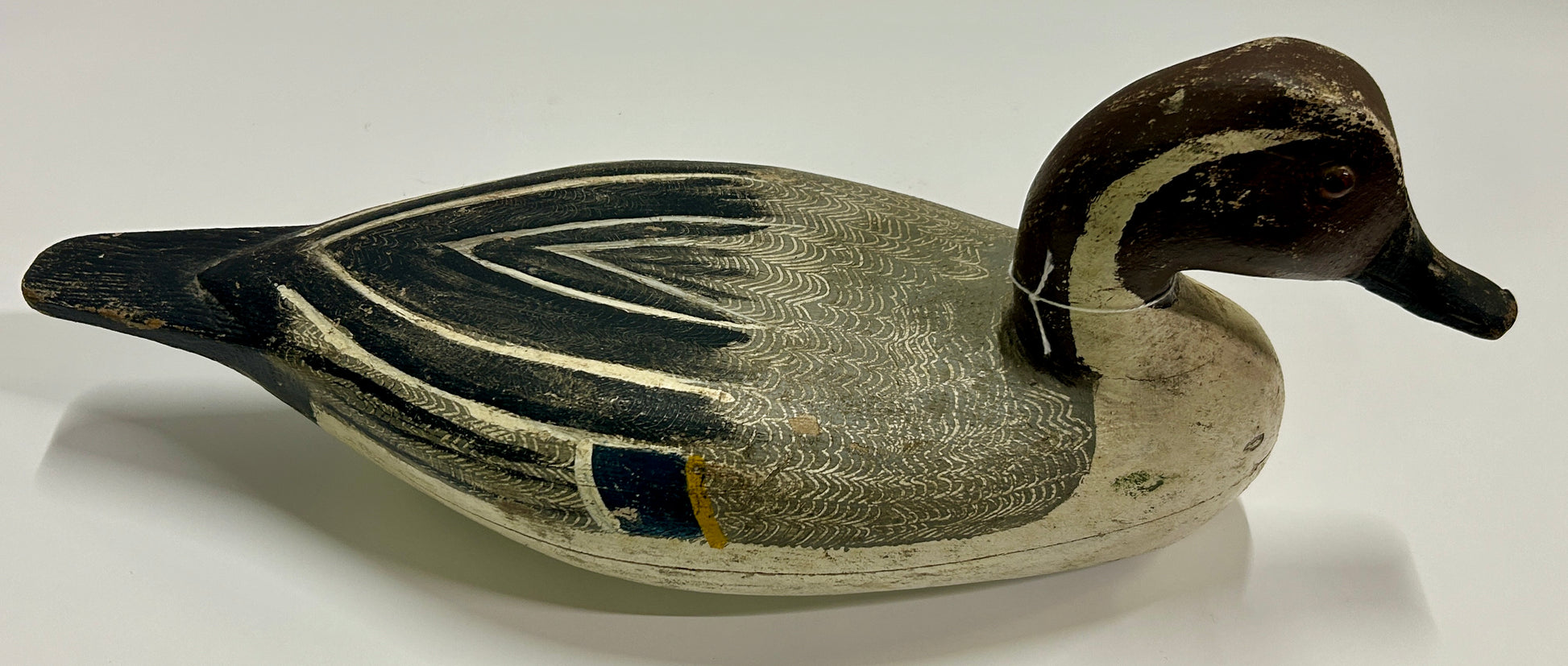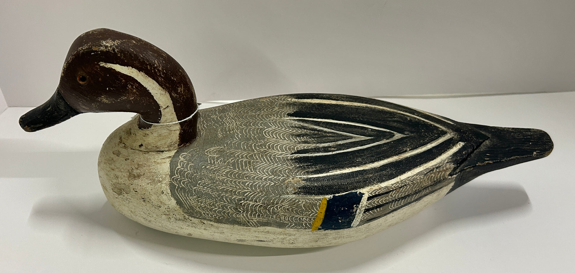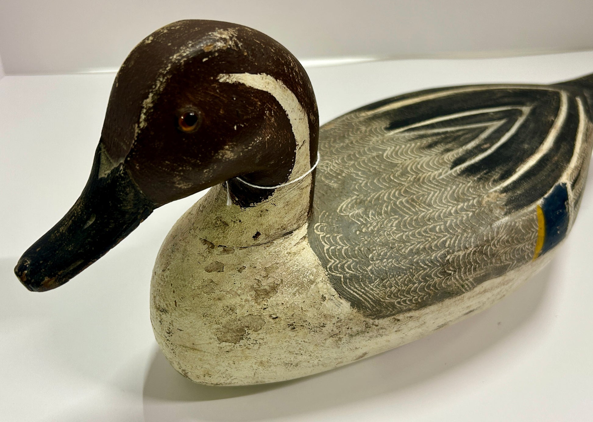 DUCK DECOY CARVED BY SKIP BARTO OF ILLINOIS OF PINTAIL DUCK 16 1/2" LONG. CALL OR TEXT FOR MORE INFORMATION