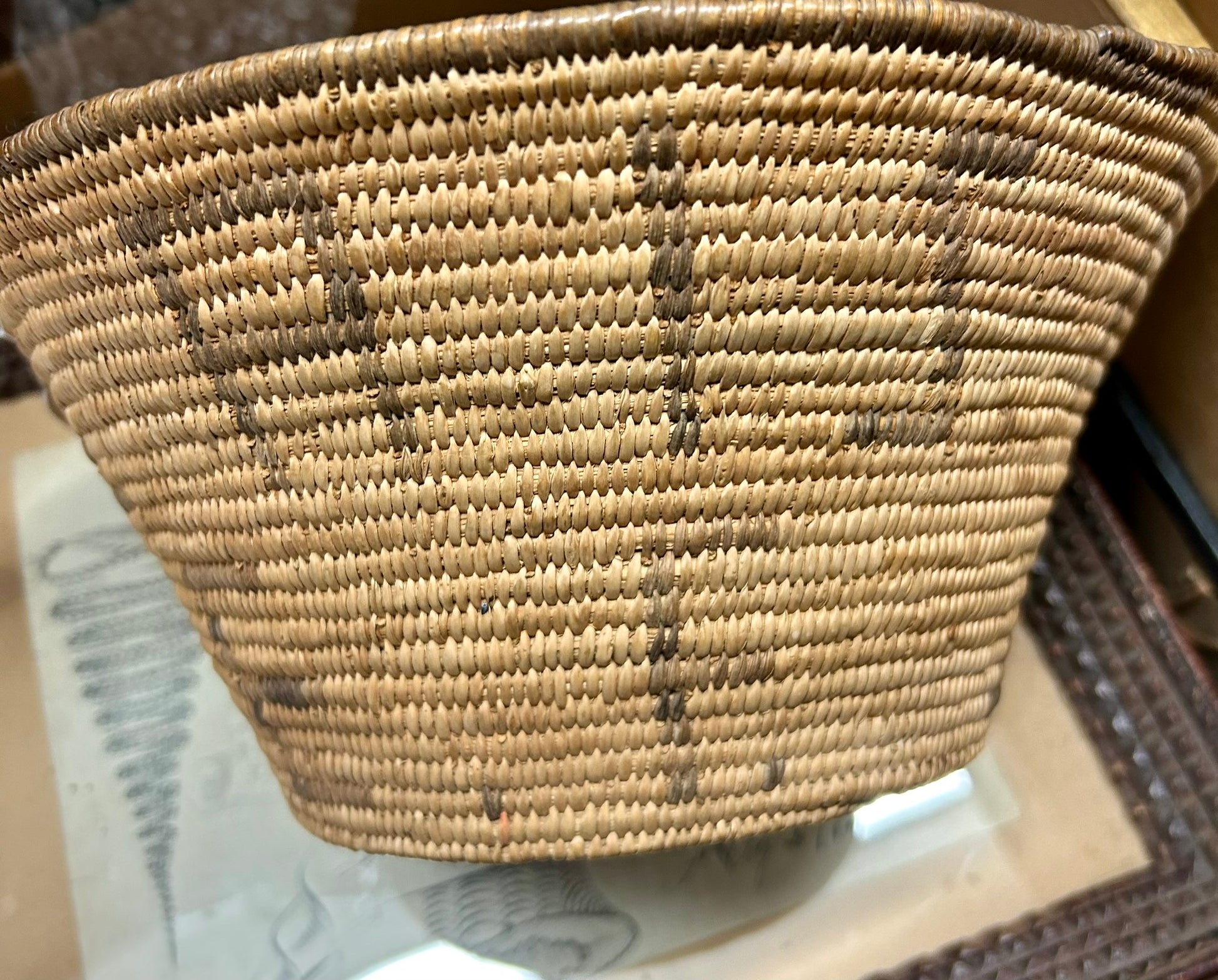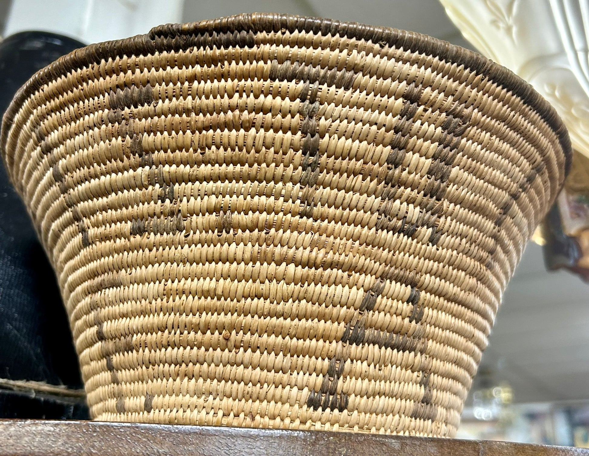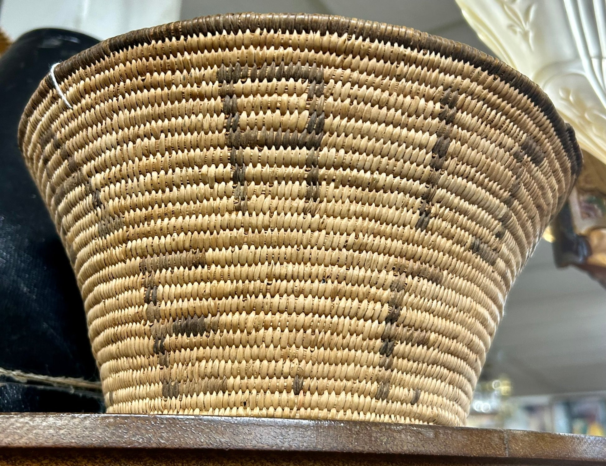 EARLY 1900'S NATIVE AMERICAN PIMA BASKET WITH WORDING DESIGN THAT SAYS "TUSON ARIZONA" 10 1/2" WIDE X 5" TALL. CALL, TEXT, OR E-MAIL FOR MORE INFORMATION.