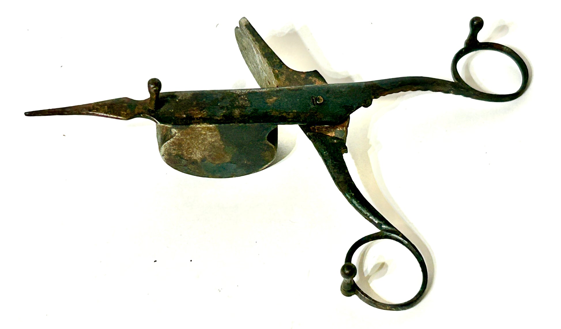 EARLY CAST IRON CANDLE SNUFFER TRIMMER 7" LONG. SHIPPING IS EXTRA SO CALL OR TEXT TO FIND OUT HOW MUCH SHIPPING WILL COST