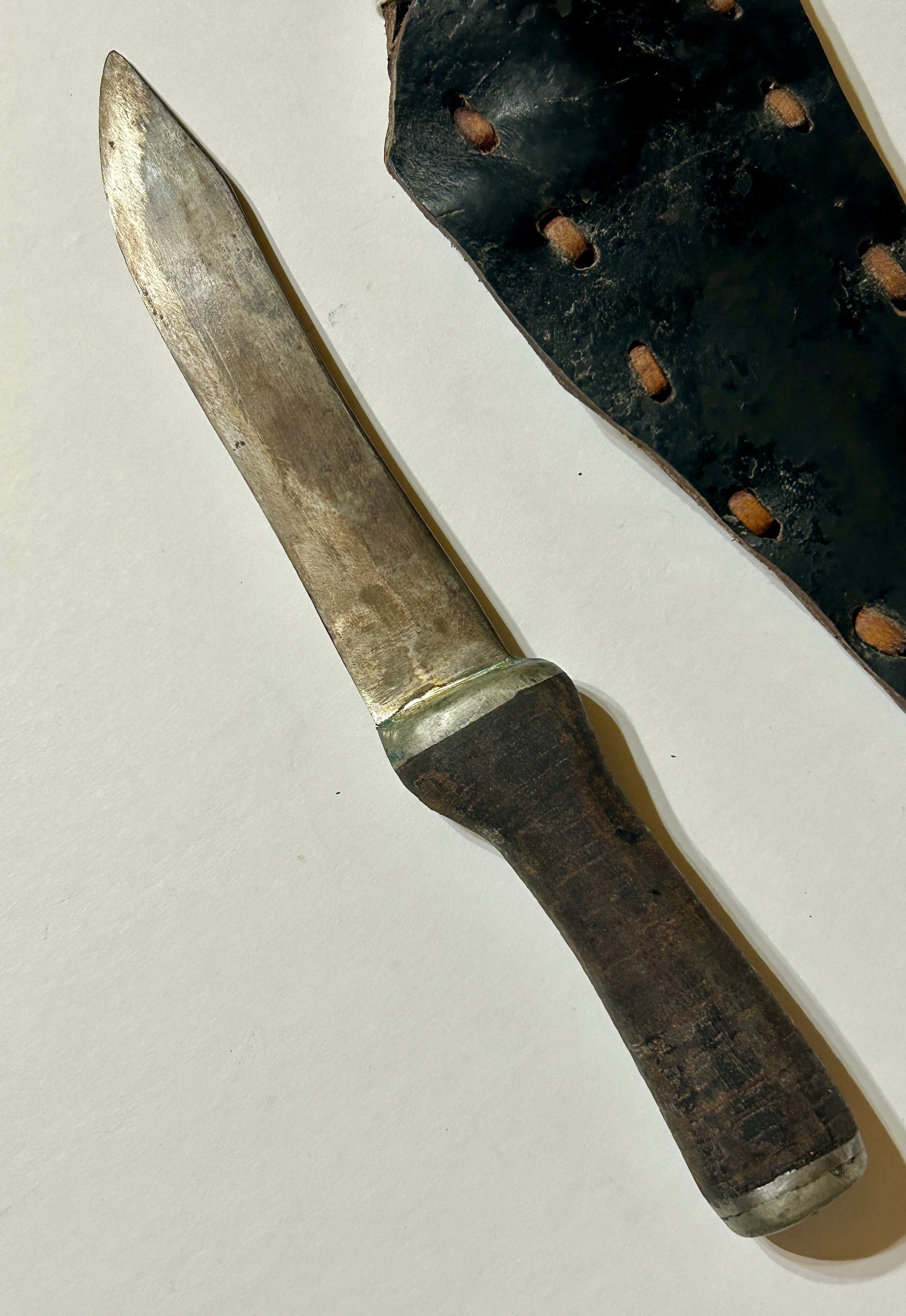 EARLY HANDMADE KNIFE AND SCABBARD WITH 11" LONG KNIFE. CALL OR TEXT FOR MORE INFORMATION