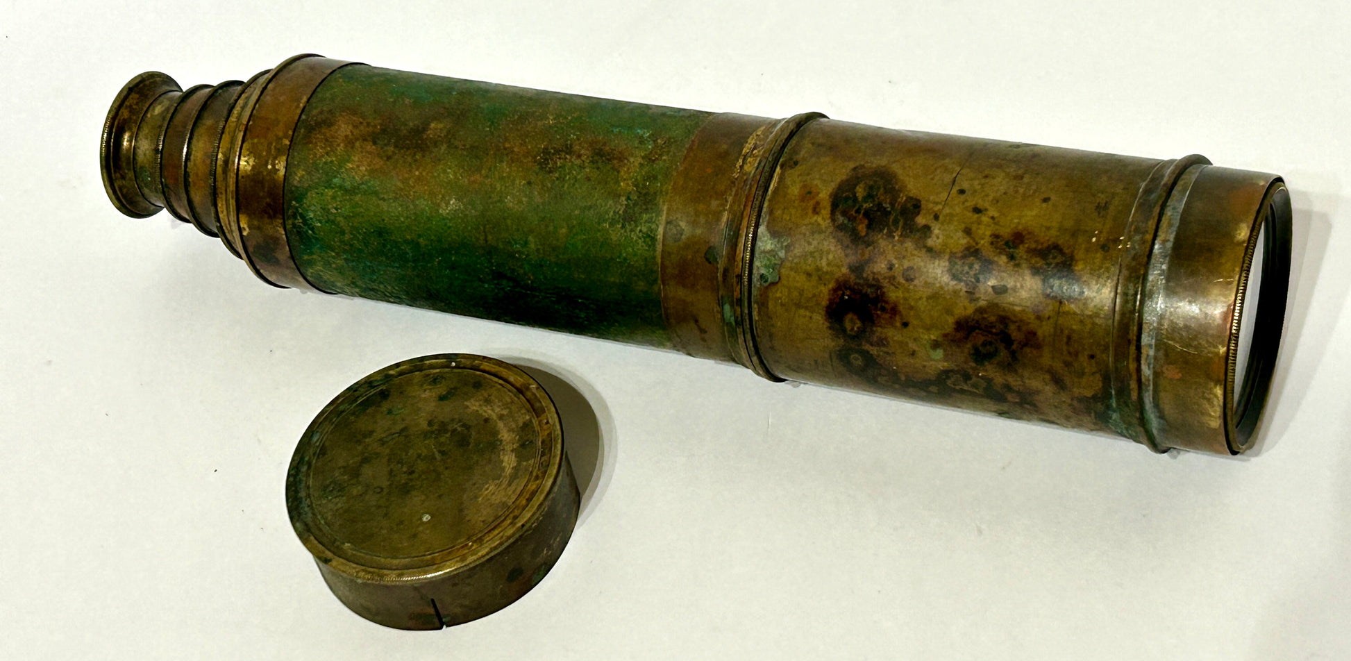 LARGE ANTIQUE EARLY TELESCOPE 35" OPEN AND 10 3/4" CLOSED X 2 1/2" DIA. SHIPING COSTS ARE EXTRA SO CALL OR TEXT TO GET FIGURE FOR SHIPPING COST TO YOUR ADDRESS