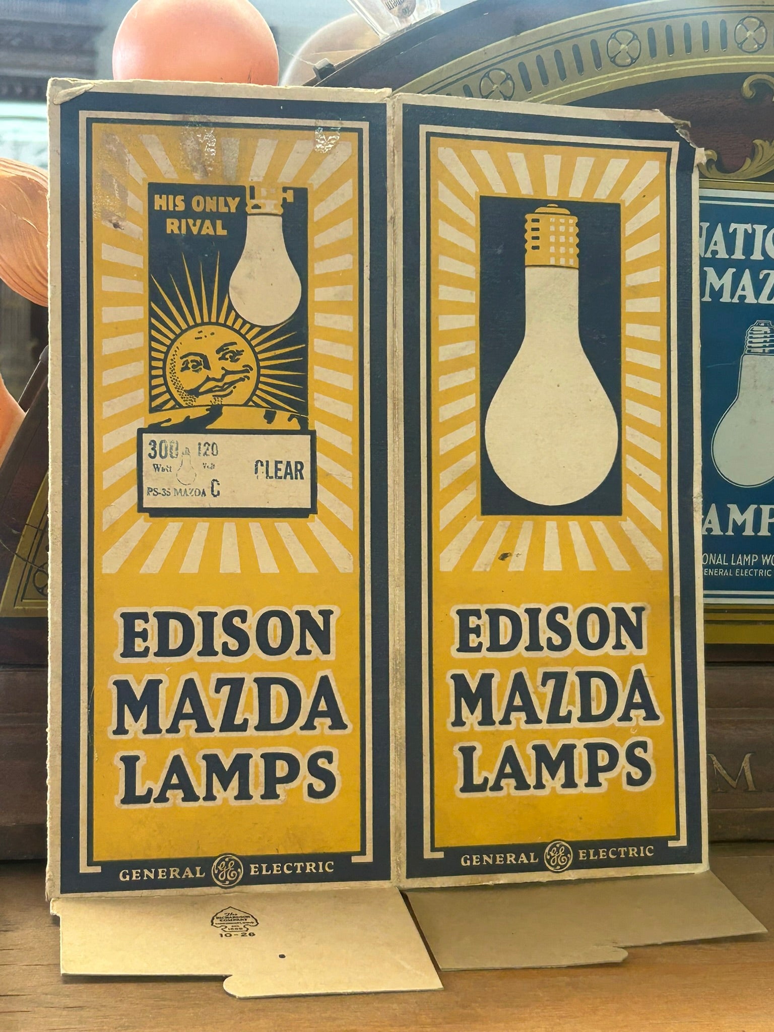 EARLY MAZADA LAMP BULB STORE DISPLAY 28" X 16". CALL OR TEXT FOR MORE INFORMATION
