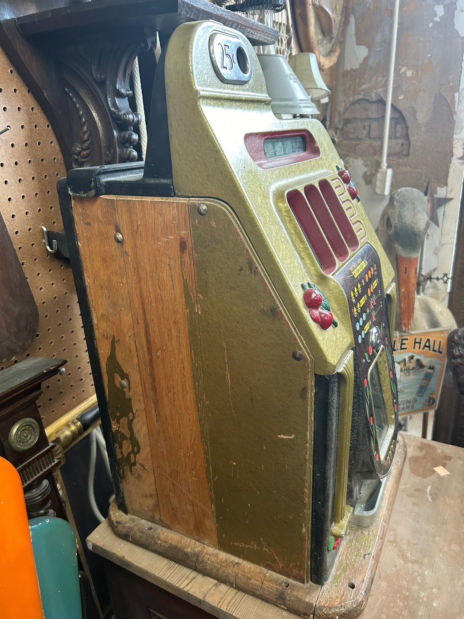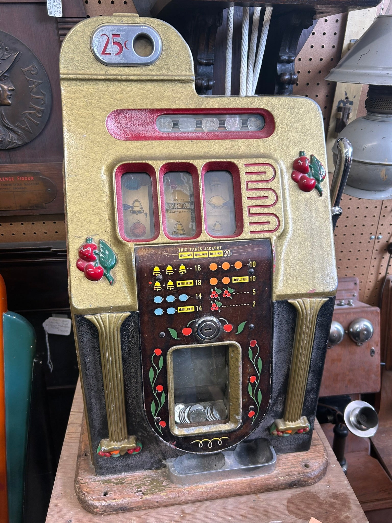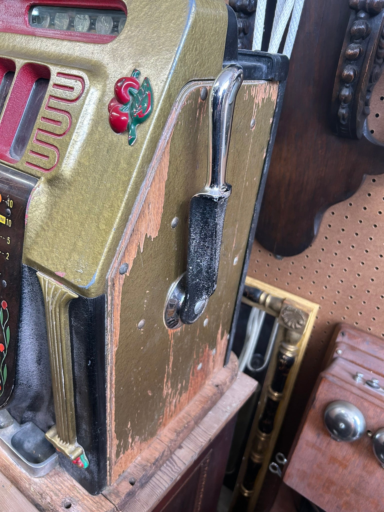 EARLY QUARTER MILLS CHERRIES SLOT MACHINE WORKING CONDITION. CALL, TEXT, OR E-MAIL FOR MORE INFORMATION