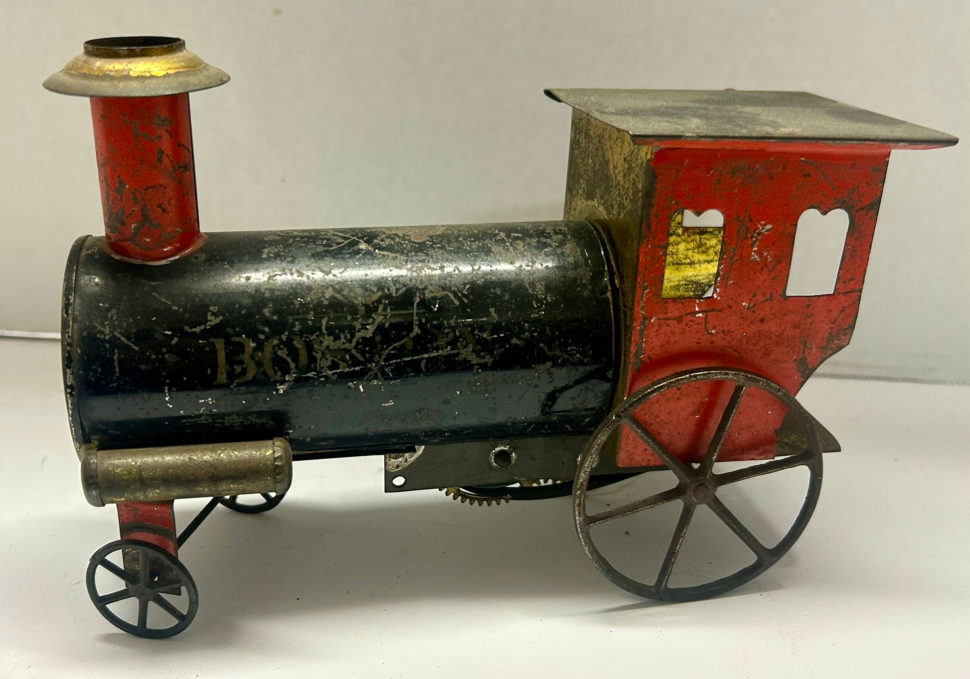EARLY TIN CLOCKWORK TOY WIND UP TIN LOCOMOTIVE "BOSTON"