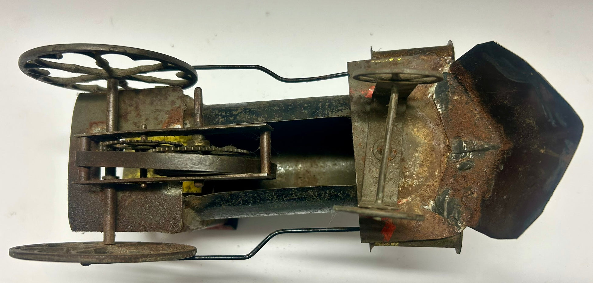 EARLY ANTIQUE TIN CLOCKWORK TOY WIND UP LOCOMOTIVE "BOSTON" COW CATCHER MISSING TOTAL LENGTH 8". CALL OR TEXT FOR MORE INFORMATION