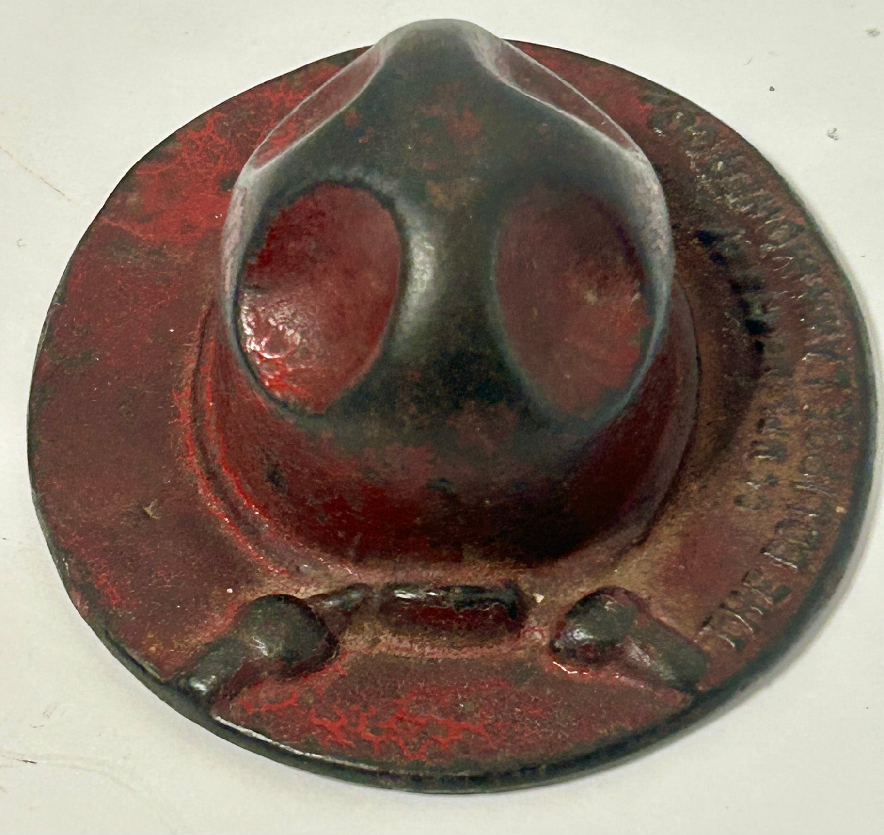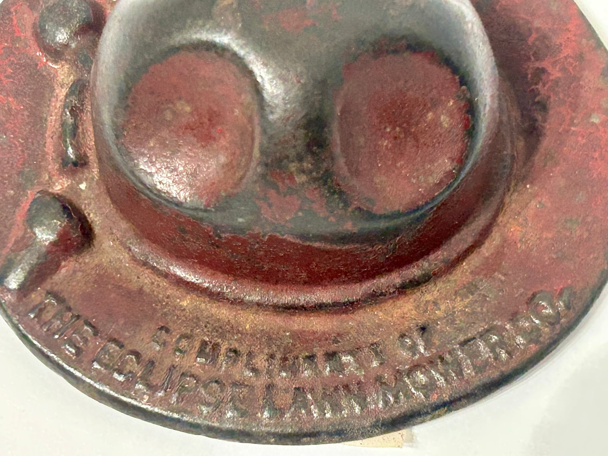 ECLIPSE LAWN MOWER CAST IRON FIGURAL HAT ADVERTISING PAPERWEIGHT
