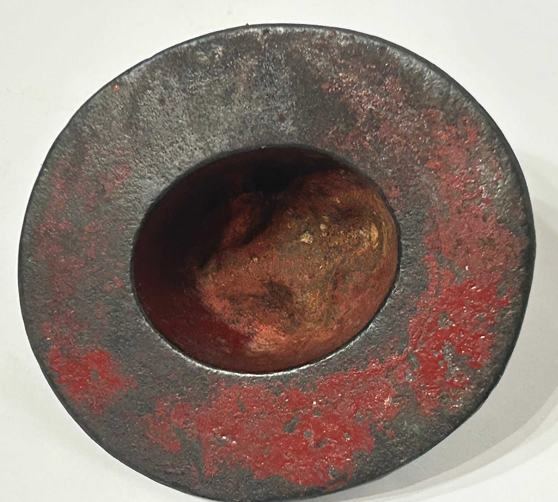 EXCLIPSE LAWN MOWER CAST IRON FIGURAL HAT ADVERTISING PAPERWEIGHT 3 1/2" LONG X 2" TALL. CALL OR TEXT FOR MORE INFORMATION