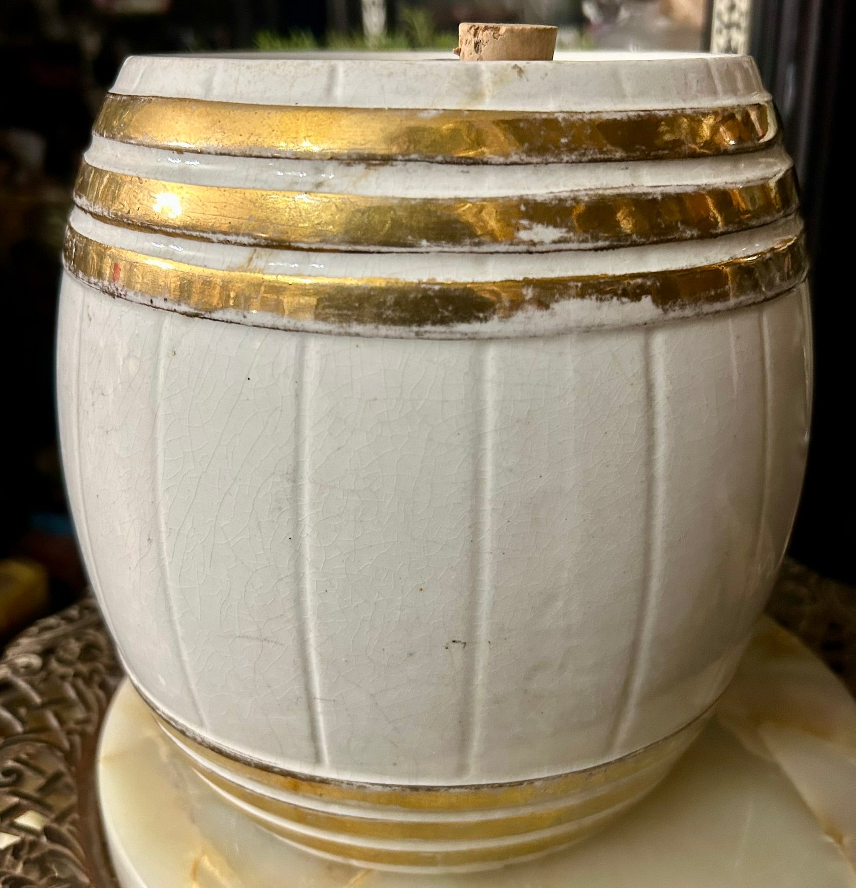 EDELWEISS RYE POTTERY ANTIQUE KEG 8" LONG X 8" DIA. CALL OR TEXT FOR MORE INFORMATION