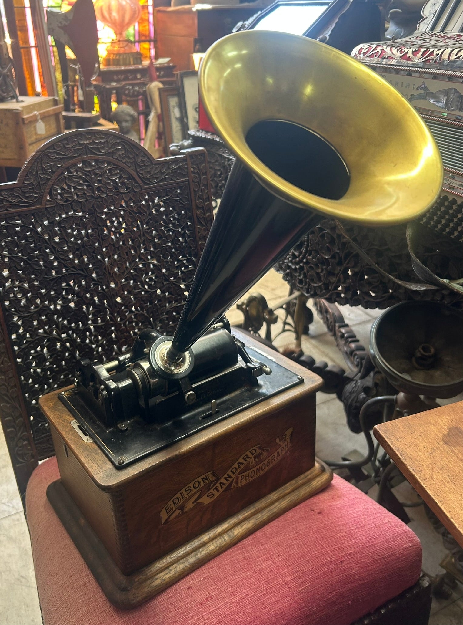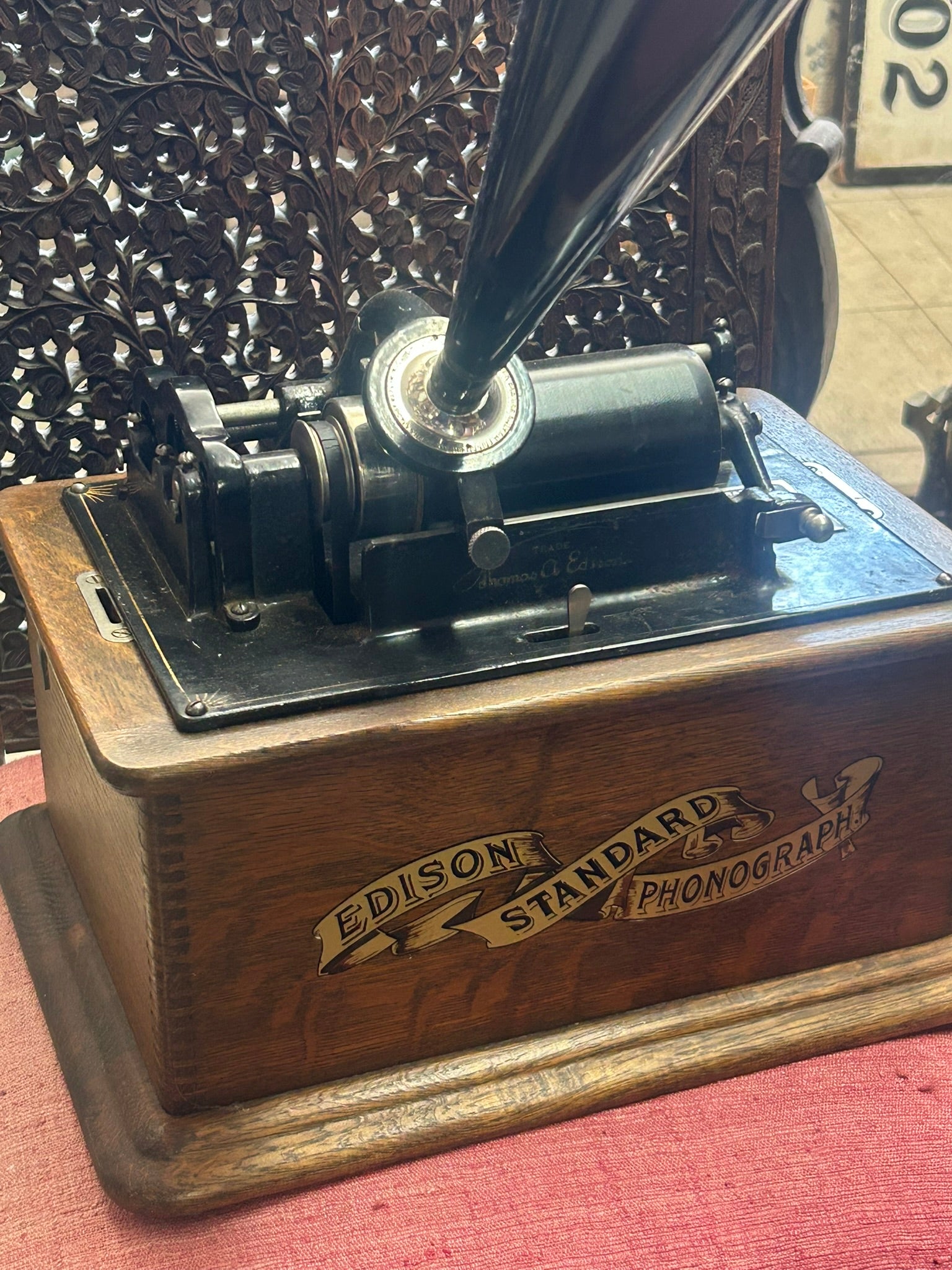 EDISON STANDARD CYLINDER PHONOGRAPH IN GOOD CONDITION WITH LID. CALL OR TEXT FOR MORE INFORMATION