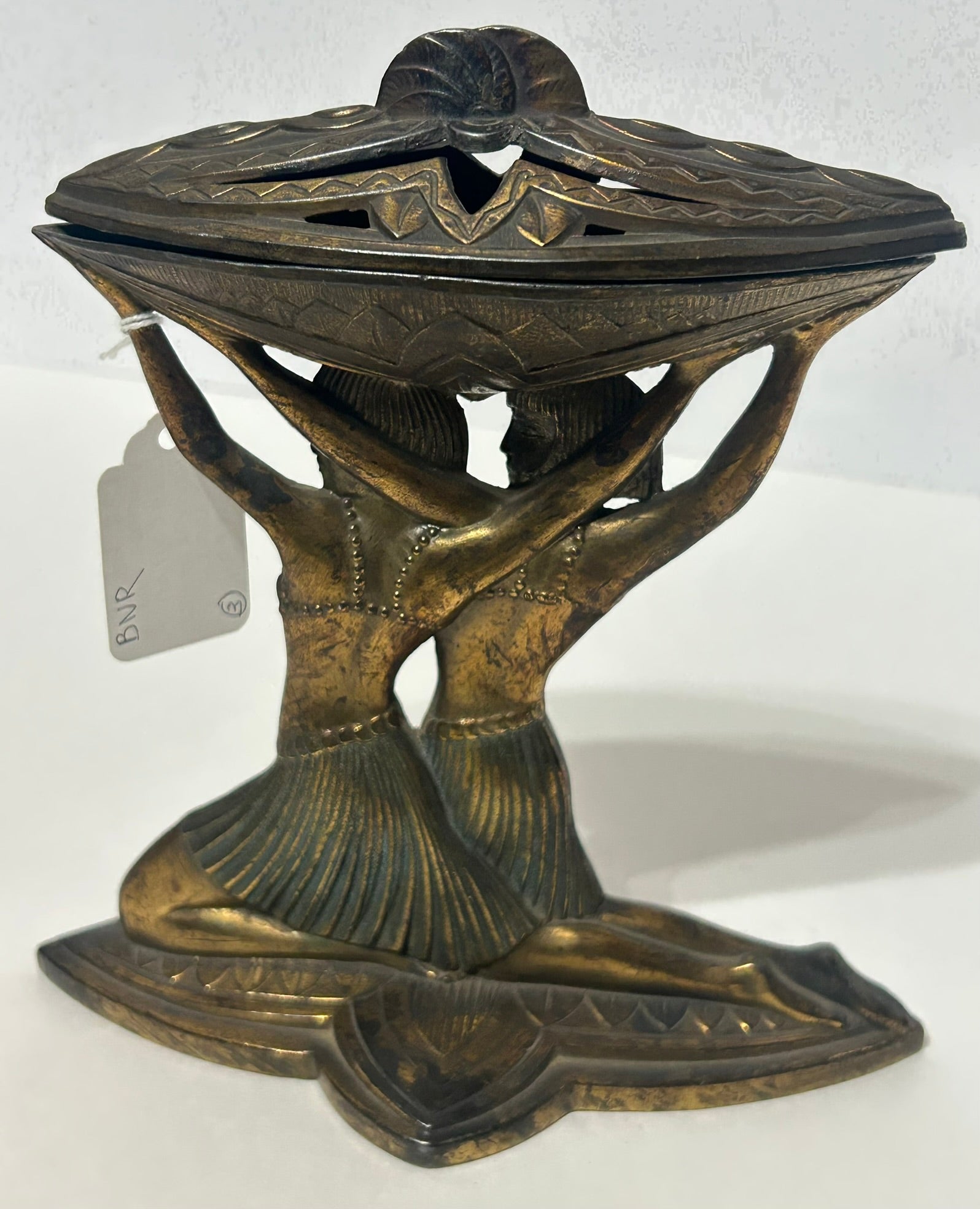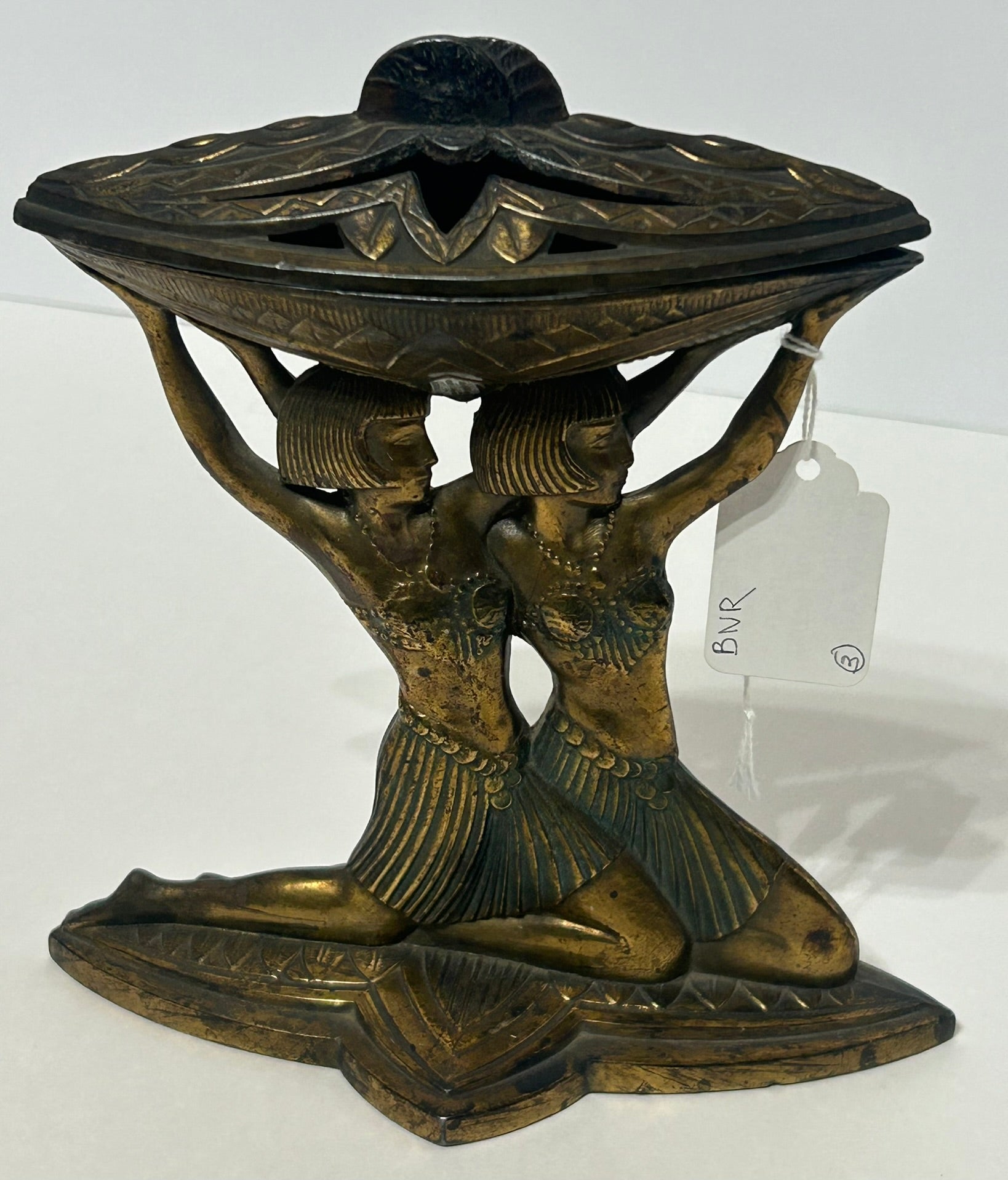 EGYPTIAN REVIVAL ART DECO TWIN LADIES INCENSE BURNER BY VANTINES FRANCE