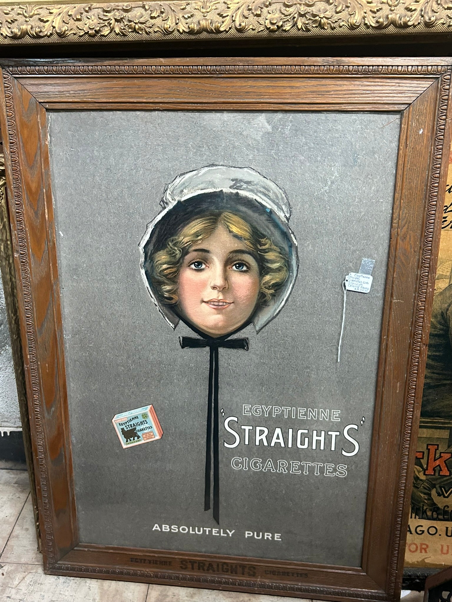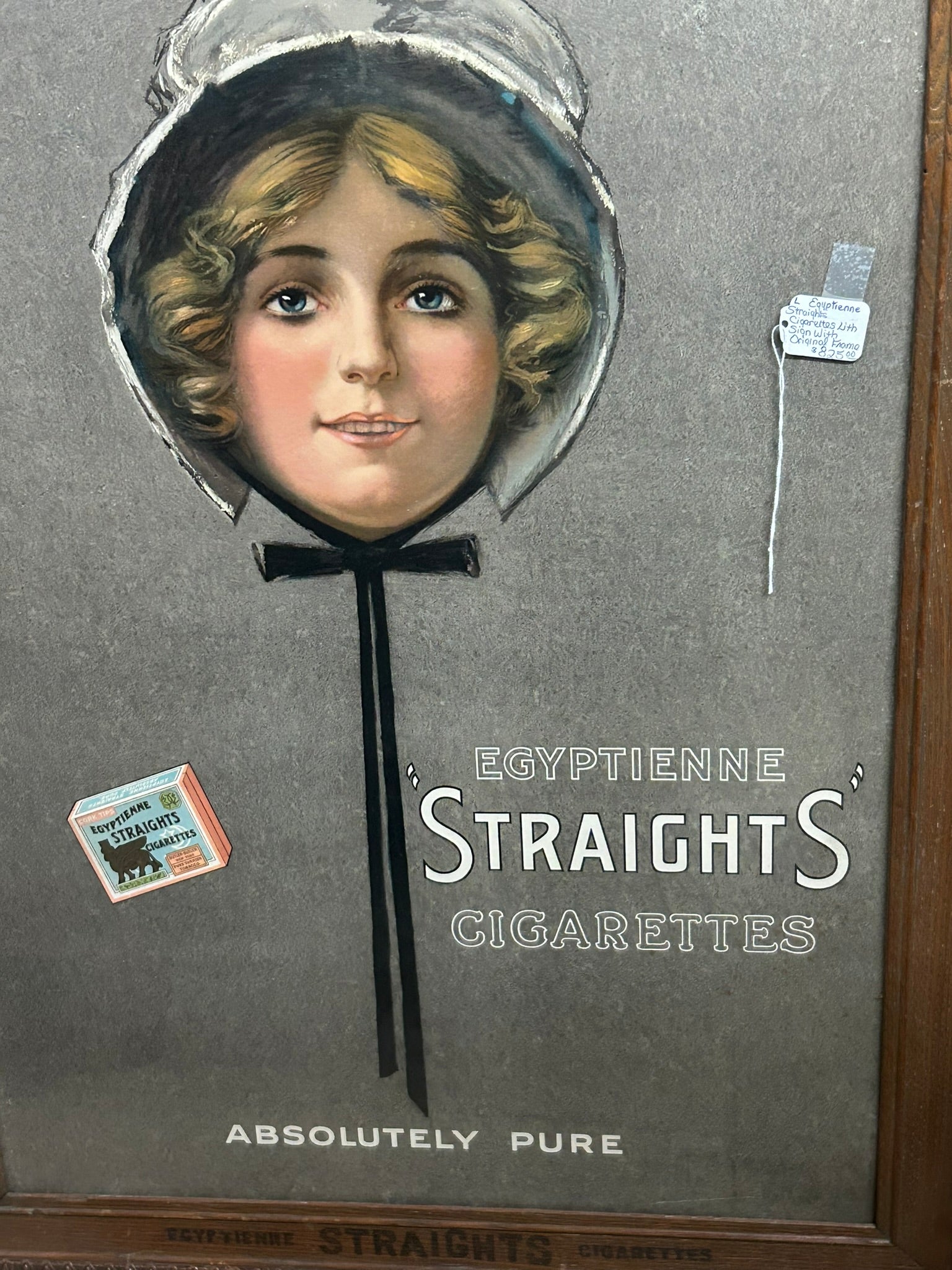 EGYPTIENNE STRAIGHTS CIGARETTES ANTIQUE LITHO ADVERTISING SIGN