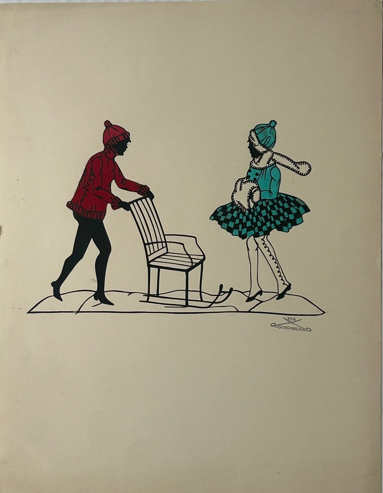 EVA SCHONBERG SILHOUETTE CUT OUT ART FROM 1920'S OF BOY AND GIRL SKATERS 12" X 10"'. CALL OR TEXT FOR MORE INFORMATION