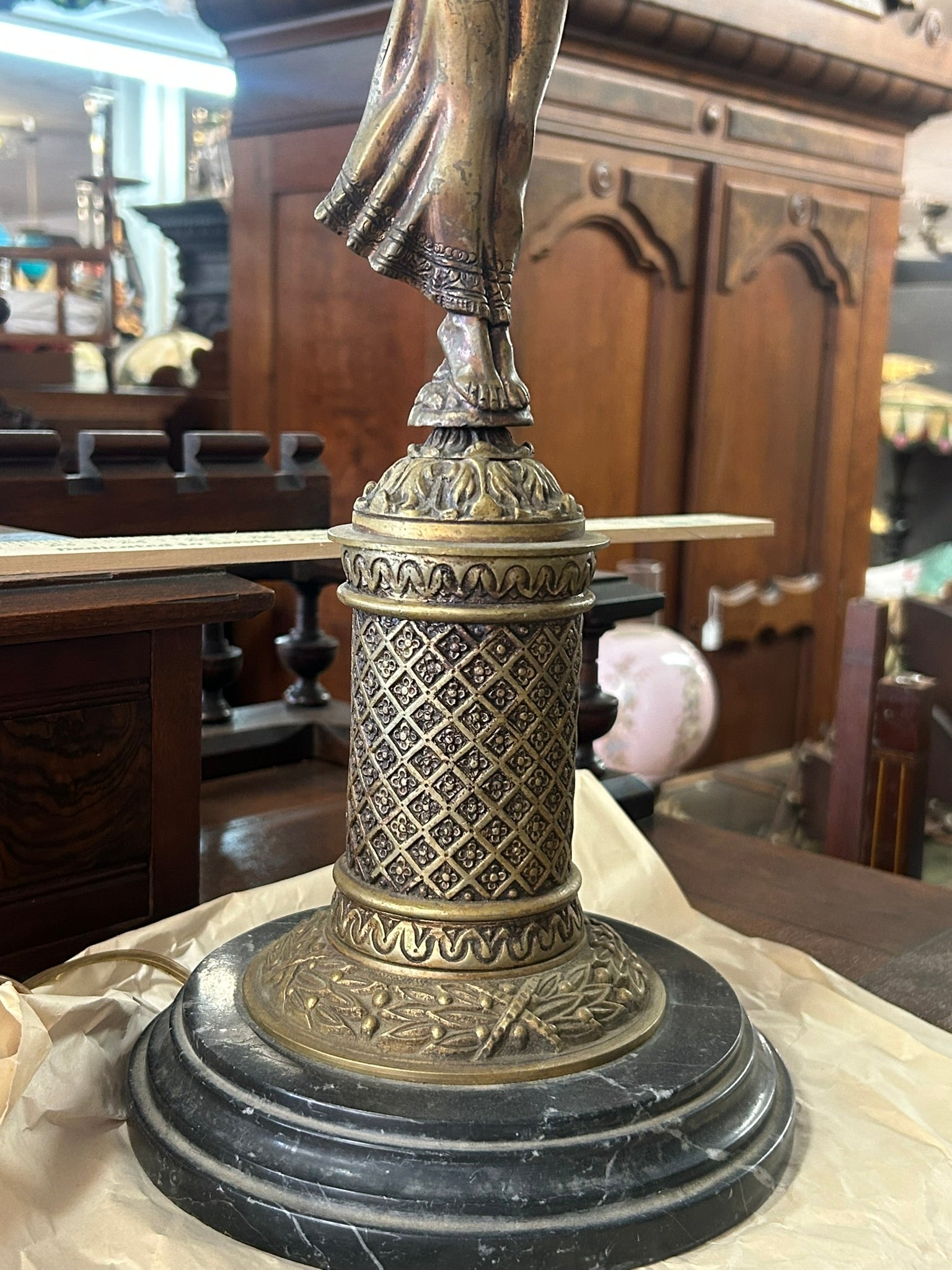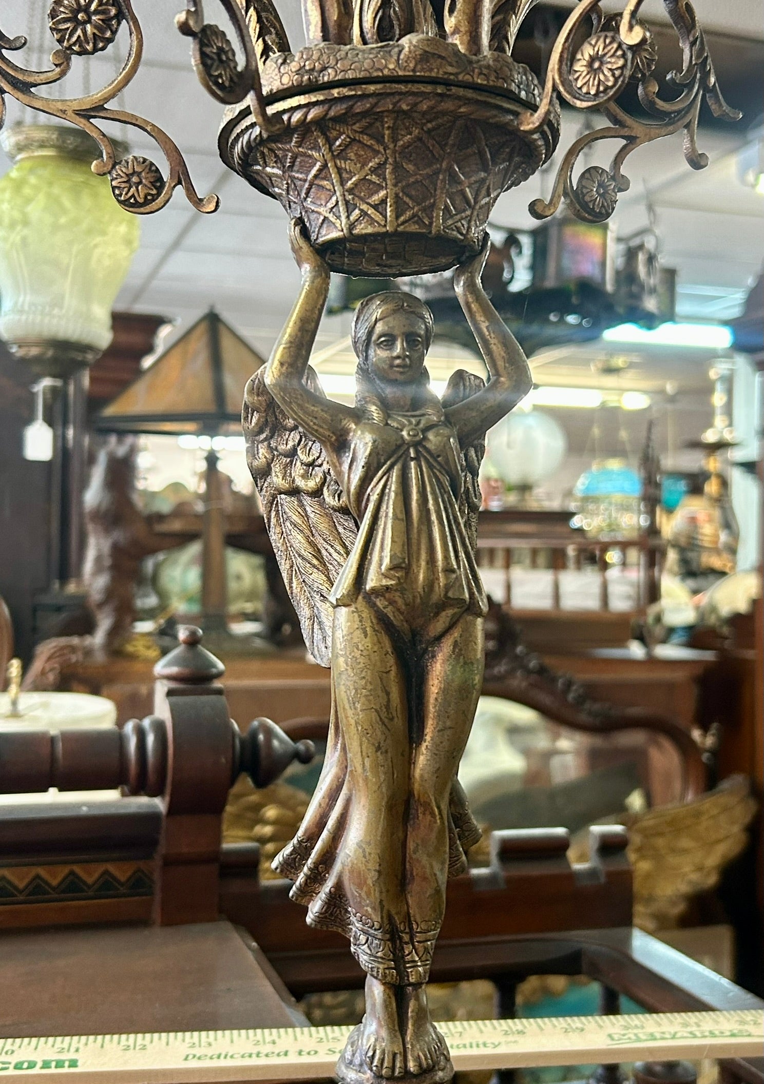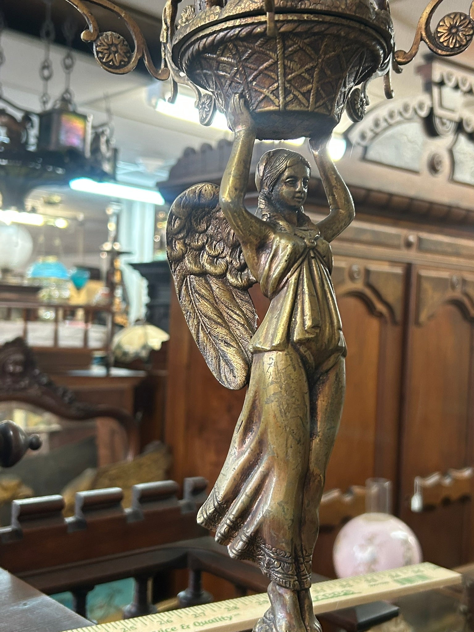 LARGE ANTIQUE FIGURAL ANGEL ANTIQUE ELECTRIFIED CANDLE HOLDER 26" TALL NOT COUNTING CANDLES. CALL OR TEXT FOR MORE INFORMATION