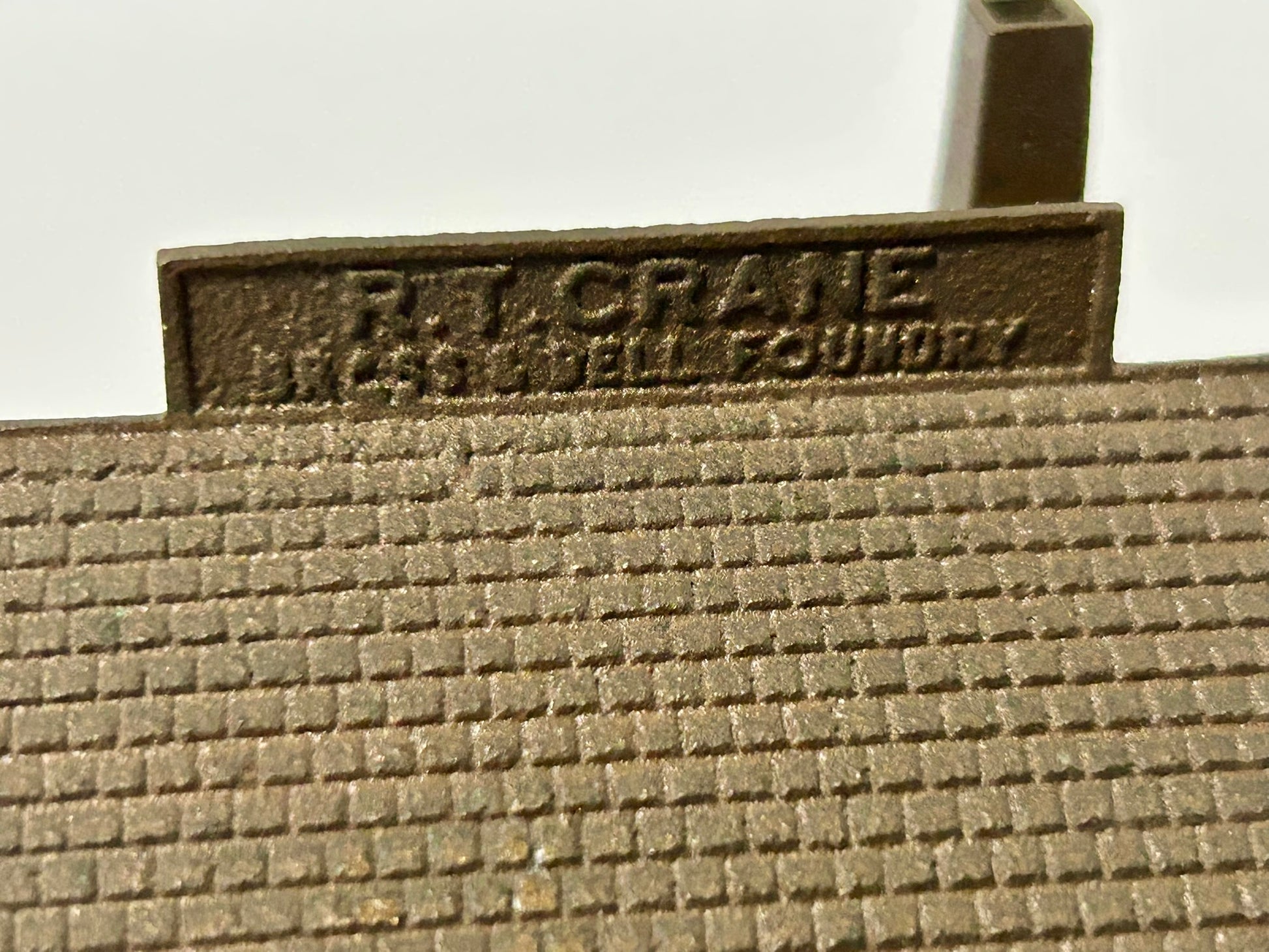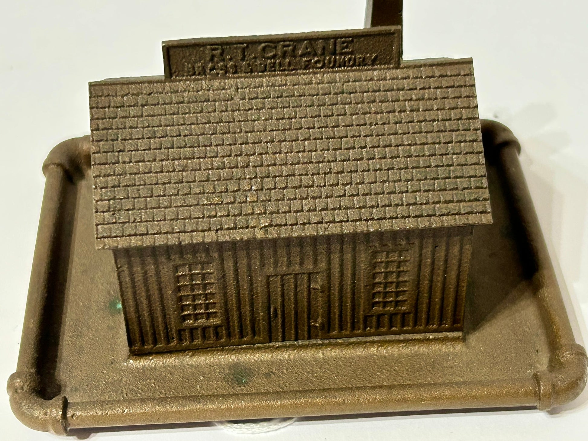 FIGURAL BRASS & BELL BUILDING ADVERTISING ANTIQUE PAPERWEIGHT FOR CRANE CO.
