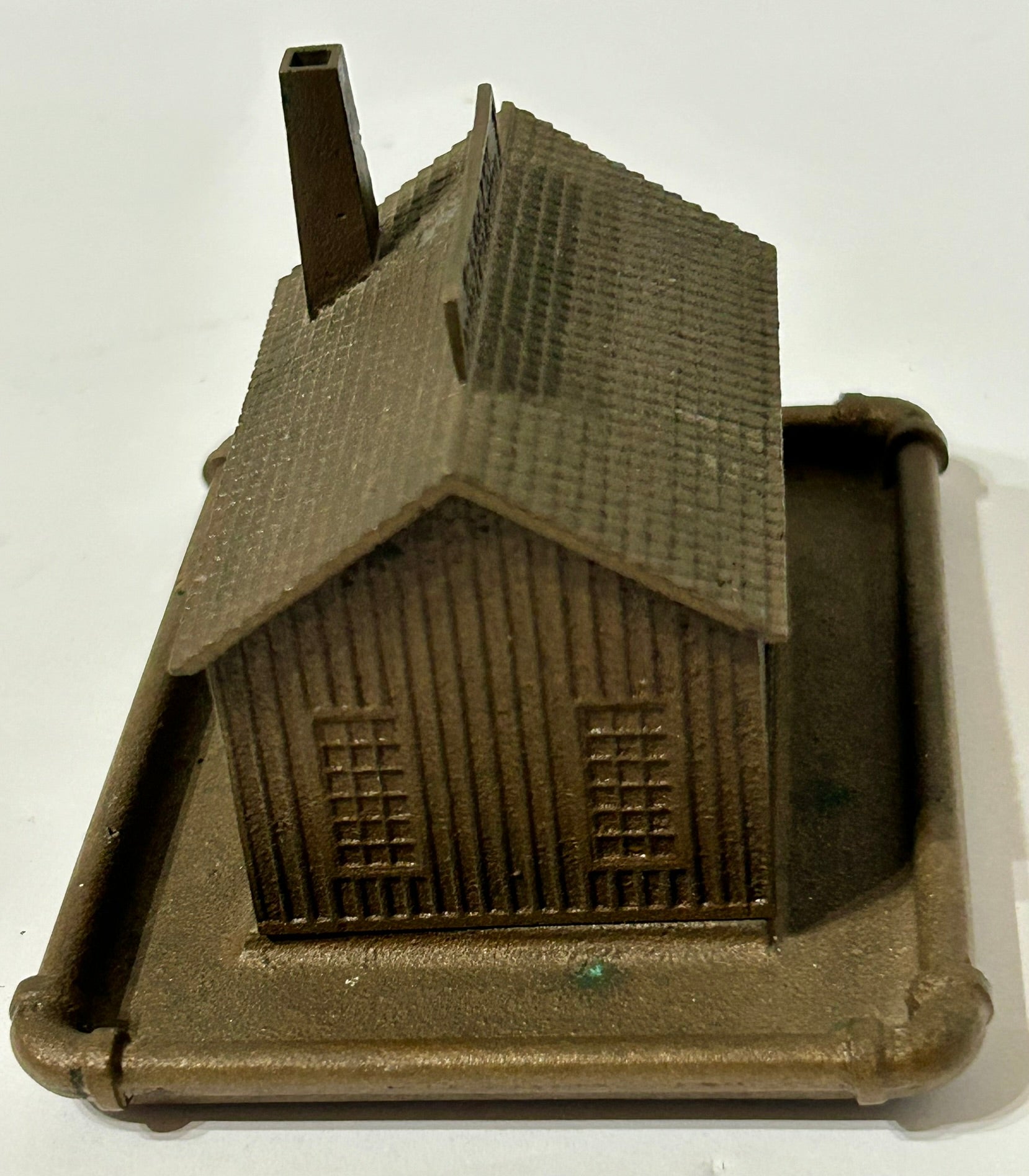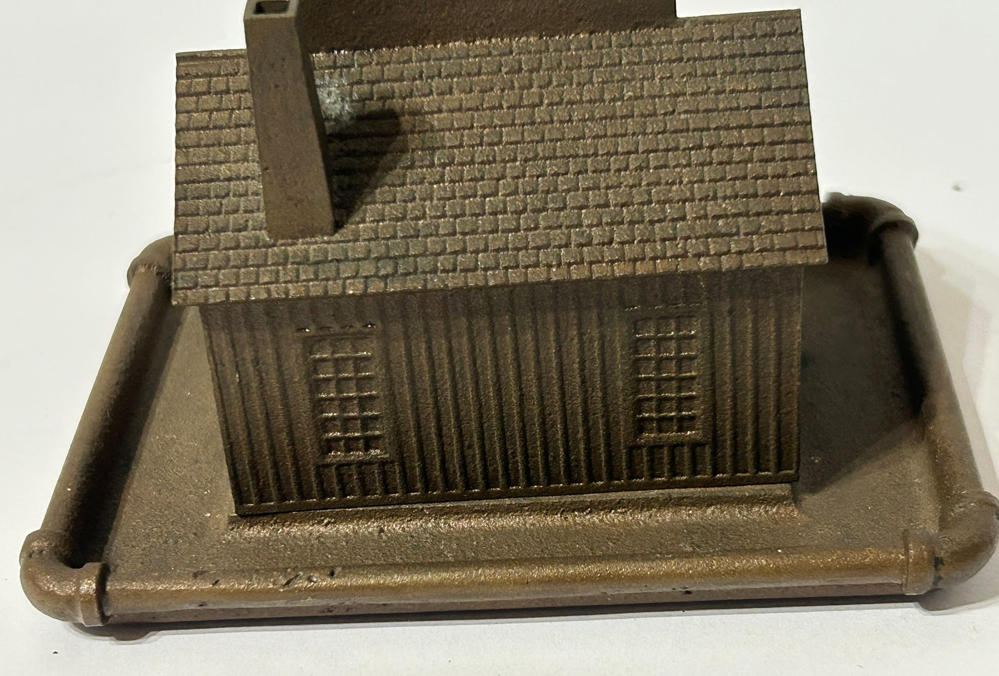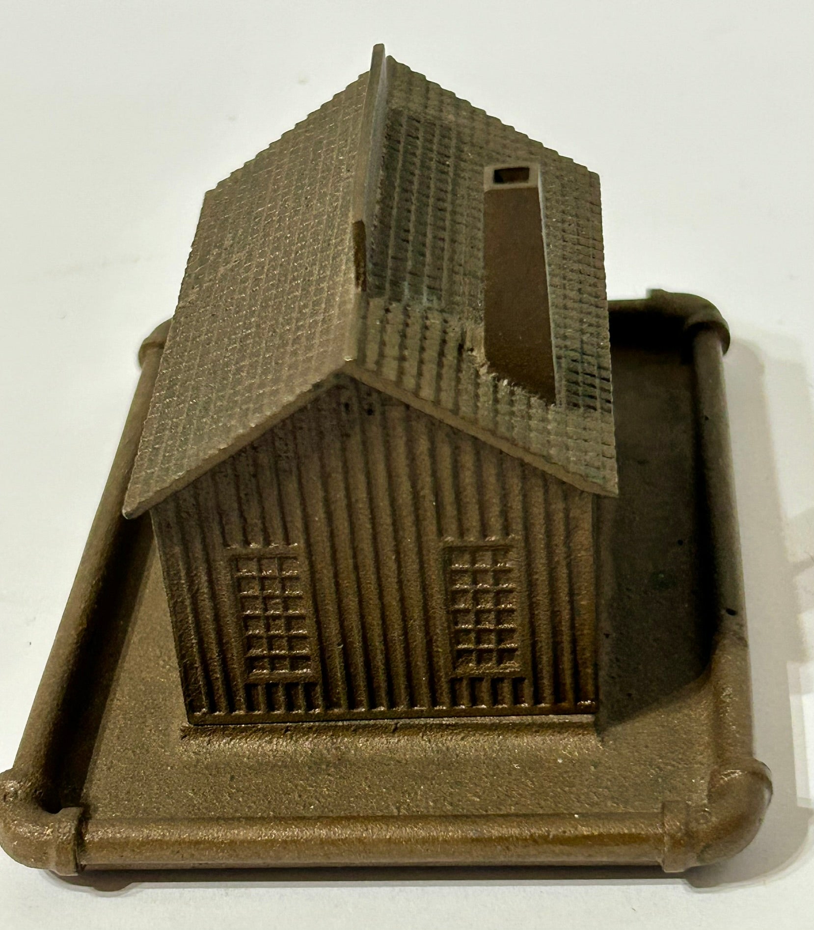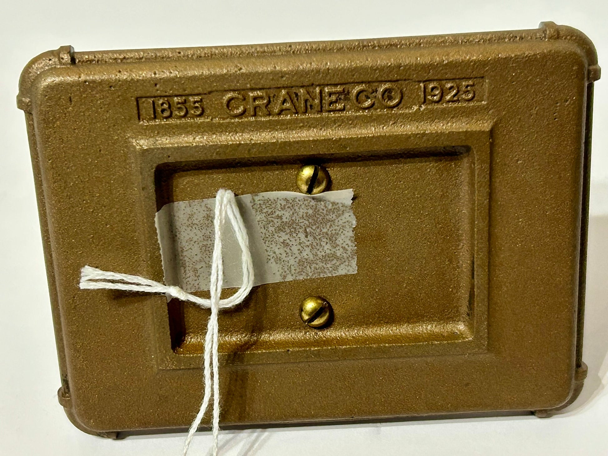 ANTIQUE FIGURAL ANTIQUE IRON BUILDING ADVERTISING PAPERWEIGHT FOR CRANE CO. 4 1/2". CALL OR TEXT FOR MORE INFORMATION